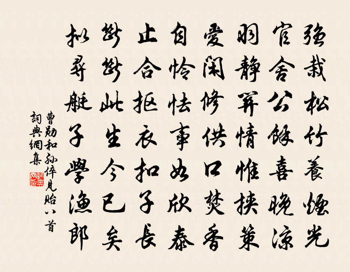 詩詞名句歷史字典書法欣賞書法字典國語詞典說文解字康熙字典古漢語字典標 題 作 者 詩 句 和孫倅見貽八首作者:曹勛 朝代:宋代和孫倅見貽八首原文強栽松竹養煙光,官舍公餘喜晚涼。羽靜關情惟挾策,愛閒修供口焚香。自憐怯事如欣泰,止合摳衣扣子長。斷斷此生今已矣,擬尋艇子學漁郎。詩詞問答問:和孫倅見貽八首的作者是誰?答:曹勛問:和孫倅見貽八首寫於哪個朝代?答:宋代曹勛和孫倅見貽八首書法欣賞和孫倅見貽八首書法作品詩詞推薦望峨嵋山作晁公溯〔宋代〕普賢大開士,神足靡不周。世人妄指此,象馭昔所留。願觀百億身,奔走數十州。見者喜稱快。不見默懷羞。紛紛車中許月卿六〔宋代〕路平正好坐車中,時有禽聲山翠濃。憑軾斜眸看法帖,開簾正面受春風。壽俞尚書七十九尹直卿〔宋代〕後皇深助順,命世燁生賢。臨汝蔥佳氣,羅浮降散仙。春蘭早無聖,秋竹晚彌堅。穩擊三千水,高騰尺五天。清癯步至湖上寓小舟還舍陸游〔宋代〕淒涼懷古地,慘澹暮秋天。紅樹秦馳道,青山禹廟壖。湖風飄斷角,墟日起孤煙。老恨功名晚,無人共著鞭!氐州第一·波落寒汀周邦彥〔宋代〕波落寒汀,村渡向晚,遙看數點帆小。亂葉翻鴉,驚風破雁,天角孤雲縹緲。官柳蕭疏,甚尚掛微微殘照?景物關鳳棲方丈鄭清之〔宋代〕矮伯老於周柱史,瘦梅青似楚離騷。推窗欲覓登山路,無數青苔落鸛毛。三月五日病中對雨作強至〔宋代〕何術可留枝上錦,誰人能換鬢邊絲。不堪有限餘春日,更值無聊足病時。久判浮名唯念酒,肯因閒事輒忘詩。雨頻張丞見和次韻答之陳造〔宋代〕故人十年別,牆宇今密邇。譚勝復詩工,排日有歡喜。所嗟連城璧,過詫窶人子。何況政術疎,一一賴提耳。答孫推官蔡襄〔宋代〕不是窮輪始問途,肯將全璧混泥污。尚平婚嫁何時畢,陶令田園先自蕪。羈旅且甘家四壁,牢愁須借酒千壚。唯應和趙鼎輔府判投贈賀雪之句楊萬里〔宋代〕登城放目雪光中,萬水千山一色同。逗曉月華猶在地,未春柳絮巳隨風。忽傳別駕贈佳句,道是頻年當屢豊。捻斷雜曲歌辭。天長地久詞盧綸〔唐代〕玉砌紅花樹,香風不敢吹。春光解天意,偏發殿南枝。虹橋千步廊,半在水中央。天子方清暑,宮娃起夜妝。辭輦送張南簡入蜀白居易〔唐代〕昨日詔書下,求賢凡陸沈。無論能與否,皆起徇名心。君獨南遊去,雲山蜀路深。送唐彥博宰安豐,兼寄呈淮西帥趙渭師郎中范成大〔宋代〕 * 皦自鮮,水清石粼粼。繡腸五車書,不鄙簿領塵。黟山與桂嶺,一笑二十春。天涯會面難,歲晚情話真。五管浴罷范成大〔宋代〕西城落日半輪明,浴罷衣裳一倍輕。玉宇風來歸鳥急,火雲銷盡綠雲生。酬張韓伯周師成〔宋代〕楚人逢楚節,仍賦楚情詩。滴酒長江遠,思鄉白日遲。遙憐壯士腕,也擊兒女絲。若有盈妾艾,榴花勿並持。故人亭黃彥平〔宋代〕寒里花開晚,霜餘葉落深。雲天迷遠望,山水費登臨。瑟鼓英皇怨,沙沉屈賈心。高名前後事,苦調短長吟。上趙主簿霽宇張爚〔宋代〕辭棘鸞飛遠,重來棹雪舟。政聲清似水,官況冷於秋。譜系王侯貴,文章班馬流。賑民問錢穀,名已在金甌。愛詔修書述懷感事三十韻楊億〔宋代〕太極垂裳日,中原偃革初。樓船秋發詠,衡石夜程書。好問虛前席,徵賢走傳車。蓬萊侔漢製,煨燼訪秦餘。紬繹偈傾一百六十九首釋智朋〔宋代〕坐底坐殺,立底立殺。不知誰是赤鬚鬍,轉身句子活鱍鱍。洞元觀方岳〔宋代〕空林綠氣冷香彝,山帶斜暉半入溪。幽鳥似嫌人至數,瞥然飛過隔林啼。名句推薦雪似梅花,梅花似雪。呂本中《踏莎行·雪似梅花》 聖人恃道化而不恃智巧。列子及其弟子《列子·說符》 財以成者,扶而埋之;後得生者,而久禁之。墨子《墨子·22章 節用(下)》 紅豆不堪看,滿眼相思淚。牛希濟《生查子·新月曲如眉》 兼聽則明,偏信則暗。司馬光《資治通鑑·唐紀八》 天上星河轉,人間簾幕垂。涼生枕簟淚痕滋。李清照《南歌子·天上星河轉》 不信妾斷腸,歸來看取明鏡前。李白《長相思·其二》 無邊家國事,併入雙蛾翠。秋瑾《菩薩蠻·寄女伴》 且趁閒身未老,盡放我、些子疏狂。蘇軾《滿庭芳·蝸角虛名》 臨淵羨魚,不如歸而結網。班固《漢書·志·禮樂志》