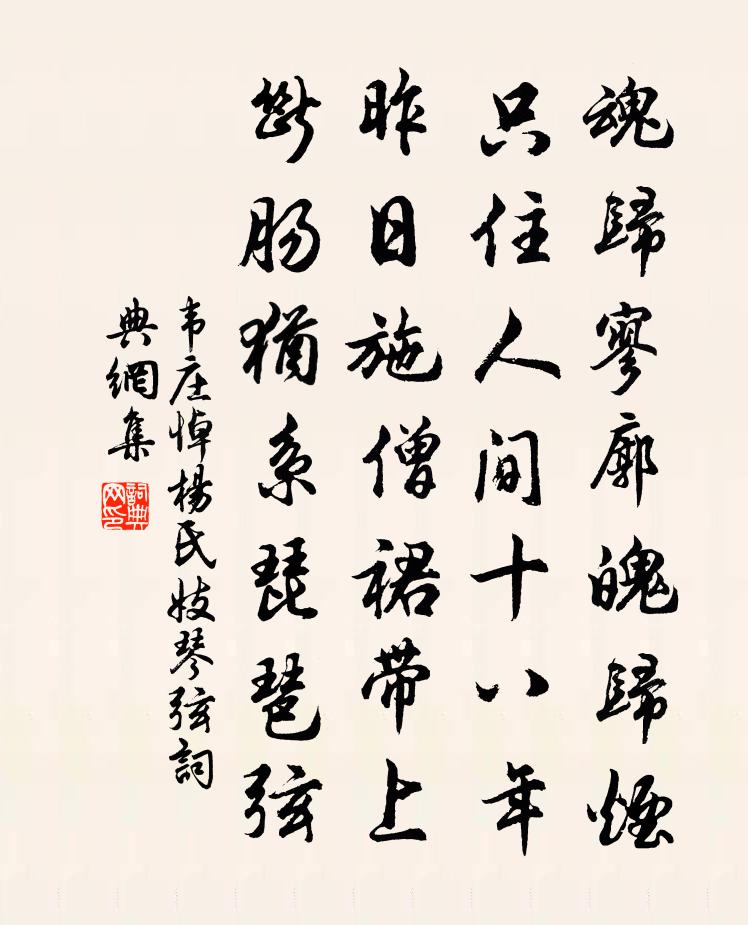 魂歸寥廓魄歸煙,只住人間十八年。昨日施僧裙帶上,斷腸猶系琵琶弦。