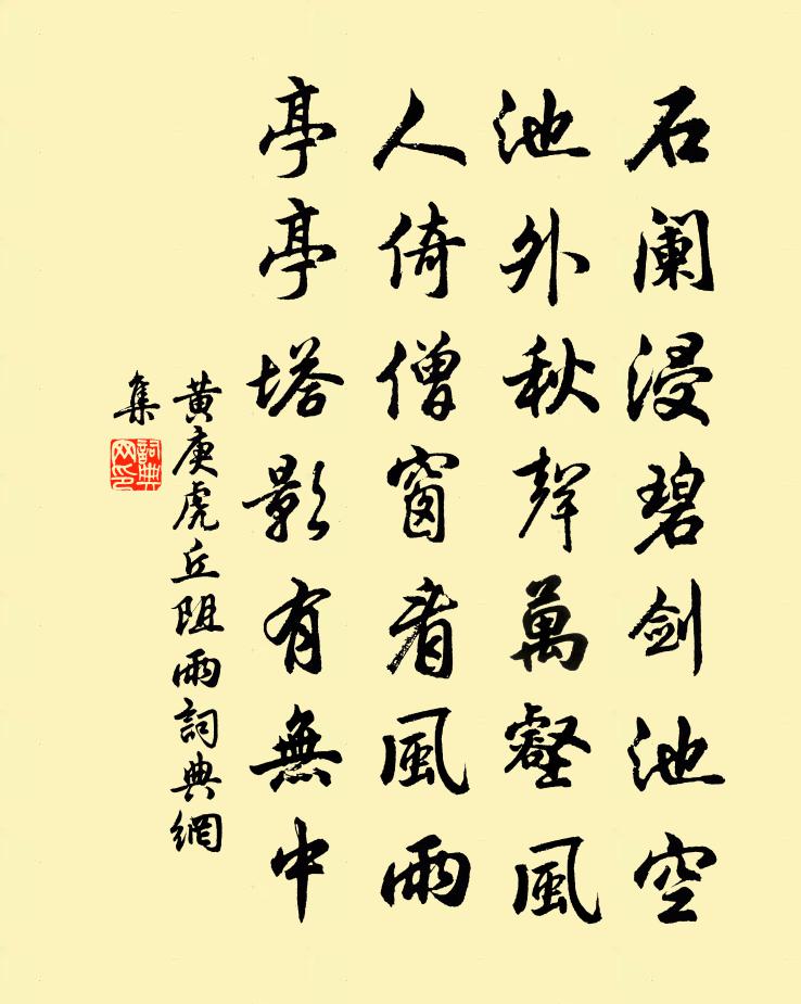 詩詞名句歷史字典書法欣賞書法字典國語詞典說文解字康熙字典古漢語字典標 題 作 者 詩 句 虎丘阻雨作者:黃庚 朝代:宋代虎丘阻雨原文石闌浸碧劍池空,池外秋聲萬壑風。人倚僧窗看風雨,亭亭塔影有無中。詩詞問答問:虎丘阻雨的作者是誰?答:黃庚問:虎丘阻雨寫於哪個朝代?答:宋代黃庚虎丘阻雨書法欣賞虎丘阻雨書法作品詩詞推薦偈頌十七首釋智愚〔宋代〕丁寧損君德,無言真有功。任從滄海變,終不為君通。採茶行鄭樵〔宋代〕春山曉露洗新碧,宿鳥倦飛啼石壁。手攜桃杖歌行役,鳥道紆迴愜所適。千樹朦朧半含白,峰巒高低如幾席。我生偈頌一百四十一首釋師範〔宋代〕這兩個老凍儂,頑處似牛皮,爛處如壞絮。雖然各有機關,爭奈渾無展處。只麽低頭懡?歸,不知忘卻來時路。除夕有感一首王阮〔宋代〕不是功難立,其如興自闌。為貧姑寸祿,漸喜得閒官。天下兵戈滿,壺中日月寬。殷勤除夜雪,衰謝莫能歡。和仁仲春日十絕胡寅〔宋代〕洛陽風俗事栽花,流水園林眇一涯。移得舊根春不老,錯疑蜂蝶過鄰家。偈傾一百三十三首釋法薰〔宋代〕有祖以來,無人奈何。德山臨濟,特地干戈。水到滄溟不是波。望海潮趙文〔宋代〕雲外梅陰,雨餘苔暈,嫩寒初沁羅裳。書幾凝塵,琴絲帶潤,小窗幽夢生涼。新水漲銀塘。恨王孫去後,菸草茫茫春晴方回〔宋代〕饕風虐雪到家林,才喜春晴春已深。花片紛紛飛蝶亂,樹陰漸漸早蟬吟。貧寧不仕元知命,老尚能詩懶用心。忽喜夢中語曾崇范妻〔唐代〕田頭有鹿跡,由尾著日炙。感發落白居易〔唐代〕昔日愁頭白,誰知未白衰。眼看應落盡,無可變成絲。薌林閒居鄭樵〔宋代〕薌林蒼翠甚,極目可□詩。梅子風前落,杏花雨後移。清溪過半郭,孤月隱疏籬。寂寂雲山外,蕭然獨自知。答劉季孫王安石〔宋代〕偶著儒冠敢陋今,自憐多負少時心。輊軒已任人前後,揭厲安知世淺深。挾策有思悲慷慨,負新無力病侵淫。愧君河南希深學士宋祁〔宋代〕洛霧嵩雲滿眼春,仙郎清路擁雙輪。卻陪賓客趨東閣,已為陽秋得素臣。淵秘圖書探漢舊,地交風雨訪周人。歲時句王洙〔宋代〕槐杪青蟲縋夕陽。重題八詠王柏〔宋代〕樓壓重城萬井低,星從天闕下分輝。傷心風月詩應瘦,滿眼桑麻春又肥。山到東南皆屹立,水流西北竟同歸。倚闌點絳唇(周園分題得湖上聞樂)佚名〔宋代〕紫霧香濃,翠華風轉花隨輦。洞天雲暖。一片笙歌遠。水展龍舟,憶侍瑤池宴。閒庭院。夢回春半。雪鬢無人見。送隴州使君劉仲儀左藏赴治強至〔宋代〕夾道濃香數里焚,隨車和氣一城薰。兵民如見古循吏,文武兼能今使君。冷射祠堂汧水月,晴飛郡閣隴山雲。幕中月下小酌陸游〔宋代〕昨日雨遶檐,孤燈對搔首;今夜月滿庭,長歌倚衰柳。世變浩無窮,成敗翻覆手。人生最樂事,臥聽壓新酒。我歸樞密東院秋日宋庠〔宋代〕試問山林客,胡然廊廟中。借籌終不效,數馬亦何功。窈窱荀池北,迴環漢壘東。繒雲高幕潤,瑤草半庭空。乍失和元宗元日大雪登樓徐鉉〔唐代〕一宿東林正氣和,便隨仙仗放春華。散飄白絮惟分影,輕綴青旗見花。落砌更依宮舞轉,入樓偏向御衣斜。嚴徐共名句推薦胭脂洗出秋階影,冰雪招來露砌魂。曹雪芹《薛寶釵詠白海棠》 自聞穎師彈,起坐在一旁。韓愈《聽穎師彈琴》 此地朝來餞行者,翻向此中牧征馬。孟浩然《高陽池送朱二》 天地合而萬物生,陰陽接而變化起,性偽合而天下治。荀子《荀子·禮論》 人有逆天之時,天無絕人之路。馮夢龍《醒世恆言·卷三十二》 教人無處寄相思,落花芳草過前期,沒人知。孫光憲《虞美人·好風微揭簾旌起》 今古河山無定據。納蘭性德《蝶戀花·出塞》 交淺而言深者,愚也;在賤而望貴者,惑也;未信而納忠者,謗也。范曄《後漢書·列傳·崔駰列傳》 夜深斜搭鞦韆索,樓閣朦朧煙雨中。韓偓《夜深 / 寒食夜》 記得去年今夕,釃酒溪亭,淡月雲來去。文徵明《念奴嬌·中秋對月》