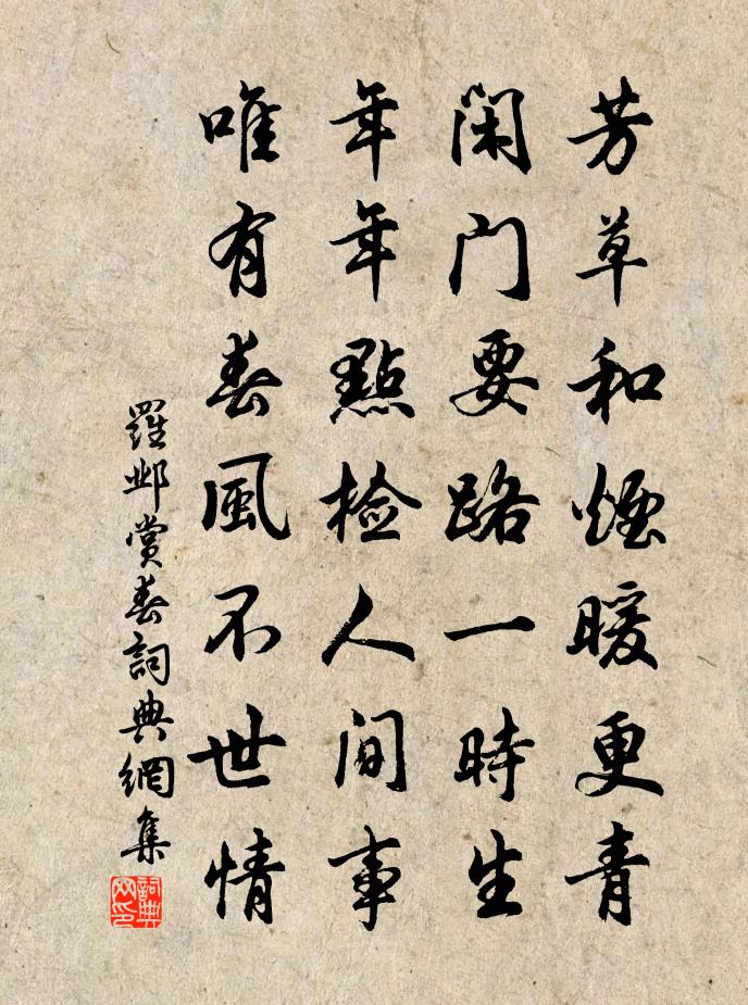 這是一首詠物詩,通過詠贊芳草和春風來諷喻世態人情。頭兩句說,芳草如煙,不管是貧家陋巷還是權門要路,處處長得青蔥一片。後兩句轉入春風,點明主旨。以擬人手法,寫春風年年都來查點人間萬事,對誰都一視同仁,在春風身上看不出人情的冷暖與世態的炎涼。