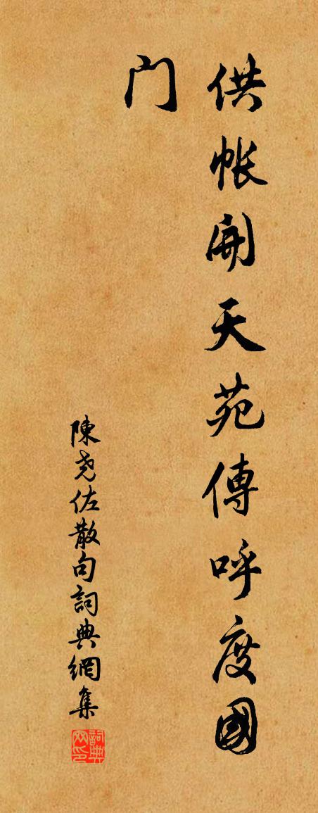 詩詞名句歷史字典書法欣賞書法字典國語詞典說文解字康熙字典古漢語字典標 題 作 者 詩 句 句作者:陳堯佐 朝代:宋代句原文供帳開天苑,傳呼度國門。詩詞問答問:句的作者是誰?答:陳堯佐問:句寫於哪個朝代?答:宋代陳堯佐句書法欣賞句書法作品詩詞推薦雒中寒夜姚侍御宅懷賈島馬戴〔唐代〕夜木動寒色,雒陽城闕深。如何異鄉思,更抱故人心。微月關山遠,閒階霜霰侵。誰知石門路,待與子同尋。和潘德久喜徐文淵趙紫芝還里徐照〔宋代〕故交南北去,誰復念幽人。夕別驚初見,相知樂似新。竹聲當暑淨,茶味得泉珍。貧與詩相涉,詩清不怨貧。江陵晦日陪諸官泛舟錢起〔唐代〕節物堪為樂,江湖有主人。舟行深更好,趣久主彌新尊酒平生意,煙花異國春。城南無夜月,長袖莫留賓。宋玉對楚王問宋玉〔先秦〕楚襄王問於宋玉曰:“先生其有遺行與?何士民眾庶不譽之甚也!” 宋玉對曰:“唯,然,有之!願大王寬其知足濮肅〔宋代〕知足自不辱,古人乃患辱。但安童叟嬉,寧與紛華觸。白日一卷書,興來還秉燭。夕烽杜甫〔唐代〕夕烽來不近,每日報平安。塞上傳光小,雲邊落點殘。照秦通警急,過隴自艱難。聞道蓬萊殿,千門立馬看。七夕聞鵲吳泳〔宋代〕黃姑西不娶,織女東未嬪。絳河咫尺間,可望不可親。欲遣烏作使,烏黠言未馴。欲詔鳳為媒,鳳老咮不靈。獨有閒居有感陳著〔宋代〕參差梅竹槿花籬,強對溪山傲百罹。終日書聲清屋氣,四時蔬食壽家規。苦兒知學何妨懶,老婦安貧未覺衰。無處偈頌一百零二首釋慧遠〔宋代〕金地嶺胸中丘壑,赤城山皮裹陽秋。華頂峰腦門著地,桐柏觀稽首叩頭。老病六言十首呈竹溪劉克莊〔宋代〕蕭詧數步開臭,荀令三日猶香。老子年來鼻塞,不分鮑肆麝房。和史司直韻五首吳潛〔宋代〕南方一佛放圓光,散作閻浮檐蔔香。便把此花為贊祝,更將何物獻休祥。建中聖主平平盪,錫福明王簡簡穰。共喜春來風雨,無一日好晴,因賦瓶花二絕范成大〔宋代〕酒冷花寒無好懷,柴荊終日為誰開?三分春色三分雨,疋似東風本不來。燕歸梁謝逸〔宋代〕六曲闌乾翠幕垂。香燼冷金猊。日高花外囀黃鸝。春睡覺、酒醒時。草青南浦,雲橫西塞,錦字杳無期。東風只送天育二老禪惠示經佛偈答以十詩鄭清之〔宋代〕龍宮海藏自分明,搕撟灘頭一任傾。因果若還終不昧,政須防作野狐鳴。破虜凱歌二十四首周麟之〔宋代〕每率群胡共打圍,防奸惟許屬鞬隨。一朝醉臥隋堤曲,眾箭攢胸死不知。薔薇詩一首十八韻,呈東海侍郎徐鉉李從善〔唐代〕綠影復幽池,芳菲四月時。管弦朝夕興,組繡百千枝。盛引牆看遍,高煩架屢移。露輕濡彩筆,蜂誤拂吟髭。日照偈頌十八首釋如淨〔宋代〕莫謗瞿曇今日生,插天山嶽勢崢嶸。一番雨洗添狼藉,萬古風煙恨不平。江神子(金山會飲)韓元吉〔宋代〕金銀樓閣認蓬萊。曉煙開。上崔嵬。風引孤帆,誰道卻船回。鵬翼倚天鰲背穩,驚浪起,雪成堆。翩翩黃鶴為誰來又和張給事喜雨范祖禹〔宋代〕瞻望昭回每夜分,崇朝忽起泰山雲。乾坤盪暑如醒醉,江海生波想織紋。禁漏深迷天闕曉,朝衣涼帶御爐熏。時清過屈平昭君故宅張嵲〔宋代〕夔州之山皆入雲,夔女寢陋男不文。山川歷歷應如舊,昭君屈平猶荒村。三百篇後無繼者,始作離騷紹風雅。君門名句推薦踏破鐵鞋無覓處,得來全不費工夫。馮夢龍《醒世恆言·卷十三》 報答春光知有處,應須美酒送生涯。杜甫《江畔獨步尋花七絕句》 駐馬橋西,還系舊時芳樹。高觀國《玲瓏四犯·水外輕陰》 燕燕輕盈,鶯鶯嬌軟,分明又向華胥見。姜夔《踏莎行·自沔東來丁未元日至金陵江上感夢而作》 台高不盡看楓葉,院淨何須坐菊花。沈輅《九日登高台寺》 寫不成書,只寄得、相思一點。張炎《解連環·孤雁》 望千門如晝,嬉笑遊冶。周邦彥《解語花·上元》 習俗移志,安久移質。荀子《荀子·儒效》 九日黃花才過了,一尊聊慰秋容老。趙可《鳳棲梧·霜樹重重青嶂小》 楓葉千枝復萬枝,江橋掩映暮帆遲。魚玄機《江陵愁望寄子安》