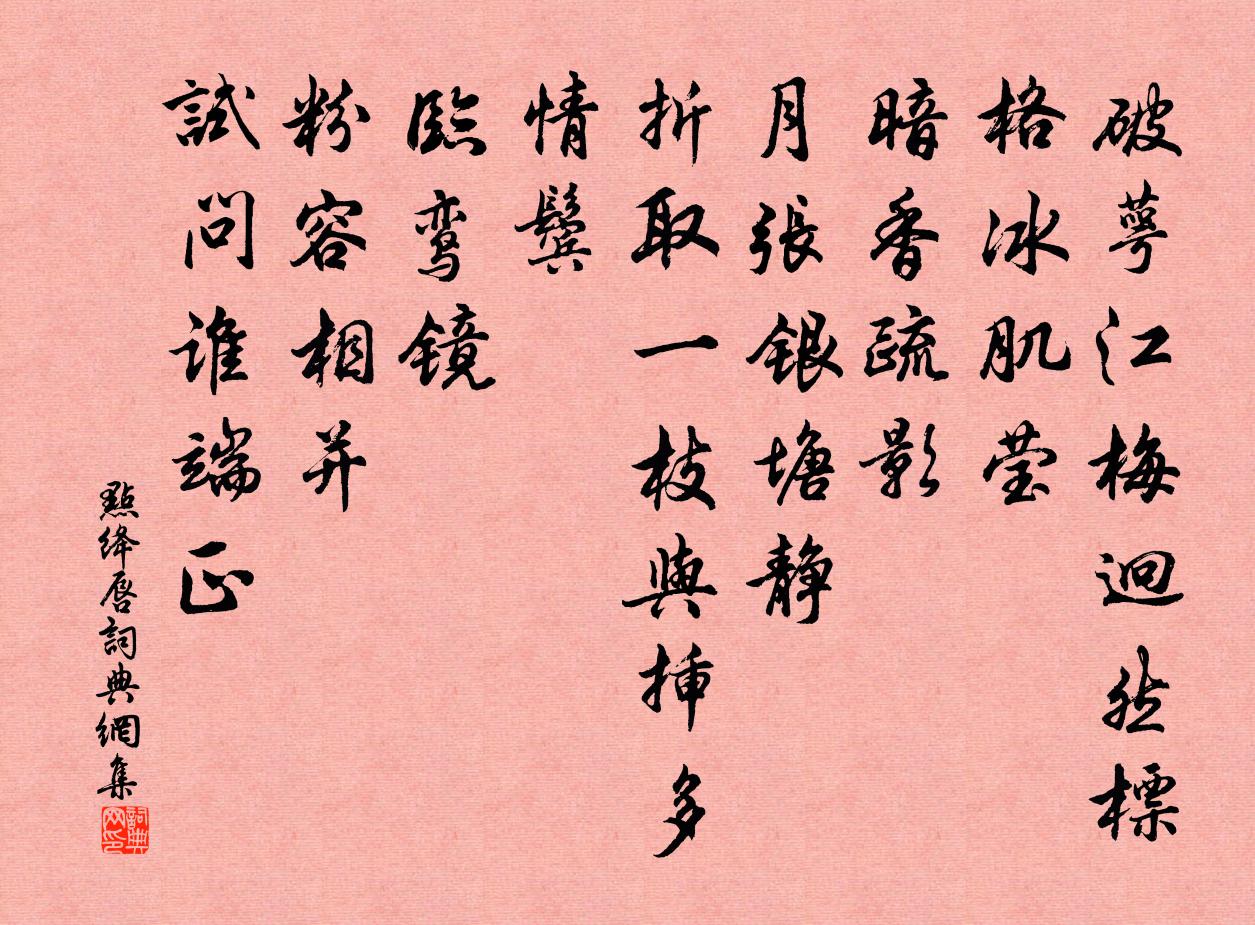 破萼江梅,迥然標格冰肌瑩。暗香疏影。