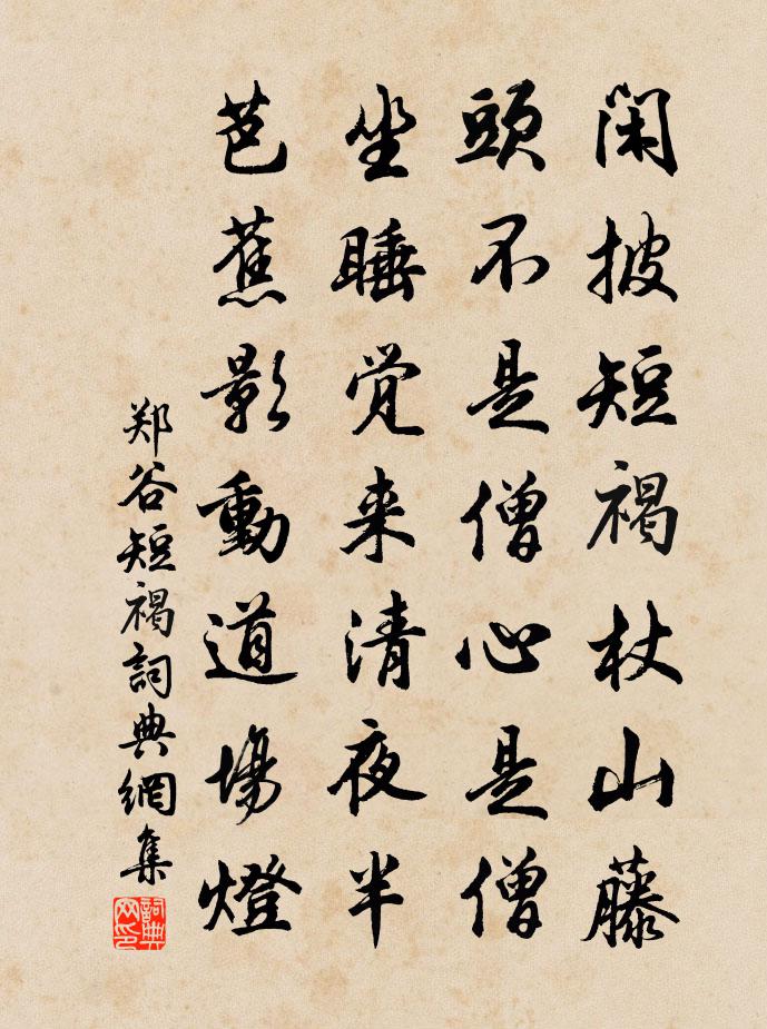 閒披短褐杖山藤,頭不是僧心是僧。坐睡覺來清夜半,芭蕉影動道場燈。