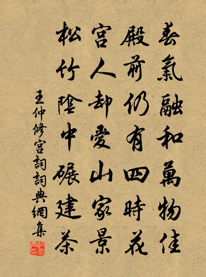 詩詞名句歷史字典書法欣賞書法字典國語詞典說文解字康熙字典古漢語字典標 題 作 者 詩 句 宮詞作者:王仲修 朝代:宋代宮詞原文春氣融和萬物佳,殿前仍有四時花。宮人卻愛山家景,松竹陰中碾建茶。詩詞問答問:宮詞的作者是誰?答:王仲修問:宮詞寫於哪個朝代?答:宋代王仲修宮詞書法欣賞宮詞書法作品詩詞推薦縉雲縣仙都山黃帝祠宇王銍〔宋代〕我渡溪山尋荒村,群峰勢若萬馬奔。酣酣春色雪初霽,靄靄野氣山猶昏。瓊樓金闕滌地盡,松柏半帶斤斧痕。要還試院即事呈諸公張耒〔宋代〕天街落日走鳴珂,咫尺衡門不許過。催去據鞍猶鶴望,爭觀夾道已雲羅。奏篇定有凌雲賦,招隱今無扣角歌。最苦依韻酬葉道卿中秋對月二首范仲淹〔宋代〕天遣今宵無寸雲,故開秋碧掛冰輪。詩人不悔衣沾露,為惜清光豈易親。春吟四絕張榘〔宋代〕岸草不知緣底綠,山花試問為誰紅。元造本來惟寂寞,年年多事是春風。同彥范謁仲巽飲之甚樂仲巽且有北歸之期情見鄭獬〔宋代〕明珠堆滿赤金盤,未買花前笑倚欄。特地尋春難約伴,等閒攜酒卻成歡。人生試把從頭算,世事何煩著眼看。莫怪送宋郎中知鳳翔瘵司馬光〔宋代〕昔解陳倉印,於今二十秋。雙鳧久東上,五馬重西沲。饒騎行關外,壺漿擁道周。民心已化服,條教不更修。鷓鴣天郭應祥〔宋代〕眼前好景真無盡,身外浮名盡可輕。窮勝賞,續歡盟。直饒風雨也須晴。滿頭插菊掀髯笑,笑道齊山浪得名。次徐戶都韻劉克莊〔宋代〕不能測海更窺天,頗廢開荒與糞田。碧眼睛中疑有崇,白蕉肘後惜無傳。佛雲泡影應如是,儒說心思既竭焉。老子獻鄭給事杜荀鶴〔唐代〕化行邦域二年春,樵唱漁歌日日新。未降詔書酬善政,不知天澤答何人。秋登岳寺雲隨步,夜宴江樓月滿身。他日次韻辟雍同舍用予魁字韻方岳〔宋代〕行輩參差落後來,未經老筆掃氛埃。閒知天地摩銅狄,莫誤春秋著玉杯。斷藁略堪供醬瓿,騷人徑欲築詩台。更煩送蔡子壽葉適〔宋代〕彼羙蔡氏子,任也堪將相。唯儔亦異材,朗立萬人上。吾嘗扣其微,事詣理亦暢。雨露待堅成,風波豈凋喪。醯雞朝中措朱敦儒〔宋代〕閒愁無奈指頻彈。芳景為誰殘。可惜良宵虛過,且容草草謀歡。招要楚雨,留連漢佩,多謝青鸞。濃艷暗香爭暖,砥柱四首范祖禹〔宋代〕禹開砥柱放河奔,濁浪軒軒日月昏。唯有三門君不見,驚波一起動乾坤。碧蘆堂宋庠〔宋代〕寂寂虛堂一自幽,紺梢蒼葉更臨流。不須重畫滄浪境,一片江天小樣秋。蠟梅二首韓元吉〔宋代〕未愜籬東染御黃,天香特地剪蜂房。應憐雪裡昭君怨,洗盡鉛華試佛妝。傾杯·鶩落霜洲柳永〔宋代〕鶩落霜洲,雁橫煙渚,分明畫出秋色。暮雨乍歇,小楫夜泊,宿葦村山驛。何人月下臨風處,起一聲羌笛。離愁萬梅花喜神譜爛熳二十八枝宋伯仁〔宋代〕冬冬和歌管,蕢桴無復存。堪笑不知量,以布過雷門。閒詠一首蘇籀〔宋代〕肆筵無釦器,釘壁但鑱碑。慨嘆慕前躅,咨吁亦小知。飪諧棋酒伴,瓶遠井泉湄。自許羲皇上,陶然絕曠夷。低飛雀徐照〔宋代〕雀飛不高丈,啾啾聚榛菅。太倉有腐粟,安得悅爾顏。弋人四驚逐,飛投網羅間。巢中眾雛鳴,望其母來還。題治平寺壁陳郁〔宋代〕越君嘗膽苦心摧,娃館春風正酒杯。弦管但知連夜樂,旌旗先已過溪來。麋沖曉霧游荒苑,雅立斜陽噪古台。野客名句推薦立盡黃昏淚幾行,一片鴉啼月。夏完淳《卜運算元·秋色到空閨》 大直若屈,大巧若拙,大辯若訥。老子《老子·德經·第四十五章》 一觴雖獨盡,杯盡壺自傾。陶淵明《飲酒·其四》 允恭克讓,光被四表,格於上下。佚名《尚書·虞書·堯典》 戚施不可使仰左丘明《國語·晉語·胥臣論教誨之力》 卻下水晶簾,玲瓏望秋月。李白《玉階怨》 蜀國曾聞子規鳥,宣城還見杜鵑花。李白《宣城見杜鵑花 / 子規》 足國之道:節用裕民,而善臧其餘。荀子《荀子·富國》 雪照山城玉指寒,一聲羌管怨樓間。劉著《鷓鴣天·雪照山城玉指寒》 人間萬事,毫髮常重泰山輕。辛棄疾《水調歌頭·壬子三山被召陳端仁給事飲餞席上作》