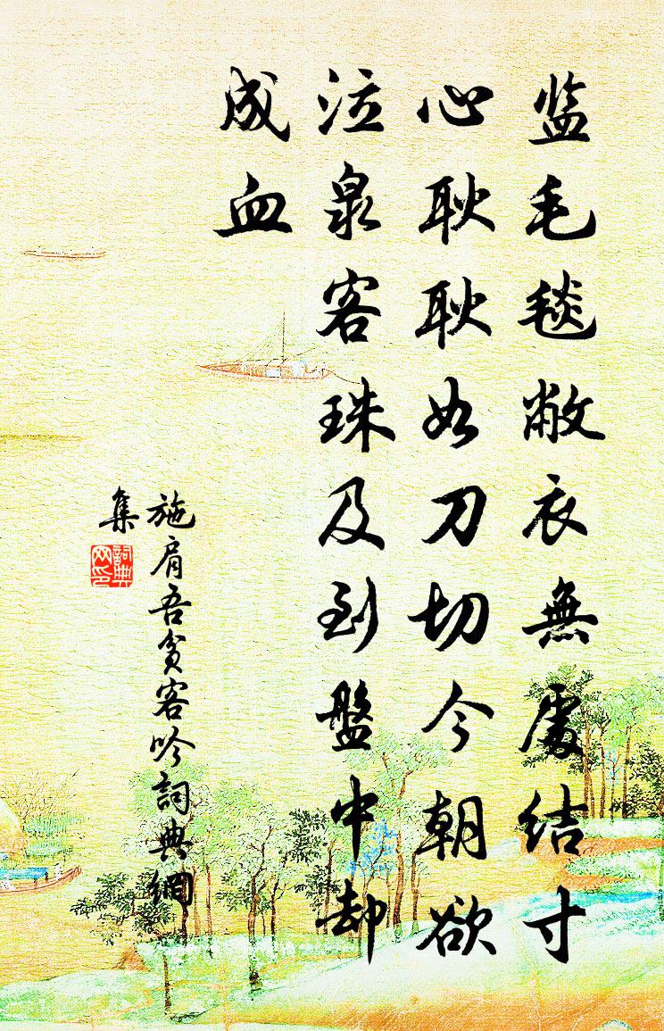 詩詞名句歷史字典書法欣賞書法字典國語詞典說文解字康熙字典古漢語字典標 題 作 者 詩 句 貧客吟作者:施肩吾 朝代:唐代貧客吟原文監毛毯敝衣無處結,寸心耿耿如刀切。今朝欲泣泉客珠,及到盤中卻成血。詩詞問答問:貧客吟的作者是誰?答:施肩吾問:貧客吟寫於哪個朝代?答:唐代問:貧客吟是什麼體裁?答:七古施肩吾貧客吟書法欣賞貧客吟書法作品注釋全唐詩:卷494-65詩詞推薦凱歌十首呈賈樞使劉克莊〔宋代〕翦稱名將豈其然,汲汲惟求宅與田。見說淮兵殊死戰,相公喝犒是私錢。秋日偶題杜牧〔唐代〕荷花兼柳葉,彼此不勝秋。玉露滴初泣,金風吹更愁。綠眉甘棄墜,紅臉恨飄流。嘆息是遊子,少年還白頭。即事陳造〔宋代〕平昔功名念,如今冷似灰。藏書堪樂死,望歲待歸來。小宅依城築,虛檐枕水開。溪翁詩社侶,有酒剩追陪。和芙蓉和尚四句偈頌解針枯骨吟釋慧暉〔宋代〕宮漏沉沉夜色深,燈殘火盡絕知音。木人位轉玉繩曉,石女夢回霜滿襟。憶王孫汪元量〔宋代〕陣前金甲受降時。園客爭偷御果枝。白髮宮娃不解悲。理征衣。一片春帆帶雨飛。堪笑方岳〔宋代〕堪笑劉安若學仙,雲中雞犬事茫然。早知官職乃如許,悔不人間差自賢。慶江檢詳太夫人潛放〔宋代〕笑著斑襴學乳兒,民情物意總相宜。嬉嬉同在春風裡,父樣尊嚴母樣慈。郊廟歌辭。祀雨師樂章。迎俎酌獻包佶〔唐代〕陽開幽蟄,躬奉郁鬯。禮備節應,震來靈降。動植求聲,飛沉允望。時康氣茂,惟神之貺。洞庭湖宋之問〔唐代〕地盡天水合,朝及洞庭湖。初日當中涌,莫辨東西隅。晶耀目何在,瀅熒心欲無。靈光晏海若,游氣耿天吳。張樂句餘子畏〔宋代〕若知瓦礫樂成道,便覺珠璣不屬君。幽居劉過〔宋代〕對面滄浪可濯纓,不思泛舸出春城。浮沈枌社何人重,府仰茅檐是事輕。玉蕊連屏寒徙倚,蒲萄上架月縱橫。江湖忍公小軒二首(一本題上有西蜀淨眾寺五字)鄭谷〔唐代〕松溪水色綠於松,每到松溪到暮鍾。閒得心源只如此,問禪何必向雙峰?舊遊前事半埃塵,多向林中結淨因。一念同永叔子聰游嵩山賦十二題其七天門梅堯臣〔宋代〕古壁何蒼蒼,穿雲玉梯出。欻然起青冥,卻立觀少室。前岩復後峰,陰晴狀非一。一萼紅詹玉〔宋代〕泊沙河。月鉤兒掛浪,驚起兩魚梭。淺碧依痕,嫩涼生潤,山色輕染修蛾。釣船在、綠楊陰下,驀聽得、扇底有吳偈傾一百六十九首釋智朋〔宋代〕西天此土,十萬餘程。胡言易會,漢語難明。艷歌行曹植〔魏晉〕長者賜顏色。泰山可動移。題餘杭縣龍泉觀張祜〔唐代〕四回山一面,台殿已嵯峨。中路見山遠,上方行石多。天晴花氣漫,地暖鳥音和。徒漱葛仙井,此生其奈何。茶磨二首梅堯臣〔宋代〕楚匠斲山骨,折檀為轉臍。乾坤人力內,日月蟻行迷。吐雪夸春茗,堆雲憶舊溪。北歸唯此急,藥臼不須擠。灉湖作徐照〔宋代〕灉湖春來水拍,天秋來水涸成乾田。天地盈虛不可保,富貴於人豈長好。次韻安撫侍郎勸耕喜雨之什度正〔宋代〕田家何所樂,所樂日未曛。男耕而禾稼,女桑而襦裙。面垢落塈塗,目眩濕薪熏。婦子饁南畝,詩人嘗云云。使車名句推薦燕簾鶯戶,雲窗霧閣,酒醒啼鴉。張炎《朝中措·清明時節》 同穴窅冥何所望,他生緣會更難期。元稹《遣悲懷三首·其三》 用天之道,分地之利,謹身節用,以養父母,此庶人之孝也。孔子及其弟子《孝經·庶人》 斑竹枝,斑竹枝,淚痕點點寄相思。劉禹錫《瀟湘神·斑竹枝》 水晶簾動微風起,滿架薔薇一院香。高駢《山亭夏日》 刷羽同搖漾,一舉還故鄉。沈約《詠湖中雁》 桃李務青春,誰能貫白日。李白《長歌行》 知者樂水,仁者樂山。孔子弟子《論語·雍也篇》 朝見馬嶺黃沙合,夕望龍城陣雲起。盧思道《從軍行》 撩亂邊愁聽不盡,高高秋月照長城。王昌齡《從軍行七首》