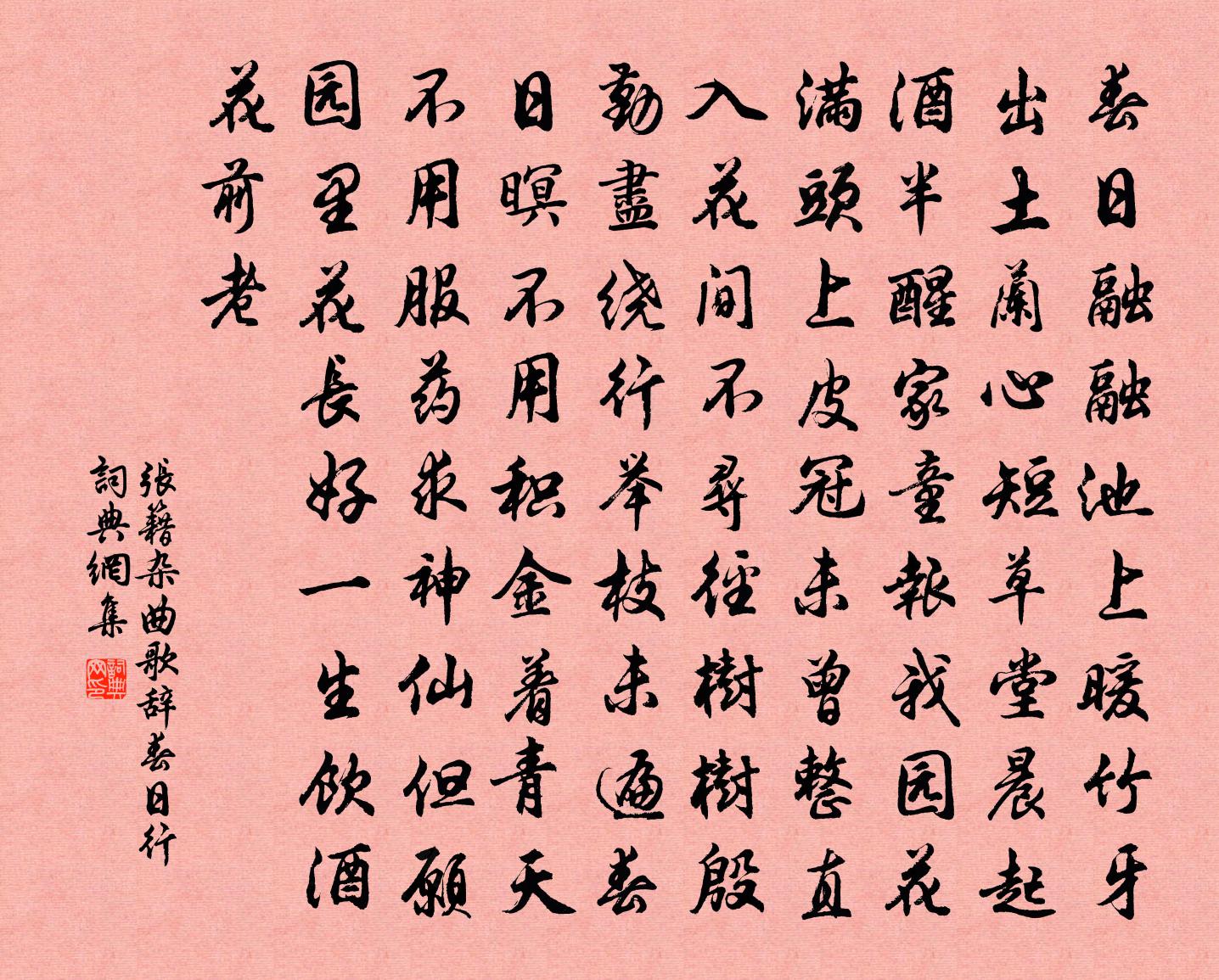 春日融融池上暖,竹牙出土蘭心短。草堂晨起酒半醒,家童報我園花滿。