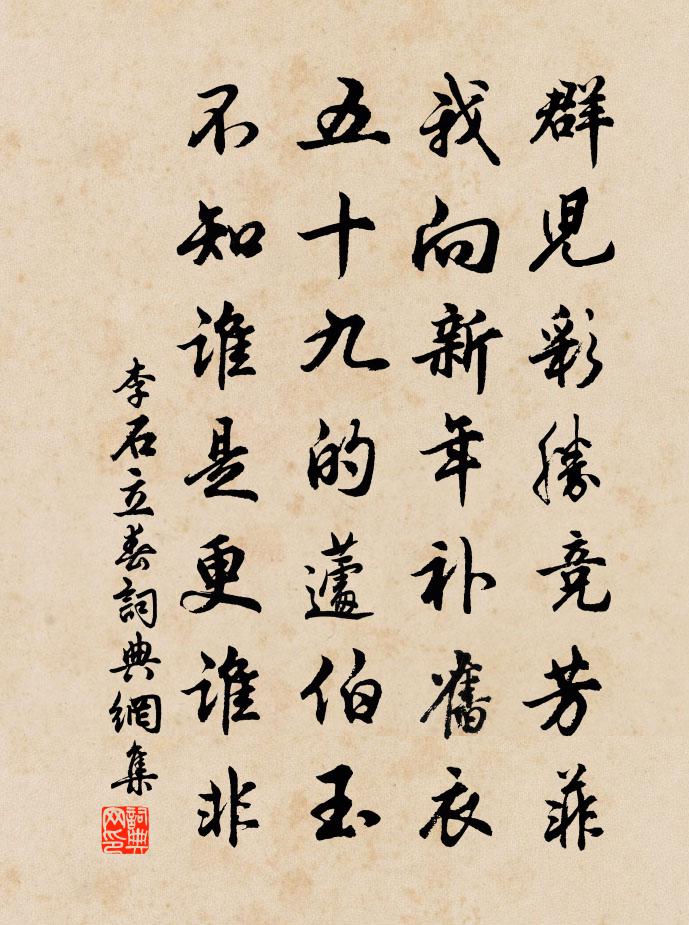 詩詞名句歷史字典書法欣賞書法字典國語詞典說文解字康熙字典古漢語字典標 題 作 者 詩 句 立春作者:李石 朝代:宋代立春原文群兒彩勝競芳菲,我向新年補舊衣。五十九的蘧伯玉,不知誰是更誰非。詩詞問答問:立春的作者是誰?答:李石問:立春寫於哪個朝代?答:宋代李石立春書法欣賞立春書法作品詩詞推薦登黃鶴磯詩鮑照〔南北朝〕木落江渡寒。鴈還風送秋。臨流斷商弦。瞰川悲棹謳。適郢無東轅。還夏有西浮。三崖隱丹磴。九派引滄流。淚竹鄆州劉奉世〔宋代〕暮舂朝城粟,曉采觀城葑。一入高魚境,已是武陽東。清平樂劉秉忠〔元代〕夜來霜重。簾外寒風勁。橫笛樓頭才一弄。驚破綠窗幽夢。起來情緒如何。開門月色猶多。照我如常如畫,更誰能吳太清有遠役以詩寄別次韻釋道璨〔宋代〕宇宙入八窗,芙蓉製衣裳。兩眼掛萬古,深拄書傳香。筆端膚寸合,要作天下涼。餘事亦演雅,簸弄正未妨。顛倒次韻答王敬助 其四王冕〔元代〕野雲依竹靜,霜葉近窗明。對此清幽景,都忘喧雜聲。看書庸有感,與世竟無情。但願添松竹,期君結隱盟。機簡堂余里人也在方外三十年未識其面乾道己吳芾〔宋代〕我家石井旁,山水非不奇。所恨過從少,無與同襟期。獨幸里巷間,高僧有二機。大機傳祖印,海內聲名馳。晚歸橋廊上作張鎡〔宋代〕千載清風笠澤仙,提攜曾置筆床邊。吾行不汲長橋水,要煮青山陸羽泉。和劉太守十州詩芳草洲陳瓘〔宋代〕綠色映波千古恨,至今南浦兩依依。我今又出江東去,多少行人宦未歸。送王十八歸山寄題仙遊寺白居易〔唐代〕曾於太白峰前住,數到仙遊寺里來。黑水澄時潭底出,白雲 * 洞門開。林間暖酒燒紅葉,石上題詩掃綠苔。惆悵春日野外釋文珦〔宋代〕春波蕩漾滿方塘,春草無名各自長。沙際漁翁偏自在,醉拋蓑笠臥斜陽。松風隆首座住雲際禪院薛嵎〔宋代〕山門開望海,鐘鼓動魚龍。人具慈悲相,秋生寂寞容。隨身唯一缽,留偈別雙松。後夜橋西月,支筇失所從。和顏長官百詠貧女朱繼芳〔宋代〕枯木無枝可作花,門前度盡七香車。四隣日日笙歌里,背立東風有幾家。水調歌頭(壽曹太守)陳惟哲〔宋代〕近畿賢太守,陸地隱神仙。功高玉記,名通紫府自長年。拂拭壺中光景,遊戲人間風月,富貴本青氈。十載五分牧郊廟朝會歌辭方皇樂歌佚名〔宋代〕禮行方澤,文物德舉。惟皇地祗,昭格來下。奠痤玉帛,純誠內著。神保是享,陟降斯祐。晚春送牡丹李建勛〔唐代〕攜觴邀客繞朱闌,腸斷殘春送牡丹。風雨數來留不得,離披將謝忍重看。氛氳蘭麝香初減,零落雲霞色漸乾。借問馮彭年蘇州法掾宋祁〔宋代〕竹箭征艫駛,驪駒客袂分。倦遊銷仲產,參事厭卿軍。象闕天中隔,鄉朝月外聞。西山朝氣爽,拄頰待談雲。望廬山曹彥約〔宋代〕暮年秋色戀江鄉,酒熟魚肥蟹著黃。已見廬山非入夢,一帆風穩稱歸航。句李師中〔宋代〕對面好峰橫翠幕,繞城垂柳拂清漣。照鏡白居易〔唐代〕皎皎青銅鏡,斑斑白絲鬢。豈復更藏年,實年君不信。寄李袁州桑落酒郎士元〔唐代〕色比瓊漿猶嫩,香同甘露仍春。十千提攜一斗,遠送瀟湘故人。名句推薦徐郎老,恨斷腸聲在,離鏡孤鸞。吳文英《新雁過妝樓·中秋後一夕李方庵月庭延客命小妓過新水令坐間賦詞》 漢帝重阿嬌,貯之黃金屋。李白《妾薄命》 登鸞車,侍軒轅,遨遊青天中,其樂不可言。李白《飛龍引二首·其一》 相逢清露下,流影濕衣襟。袁枚《夜過借園見主人坐月下吹笛》 漠漠秋雲起,稍稍夜寒生。白居易《微雨夜行》 不違農時,谷不可勝食也孟子《孟子·梁惠王章句上·第三節》 羅襟濕未乾,又是淒涼雪。張淑芳《滿路花·冬》 我心匪石,不可轉也。佚名《柏舟》 淇園春竹美,軍宴日椎牛。司馬光《送龔章判官之衛州·新及第》 夫君子愛口,孔雀愛羽,虎豹愛爪,此皆所以治身法也。劉向《說苑·雜言》