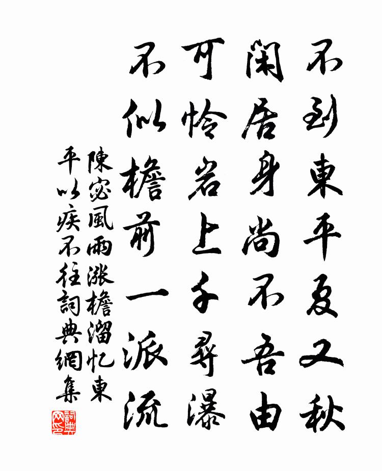 詩詞名句歷史字典書法欣賞書法字典國語詞典說文解字康熙字典古漢語字典標 題 作 者 詩 句 風雨漲檐溜憶東平以疾不往作者:陳宓 朝代:宋代風雨漲檐溜憶東平以疾不往原文不到東平夏又秋,閒居身尚不吾由。可憐岩上千尋瀑,不似檐前一派流。詩詞問答問:風雨漲檐溜憶東平以疾不往的作者是誰?答:陳宓問:風雨漲檐溜憶東平以疾不往寫於哪個朝代?答:宋代陳宓風雨漲檐溜憶東平以疾不往書法欣賞風雨漲檐溜憶東平以疾不往書法作品詩詞推薦易道錄招飲五首白玉蟾〔宋代〕詩酒交遊如骨肉,江湖聚散似雲萍。已煩鶴唳供頭盞,且借嵐光作畫屏。謝趙季茂海錯二律岳珂〔宋代〕珍餚惟錯遠持將,賴有詩情合得嘗。明月擘蚶分礱,晴霞浴鱟露珠房。鰂烏鮆白螺開靨,蚷暇紅鰾挾腸。雁斷閩山送穆少府知眉州賈島〔唐代〕劍門倚青漢,君昔未曾過。日暮行人少,山深異鳥多。猿啼和峽雨,棧盡到江波。一路白雲里,飛泉灑薜蘿。夜雨貫休〔唐代〕夜雨山草濕,爽籟雜枯木。閒吟竺仙偈,清絕過於玉。送李志全還鄉李若水〔宋代〕半竿曉日明柳梢,飛沙眯眼東風豪。之子北歸顏色好,黃紙寫敕藍染袍。只輪軋軋鳴長路,回首高風隔煙霧。自憐書山水畫卷釋文珦〔宋代〕遠浦漁舟若個,荒林草屋誰家。不信丹青能爾,分明雁落平沙。憶昔柴隨亨〔宋代〕憶昔長安都會地,草木晴輝鐘王氣。襟帶江湖氣象雄,自是天王興復際。春風樓閣五鳳城,玉漏聲催香霧盈。戶外青羊宮郭忠恕〔宋代〕久知玄牝是根原,誰道長生別有門。一自描龍興嘆後,至今師事五千言。和鄭貳卿別賦王洋〔宋代〕病逐秋風至,年隨塞草衰。家如百年夢,身入四愁詩。北焙聯圭璧,南薰潤岳池。齋房多勝事,可但滑琉璃。偈頌一百二十三首釋普度〔宋代〕拄杖子,無向背。東拄西掌,登山涉海。汴璧驪珠,泥團土塊,一時粉碎。蝶戀花(勸酒致語)黃裳〔宋代〕適來已陳十二短章,輒歌三五盛景。累累清韻,尚漸樑上之飛塵;抑抑佳賓,須作鄉中之醉客。同樂當勤於今夕,偈頌二十五首釋普岩〔宋代〕個樣皮毛,千化萬變。黃梅鷲頭,謾自流傳。後代兒孫,可貴可賤。大雪追和退之辛卯年雪韻喻良能〔宋代〕太昊亦已至,玄冥猶未歸。茫茫天壤間,浪闊銀山圍。玉龍橫梅度,皓鶴漫空飛。白帝有所適,飄飄揚旌旗。從者白酒歌為岩翁賦黃庚〔宋代〕火雲燒空日色烈,暑氣著人方鬱結。岩翁宴客水亭東,竹色蕖香獻清絕。瓜削水晶蓮剖珠,象箸犀盤盛陳列。銀罌次韻樞言龍圖得請洞霄之作朱長文〔唐代〕平生氣節薄青雲,不任機心只任真。金為散多虛越橐,衣從洗淨遠京塵。吟隨猿鶴滄洲晚,醉賞鶯花茂苑春。仰止吳下肅公輓歌辭三首司馬光〔宋代〕念昔少年日,謬登君子堂。重言何以稱,厚德不能忘。玉塵聲容在,泉台歲月長。憑誰寄清淚,為我灑松岡。題吳氏四賢堂羅鑒〔宋代〕敬齋一則話,傳自南軒翁。於湖金玉之,諸老歸下風。不使掌帝制,嗟哉吾道窮。遺像今偉然,吾敬司封公。戲贈友二首杜甫〔唐代〕元年建巳月,郎有焦校書。自誇足膂力,能騎生馬駒。一朝被馬踏,唇裂版齒無。壯心不肯已,欲得東擒胡。元年立春帖子太上皇后閣周必大〔宋代〕東風一夜轉熙台,日上瑤池綺席開。可但六宮環佩響,重孫滿眼賀春來。鄭仲理送行六首趙蕃〔宋代〕周郎三復似南容,君亦因之師友同。豈待湖南始相識,聞風元自大江東。名句推薦數萼初含雪,孤標畫本難。崔道融《梅花》 玉璫緘札何由達,萬里雲羅一雁飛。李商隱《春雨》 日暮蒼山遠,天寒白屋貧。劉長卿《逢雪宿芙蓉山主人》 秋晚佳晨重物華,高台復帳駐鳴笳。宋祁《九日置酒》 種豆南山下,草盛豆苗稀。陶淵明《歸園田居·其三》 綠陰不減來時路,添得黃鸝四五聲。曾幾《三衢道中》 四海皆兄弟,誰為行路人。佚名《舊題蘇武詩 / 別詩四首·其一》 真積力久則入。荀子《荀子·勸學》 知之盛者,莫大於成身,成身莫大於學。呂不韋《呂氏春秋·紀·孟夏紀》 別來春半,觸目柔腸斷。李煜《清平樂·別來春半》