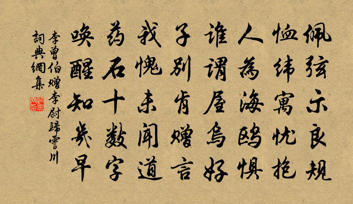 詩詞名句歷史字典書法欣賞書法字典國語詞典說文解字康熙字典古漢語字典標 題 作 者 詩 句 贈李尉歸霅川作者:李曾伯 朝代:宋代贈李尉歸霅川原文佩弦示良規,恤緯寓憂抱。人為海鷗懼,誰謂屋烏好。子別肯贈言,我愧未聞道。藥石十數字,喚醒知幾早。詩詞問答問:贈李尉歸霅川的作者是誰?答:李曾伯問:贈李尉歸霅川寫於哪個朝代?答:宋代李曾伯贈李尉歸霅川書法欣賞贈李尉歸霅川書法作品詩詞推薦和微之詩二十三首。和晨霞(此後在上都作)白居易〔唐代〕君歌仙氏真,我歌慈氏真。慈氏發真念,念此閻浮人。左命大迦葉,右召桓提因。千萬化菩薩,百億諸鬼神。上自湖鄉檢旱回入南路夜宿江寺對望郛郭余靖〔宋代〕高城鎖夕靄,遠水浮秋空。此時行役心,展轉如飛蓬。路入淺沙斷,堪慟車轍窮。豈無舟楫利,枉道非所從。雖有白雪歌送武判官歸京岑參〔唐代〕北風捲地白草拆,胡天八月即飛雪。忽如一夜春風來,千樹萬樹梨花開。散入珠簾濕羅幕,狐裘不暖錦衾薄。將軍曉謁城東獄祠回馬上作宋庠〔宋代〕洚水成災後,霜原落木秋。濁河雖自復,寒潦不知收。路壞停軺館,城摧卻敵樓。民廛無黍稷,何術望神休。過蕉塤楊萬里〔宋代〕楓葉乾余尚小紅,苕花飛盡不留茸。經旬欲雪還無雪,只作清寒惱殺儂。煉丹岩留題張繼先〔宋代〕鶴來松有客,苔去石無衣。黃金浮世在,白髮故人稀。北樓晚景宋庠〔宋代〕脩曲少城偏,臨秋坐眇然。殘陽鴉翅外,新月鳥行邊。隱軫齊侵地,蒼茫魯狩田。登高何必賦,歸意自悁悁。微雨午寢夢憩道傍驛舍若在秦蜀間慨然有賦陸游〔宋代〕吳中秋晚雨冥冥,自笑閒愁又爾馨。身世已歸南北陌,夢魂猶寄短長亭。濁醪可釀樽余綠,明鏡無情鬢失青。賴有訴衷情(莆中酌獻白湖靈惠妃三首)趙師俠〔宋代〕神功聖德妙難量。靈應著莆陽。湄洲自昔仙境,宛在水中央。孚惠愛,備祈禳。降嘉祥。雲車風馬,肸蠁來歆,桂道州觀野火呂溫〔唐代〕南風吹烈火,焰焰燒楚澤。陽景當晝遲,陰天半夜赤。過處若彗掃,來時如電激。豈復辨蕭蘭,焉能分玉石。蟲蛇襄陽歌劉過〔宋代〕十年著腳走四方,胡不歸一兮襄陽。襄陽真是用武國,上下吳蜀天中央。銅鞮坊里弓作市,八邑田熟麥當糧。一條清溪江令公宅羅隱〔唐代〕蠻箋象管夜深時,曾賦陳宮第一詩。宴罷風流人不見,廢來蹤跡草應知。鶯憐勝事啼空巷,蝶戀餘香舞好枝。還有新秋病起白居易〔唐代〕一葉落梧桐,年光半又空。秋多上階日,涼足入懷風。病瘦形如鶴,愁焦鬢似蓬。損心詩思里,伐性酒狂中。華蓋憶雲門諸寺陸游〔宋代〕三百六十日,安可日日愁?四百八十寺,要須寺寺游。雲門若耶間,到處可淹留。金像閟古殿,霜鍾發重樓。臨澗瞻禮孔子吟邵雍〔宋代〕執卷何人不讀書,能知性者又何如。工居天下語言內,妙出世間繩墨餘。陶冶有無天事業,權衡治亂帝功夫。大哉題自然足軒劉過〔宋代〕秋光萬斛潑疏簾,瘦玉蕭蕭拂畫檐。鵲尾爐中香篆冷,矮窗袖手對楞嚴。偈頌二百零五首釋正覺〔宋代〕若恁麽,也難得,清光浩蕩無瑕隙。人言千里本同風,我道十方渾一色。渾一色,須轉側。才轉側,透關隔。透關句田況〔宋代〕曲終甚喜詢前事,自言本是都知子。當時此地最繁華,酒酣不覺恣矜誇。若使斯人解感傷,豈能終老愛琵琶。送黃權守歸八桂三首胡寅〔宋代〕雨岸溪紋蹙,風亭柳帶縈。借留無上策,送別有兼程。望杳雲間旆,班余野外荊。路從簪玉去,增我故山情。半塘范成大〔宋代〕柳暗閶門逗曉開,半塘塘下越溪回。炊煙擁柁船船過,芳草緣堤步步來。名句推薦一點殘紅欲盡時。乍涼秋氣滿屏幃。周紫芝《鷓鴣天·一點殘紅欲盡時》 何處可為別,長安青綺門。李白《送裴十八圖南歸嵩山二首》 月既不解飲,影徒隨我身。李白《月下獨酌四首·其一》 吳台直下,緗梅無限,未放野橋香度。吳文英《永遇樂·探梅次時齋韻》 風蒲獵獵小池塘。過雨荷花滿院香。李重元《憶王孫·夏詞》 常隨寶鐙陪金勒,絕塞指揮萬馬嘶。俞益謨《中洲株柳》 楊柳東風樹,青青夾御河。王之渙《送別》 主人有酒歡今夕,請奏鳴琴廣陵客。李頎《琴歌》 天下無指者,生於物之各有名,不為指也。公孫龍《公孫龍子·指物論》 萬里秋光客興賒,同人九日惜年華。沈輅《九日登高台寺》