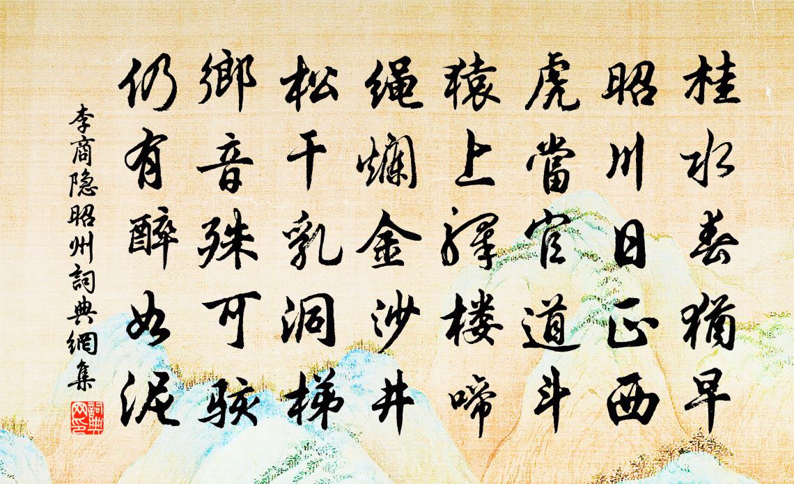 詩詞名句歷史字典書法欣賞書法字典國語詞典說文解字康熙字典古漢語字典標 題 作 者 詩 句 昭州作者:李商隱 朝代:唐代昭州原文桂水春猶早,昭川日正西。虎當官道斗,猿上驛樓啼。繩爛金沙井,松乾乳洞梯。鄉音殊可駭,仍有醉如泥。詩詞問答問:昭州的作者是誰?答:李商隱問:昭州寫於哪個朝代?答:唐代問:昭州是什麼體裁?答:五律問:李商隱的名句有哪些?答:李商隱名句大全李商隱昭州書法欣賞昭州書法作品注釋全唐詩:卷540-164詩詞推薦七言四韻十六首張伯端〔宋代〕三五一都三個字,古今明者實然稀。東三南二同成五,北一西方四共之。戊己自居生數五,三家相見結嬰兒。嬰兒滿庭芳馬鈺〔元代〕昔年名利,役碎頑心。氣財酒色深沈。方寸之間,荊棘仿佛成林。因遇風仙省悟,覺從前、罪業彌深。便改正,便頌古四十五首釋慧遠〔宋代〕家常侍客勸三杯,鴆酒不消吃一盞。當時裂破夜叉頭,頂門突出醯羅眼。徐園閒步二首張耒〔宋代〕動地春風晚未休,吹花折柳卻成愁。塵埃不用頻車馬,獨臥氍毹正擁裘。岳陽樓望洞庭張經〔宋代〕每因蜀水漲,橫遏楚江流。氣象吞雲夢,波瀾徹夏秋。風雲幾開闔,日月自沉浮。欲濟誰舟楫,乾坤獨倚樓。滕公徐鈞〔宋代〕日奉車音語易親,朱奴立受再生恩。淮陰元是公全活,末著何妨更一言。自遣李覯〔宋代〕富貴浮去畢竟空,大都仁義最無窮。一千八百周時國,誰及顏回陋巷中。梅花四首袁燮〔宋代〕百卉芳菲二月時,先春梅萼著疎枝。只緣姑射風姿別,不怕寒威損玉肌。傷心行李賀〔唐代〕咽咽學楚吟,病骨傷幽素。秋姿白髮生,木葉啼風雨。燈青蘭膏歇,落照飛蛾舞。古壁生凝塵,羈魂夢中語。次韻張提刑送行六絕洪咨夔〔宋代〕扁舟觸熱下涪忠,肩聳無人肯拍洪。詩送涼風天外至,魚龍起舞浪化中。系樂府十二首下客謠元結〔唐代〕下客無黃金,豈思主人憐。客言勝黃金,主人然不然。珠玉成彩翠,綺羅如嬋娟。終恐見斯好,有時去君前。豈知游建康碧瑤洞万俟紹之〔宋代〕洞口篔簹幾百竿,洞深襟袂易生寒。鹿眠桃塢春常在,鶴唳松梢夜未闌。瓦鼎香騰秋霧薄,石盤棋撒曉星殘。道人題磁嶺海棠花溫庭筠〔唐代〕幽態竟誰賞,歲華空與期。島回香盡處,泉照艷濃時。蜀彩淡搖曳,吳妝低怨思。王孫又誰恨,惆悵下山遲。永樂沽酒方回〔宋代〕大寒豈可無杯酒,欲致多多恨未能。楮幣破慳捐一券,瓦壺絕少約三升。村沽太薄全如水,凍面微溫尚帶冰。爨仆毛伯玉以六月廿七日來訪是年天不雨梅亢熱異方逢振〔宋代〕柏玉不我過,過我必六月。老天雨不梅,五行一乃絕。亢離單用事,赤烏赤如血。人寰何辠辜,幾欲炮烙殺。左手晚宿靈岩雲盤山人〔宋代〕風雨旃檀閣,煙霞鐘鼓聲。定僧今不作,空谷尚傳燈。發慈湖,過烈山,望見歷陽一帶山二首楊萬里〔宋代〕一出還添二百詩,風光投到費推辭。江湖物色休吟盡,留取西歸一半題。正月三日驟暖多稼亭前梅花盛開四首楊萬里〔宋代〕卻緣臘雪勒孤芳,等待晴光曬麝囊,小立樹西人不會,東風供我打頭香。送友人入蜀李白〔唐代〕見說蠶叢路,崎嶇不易行。山從人面起,雲傍馬頭生。芳樹籠秦棧,春流繞蜀城。升沉應已定,不必問君平。石州慢 己酉秋,吳興舟中作張元乾〔宋代〕雨急雲飛,驚散暮鴉,微弄涼月。誰家疏柳低迷,幾點流螢明滅。夜帆風使,滿湖煙水蒼茫,菰蒲零亂秋聲咽。夢名句推薦朝作輕寒暮作陰,愁中不覺已春深。屈大均《壬戌清明作》 望天王降詔,早招安,心方足。宋江《滿江紅·喜遇重陽》 雪月最相宜,梅雪都清絕。張孝祥《卜運算元·雪月最相宜》 日晚江南望江北,寒鴉飛盡水悠悠。嚴維《丹陽送韋參軍》 不讓則不和,不和不可以遠征。左丘明《左傳·定公·定公五年》 舍其所爭,取其所棄,不亦君子乎?王通《中說·卷四·事君篇》 秋江帶雨,寒沙縈水,人瞰畫閣愁獨。史達祖《八歸·秋江帶雨》 雁聚河流濁,羊群磧草膻。齊己《送人游塞》 屈子冤魂終古在,楚鄉遺俗至今留。邊貢《午日觀競渡》 今逢四海為家日,故壘蕭蕭蘆荻秋。劉禹錫《西塞山懷古》