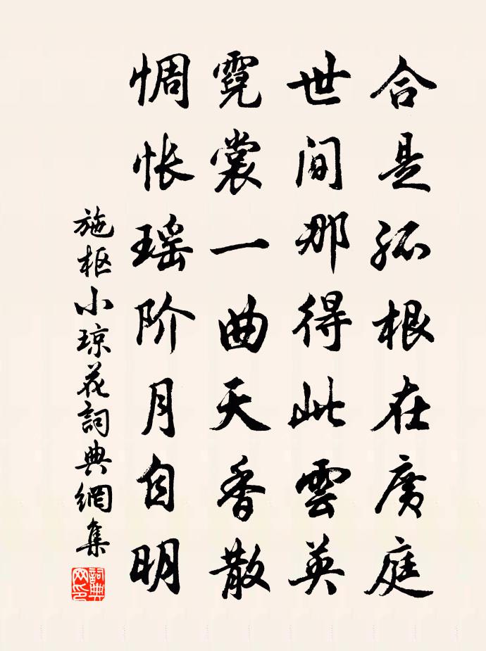 詩詞名句歷史字典書法欣賞書法字典國語詞典說文解字康熙字典古漢語字典標 題 作 者 詩 句 小瓊花作者:施樞 朝代:宋代小瓊花原文合是孤根在廣庭,世間那得此雲英。霓裳一曲天香散,惆悵瑤階月自明。詩詞問答問:小瓊花的作者是誰?答:施樞問:小瓊花寫於哪個朝代?答:宋代施樞小瓊花書法欣賞小瓊花書法作品詩詞推薦頌一百則釋重顯〔宋代〕一片虛凝絕謂情,天人從此見空生。蚌含玄兔深深意,曾與禪家作戰爭。水調歌頭祖吳〔宋代〕佳麗東陽境,瑞氣曉籠晴。中元逾了十日,上相喜重生。四海文章宗匠,百裡弦歌德化,官與水雙清。懇切勸分意浣溪沙·相見休言有淚珠歐陽炯〔唐代〕相見休言有淚珠,酒闌重得敘歡娛,鳳屏鴛枕宿金鋪。蘭麝細香聞喘息,綺羅纖縷見肌膚,此時還恨薄情無?關山月鄧林〔宋代〕關山夜月明,分彩照胡兵。將軍擁節起,長戍受降城。焚烽望別壘,欲驗盈虛鴂。塞笳將夜鵲,戰氣今如此。重關宋江三十六贊龔開〔宋代〕東家之西,即西家東。汝雖待立,何有吾宮。哭進士李洞二首鄭谷〔唐代〕所惜絕吟聲,不悲君不榮。李端終薄宦,賈島得高名。旅葬新墳小,遺孤遠俗輕。猶疑隨計晚,昨夜草蟲鳴。自聞游天意寺蘇泂〔宋代〕午後鐘鳴鸛鶴飛,日高嵐氣濕人衣。回頭但見青松樹,不信城中有是非。九曲櫂歌十首白玉蟾〔宋代〕仙掌峰前仙子家,客來活火煮新茶。主人搖指青煙里,瀑布懸崖剪雪花。和彥達過先公舊居有感胡寅〔宋代〕論文斆學兩髫年,訪舊同來雪上顛。我步鯉庭心欲折,公登龍坂足何緣。後凋尚喜無雙士,不韡真慚大少連。桂楫周祀五帝歌 配帝舞庾信〔南北朝〕地始坼虹始藏。服玄玉居玄堂。沐蕙氣浴蘭湯。匏器潔水泉香。陟配彼福無疆。君欣欣此樂康。蘭陵僻居聯句李益〔唐代〕潘岳閒居賦,陶潛獨酌謠。二賢成往事,三徑是今朝。[廣宣]生幸逢唐運,昌時奉帝堯。進思諧啟沃,退混即漁和趙昌父問訊新居之作辛棄疾〔宋代〕草堂經始上元初,四面溪山畫不如。疇昔人憐翁失馬,只今自喜我知魚。苦無突兀千間庇,豈負辛勤一束書。種木無調名 贈王公疊字調(原誤作玩丹砂)馬鈺〔元代〕運三車入寶瓶。花燦爛,玉堂明。光照耀,鬼神驚。散陰魔,精自秘,藏丹顆,性靈靈。明出現,絕多能。浣溪沙曹組〔宋代〕柳絮池台淡淡風。碧波花岫小橋通。雲連麗宇倚晴空。芳草綠楊人去住,短牆幽徑燕西東。攀條弄蕊得從容。逸書吟邵雍〔宋代〕丹山誰道鳳為巢,事下吾能見九苞。逸句得時如虎變,大篇成處若神交。千端蜀錦新番樣,萬樹春華暖弄稍。天馬送許侍郎知宣州韓元吉〔宋代〕我公名滿東西川,一持使節幾十年。橋經萬里坂九折,兒童學語知公賢。上皇詔上嗟見晚,歸來荷橐趨甘泉。平生挽趙秋曉張昭子〔宋代〕家住青山擅一丘,菜畦花圃足夷猶。哲人造物何慳壽,公子平生不識愁。雞黍情緣成夢斷,鶯花心性蓋棺休。草亭古棺石銘佚名〔唐代〕欲陷不陷被藤縛,欲落不落被沙閣,五百年後遇熊博。再次韻十首陳造〔宋代〕靖節瓶無粟,思歸更命車。慵垂督郵帶,況袖子公書。老我須閒適,塵緣得破除。還應與鷗鷺,分占碧溪漁。瞿唐峽陽枋〔宋代〕萬太危民水墨圖,江流帶窄映雲衢。莫怪波平瀾不倒,回狂灩澦一峰孤。名句推薦楊柳青青著地垂,楊花漫漫攪天飛。佚名《送別詩》 眼覷著災傷教我沒是處,只落得雪滿頭顱。張養浩《一枝花·詠喜雨》 既秉上皇心,豈屑末代誚。謝靈運《七里瀨》 生而不有,為而不恃,長而不宰。是謂玄德。老子《老子·道經·第十章》 聰明了一世,憎懂在一時。馮夢龍《警世通言·卷三》 政之所興,在順民心。管仲《管子·牧民》 鵲橋波里出,龍車霄外飛。任希古《和長孫秘監七夕》 天涯失鄉路,江外老華發。李白《江南春懷》 君見惡,則群臣匿端;君見好,則群臣誣能。韓非及後人《韓非子·二柄》 一年一度,爛漫離披,似長江去浪。吳澄《渡江雲·揭浩齋送春和韻》