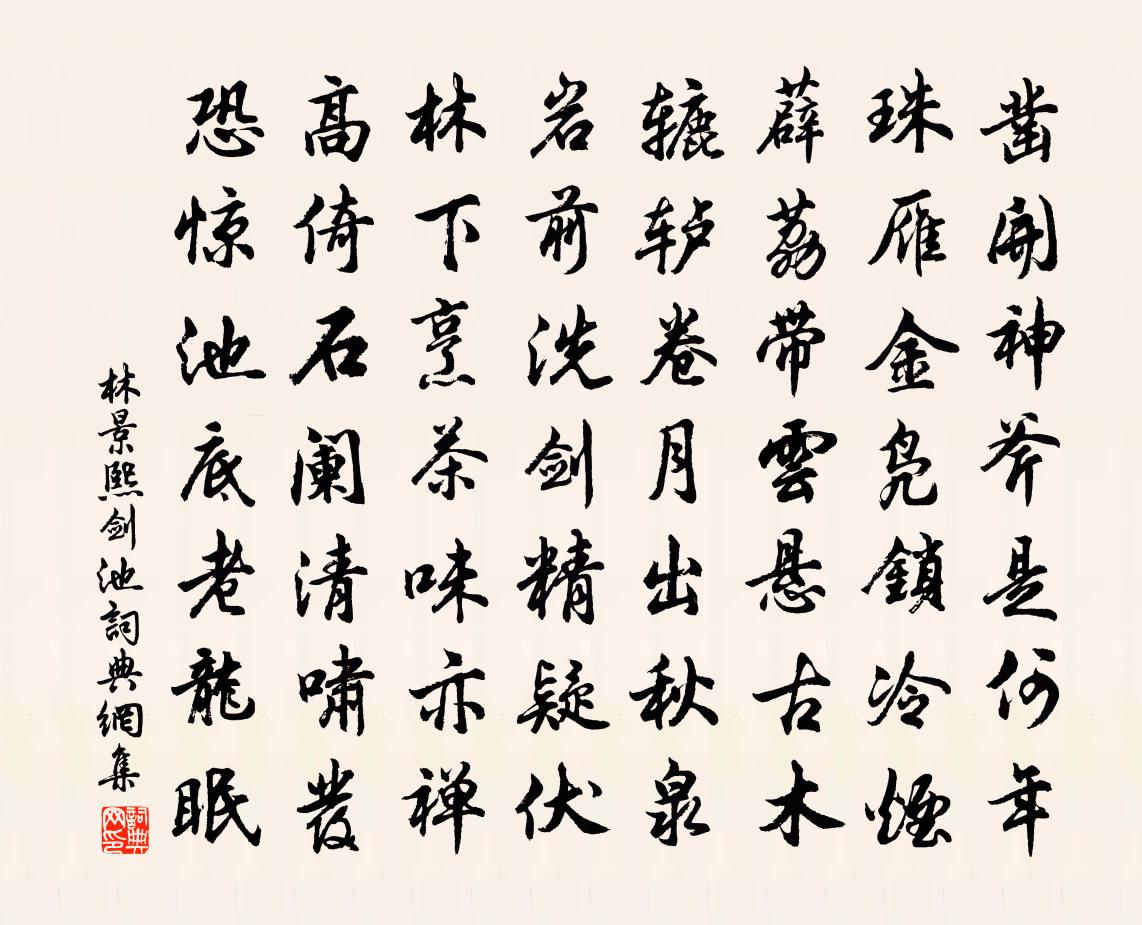 詩詞名句歷史字典書法欣賞書法字典國語詞典說文解字康熙字典古漢語字典標 題 作 者 詩 句 劍池作者:林景熙 朝代:宋代劍池原文鑿開神斧是何年,珠雁金鳧鎖冷煙。薜荔帶雲懸古木,轆轤卷月出秋泉。岩前洗劍精疑伏,林下烹茶味亦禪。高倚石闌清嘯發,恐驚池底老龍眠。詩詞問答問:劍池的作者是誰?答:林景熙問:劍池寫於哪個朝代?答:宋代林景熙劍池書法欣賞劍池書法作品詩詞推薦酬殷堯藩許渾〔唐代〕相如愧許詢,寥落向溪濱。竹馬兒猶小,荊釵婦慣貧。獨愁憂過日,多病不如人。莫怪青袍選,長安隱舊春。句趙善晤〔宋代〕天約閒雲結 * ,苦無詩酒懶登臨。挽湘潭趙知縣二首劉宰〔宋代〕念昔先君子,窮閻接寓居。幾年鶯出谷,千里雁傅書。執友嗟誰在,孤生愧久疏。臨負兩行淚,可但等鄉閭。十六夜待月溪濱風露浩然宵中不寐李洪〔宋代〕昨夜中秋月,高唐妒素娥。憑誰修玉戶,未覺減金波。練淨前溪水,銀侵左界河。浩然風露爽,通夕祗長喔。和原父揚州六題昆丘台}歐陽修〔宋代〕訪古高台半已傾,春郊誰從彩旗行。喜聞車馬人同樂,慣聽笙歌鳥不驚。有感張嵲〔宋代〕傾摧漢祚是安昌,只恐狂瀾世莫當。自古忠言寧盡用,老臣得不戒王章。皎皎吟朱岩伯〔宋代〕皎皎天心月,影落寒潭水。雖落寒潭水,照人千萬里。皎皎機上絲,忽落淤泥底。一落淤泥底,河水不可洗。願君和顏長官百詠城市朱繼芳〔宋代〕王孫公子少年游,醉里樗蒲信采投。指點某莊還博直,明朝酒醒到家求。見鶯三首白玉蟾〔宋代〕一鶯飛去一鶯啼,桃李一空春已歸。踏破蒼苔殊可惜,坐看流水拽斜暉。詠釣台潘疇〔宋代〕古屋顛岩上,荒祠落葉中。乞靈無俗駕,垂世有高風。鳥語谷相答,魚游溪若空。徘徊欲忘去,船背夕陽紅。得趙若川書因寄陸游〔宋代〕澤居路絕人不到,晨起忽傳雙鯉魚。儲淚一升悲世事,減愁三尺看君書。龍墀對策言傷直,山邑迎親計未疏。老病風鳶圖詩徐渭〔明代〕柳條搓線絮搓綿,搓夠千尋放紙鳶。消得春風多少力,帶將兒輩上青天。同州南亭陪劉侍郎送劉先輩趙嘏〔唐代〕處處雲隨晚望開,洞庭秋入管弦來。謝公待醉消離恨,莫惜臨川酒一杯。望江南(池陽道中)李綱〔宋代〕歸去客,迂騎過江鄉。茅店雞聲寒逗月,板橋人跡曉凝霜。一望楚天長。春信早,山路野梅香。映水酒帘斜揚日,望夫石陳師道〔宋代〕磧戍人何在,秋霜志不移。無言息媯怨,有淚舜娥悲。山靜雲盤髻,江空月印眉。誰將望遠意,歌作送征詩。孔府判野耘嘗宦雲南今以余瘴多病意欲休官因方回〔宋代〕萬里蠶叢國,西南出漏天。吐蕃唐徼接,越巂漢疆連。參井星躔外,岷峨雪界邊。{左牛右羊}船元下粵,劍棧忽勉繩武王生趙汝諤〔宋代〕家世才名著論衡,君今正好繼前程。門開且悟扶風業,閱市須耽洛邑經。道在虞翻應有述,學高韓愈豈無稱。聖賢鶴隴葉茵〔宋代〕一隴以鶴名,疑是終南徑。山靈無獻嘲,出處由來定。送遲赴登封丞蘇轍〔宋代〕昔我過嵩陽,秋高日重九。晨邀同行客,共舉登高酒。藤鞋生胼胝,一覽河山富。封壇土消盡,中夜捫星斗。下山酹江月/念奴嬌沈剛孫〔宋代〕我來訪古。把塵襟、都付一聲鳴櫓。笑把瑤觴波浩蕩,卻憶長鯨吞吐。坐挹高風,骨清毛冷,不作囂塵語。客星何名句推薦朝辭白帝彩雲間,千里江陵一日還。李白《早發白帝城 / 白帝下江陵》 攜來百侶曾游,憶往昔崢嶸歲月稠。 * 《沁園春·長沙》 情共天涯秋黯,朱橋鎖深巷。吳文英《解蹀躞·醉雲又兼醒雨》 酒不醉人人自醉,色不迷人人自迷。馮夢龍《警世通言·卷二十四》 我來一長嘆,知是東溪蓮。白居易《京兆府栽蓮》 余拏一小舟,擁毳衣爐火,獨往湖心亭看雪。張岱《湖心亭看雪》 對瀟瀟暮雨灑江天,一番洗清秋。柳永《八聲甘州·對瀟瀟暮雨灑江天》 海燕未來人鬥草,江梅已過柳生綿。黃昏疏雨濕鞦韆。李清照《浣溪沙·淡盪春光寒食天》 草螢有耀終非火,荷露雖團豈是珠。白居易《放言五首·其一》 白兔搗藥秋復春,嫦娥孤棲與誰鄰?李白《把酒問月·故人賈淳令予問之》