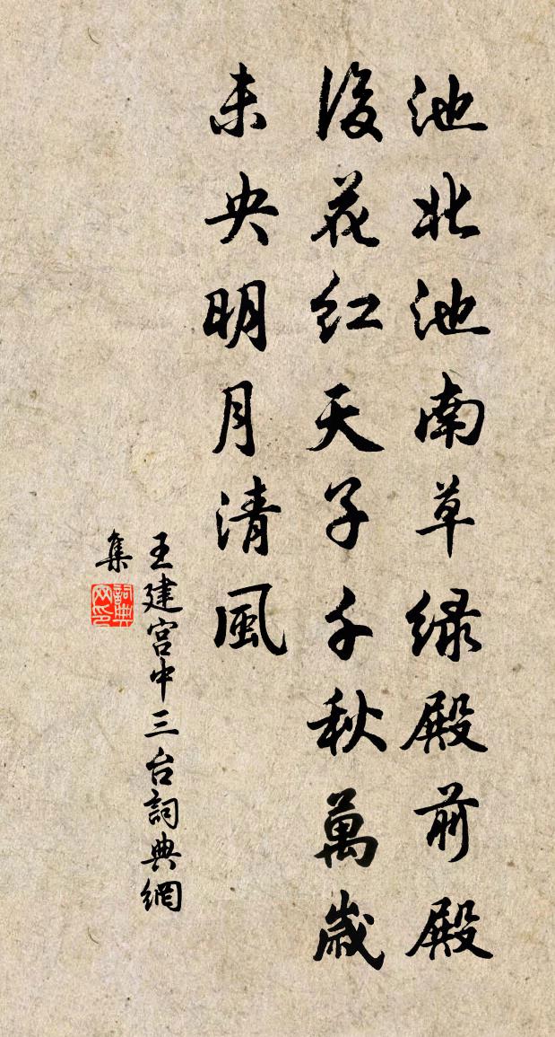 池北池南草綠,殿前殿後花紅。天子千秋萬歲,未央明月清風。