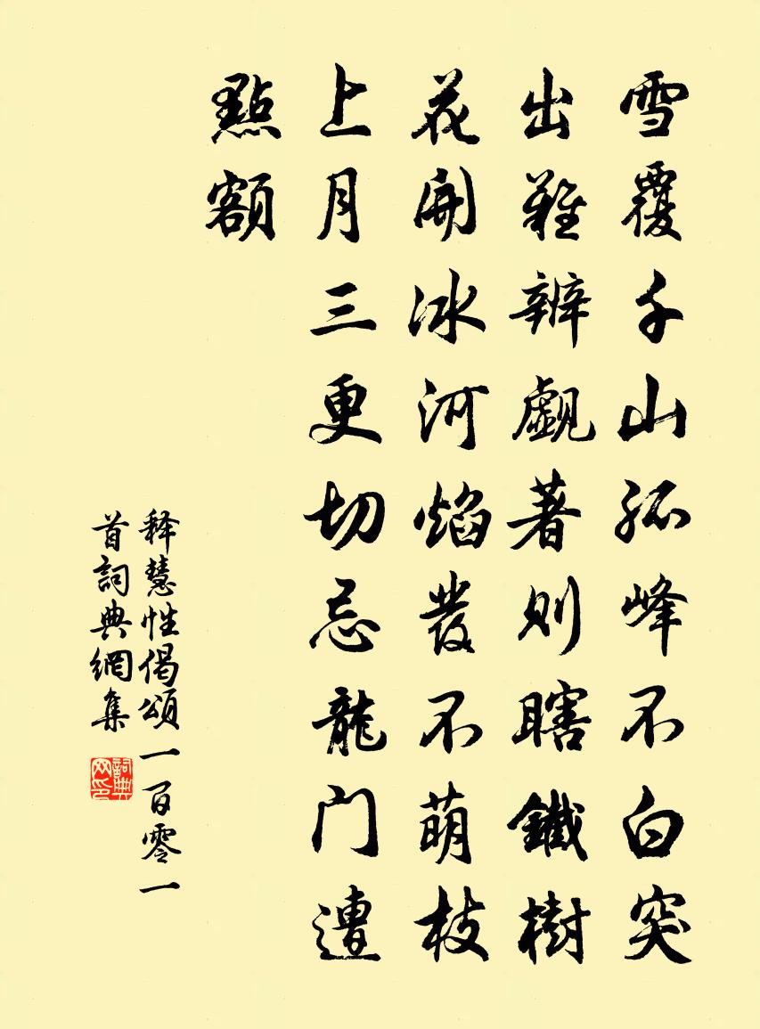- 梅花散彩向空山,雪花隨意穿簾幕。王旭《踏莎行·雪中看梅花》