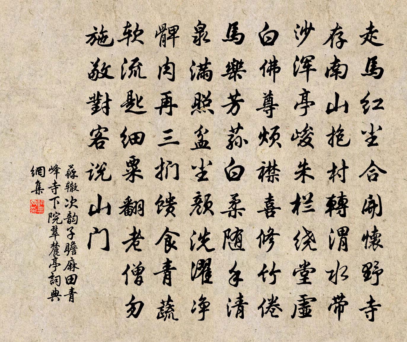 走馬紅塵合,開懷野寺存。南山抱村轉,渭水帶沙渾。