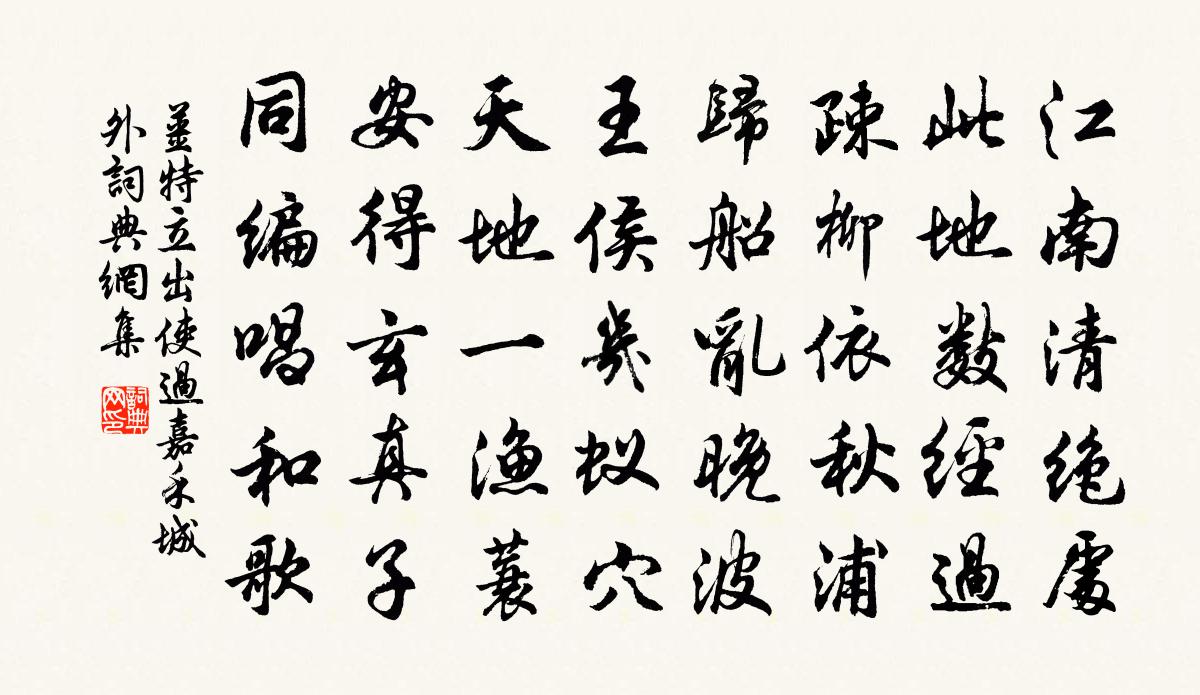 詩詞名句歷史字典書法欣賞書法字典國語詞典說文解字康熙字典古漢語字典標 題 作 者 詩 句 出使過嘉禾城外作者:姜特立 朝代:宋代出使過嘉禾城外原文江南清絕處,此地數經過。疎柳依秋浦,歸船亂晚波。王侯幾蟻穴,天地一漁蓑。安得玄真子,同編唱和歌。詩詞問答問:出使過嘉禾城外的作者是誰?答:姜特立問:出使過嘉禾城外寫於哪個朝代?答:宋代姜特立出使過嘉禾城外書法欣賞出使過嘉禾城外書法作品詩詞推薦與石壁諸友山行分得山字胡仲弓〔宋代〕藤蘿紆古徑,努力共躋攀。佛屋泉聲落,僧窗雲影閒。經殘香篆冷,杯短錦囊慳。興盡未歸去,夕陽猶在山。王和鼎石銚甚佳以詩丐之吳則禮〔宋代〕枵腹強自滿,日愛幾合陳。豆粥咄嗟辦,豈是吾曹人。故應彭亨腹,稱此病瘦身。君從東海來,便便作雲根。我有秋寄棲一貫休〔唐代〕一別一公後,相思時一吁。眼中瘡校未,般若偈持無。絕葷宋祁〔宋代〕多年臥病厭腥{左月右婁},香飯初依竺國流。宣父蒲葅真可學,鍾岏蚶蠣更無求。爐銷午篆天花泊,幾隱宵燈偈送金上人之水南釋正覺〔宋代〕里許由來懶荷擔,百草頭上何廉纖。半夜對月笑拍手,不見噴霜三腳蟾。劫空有句妙如許,公去誰余對眉語。後見聞野有飢殍感嘆舒邦佐〔宋代〕豌豆斬新綠,櫻桃爛熟紅。一年春色過,大半雨聲中。仆野傷飢殍,祈天願歲豐。有誰捐白粲,相伴減青銅。僧志月碧雲軒改為景雲軒因書二首李覯〔宋代〕長見江淹雜體詩,碧雲非是惠林詞。試言日莫佳人怨,何事高僧卻得知。恭州報恩長老宣公以四偈見別用韻為謝晁公溯〔宋代〕大地八風初不動,老夫自駕鐵船行。莫憂船上不知曉,無有木雞來報更。偈頌一百零二首釋紹曇〔宋代〕枕石安眠,山雲四屯。救不得出,浣盆浣盆。更說甚德山臨際,棒如雨點,喝似雷奔。草迷人去路,月掛客愁村。傷吳中李嘉祐〔唐代〕館娃宮中春已歸,闔閭城頭鶯已飛。復見花開人又老,橫塘寂寂柳依依。憶昔吳王在宮闕,館娃滿眼看花發。舞袖劉常簿席上盛世忠〔宋代〕近授長生券,從天上綺筵。潞公專洛日,呂望佐姬年。坐語風生舌,梳頭雪滿肩。上思耆舊用,飛詔到林泉。夢崔嘏妻詩佚名〔唐代〕莫以真留妾,從他理管弦。容華難久駐,知得幾多年。水龍吟(曾相生日)曹勛〔宋代〕海榴紅暖,圓荷翠小,榭閣薰風淺。真人撫運,雲龍相際,真賢載誕。魯國元勛,相門接踵,傳家非遠。輔中興大次石湖送炭韻贈龔養正三首陳造〔宋代〕寒谷冰崖底著身,望晨疑寢越王薪。今年未辦巡簷笑,急雪陰風肯貸春。相和歌辭當來日大難元稹〔唐代〕當來日大難行,前有坂,後有坑,大梁側,小梁傾。兩軸相絞,兩輪相撐。大牛豎,小牛橫。烏啄牛背,足跌力獰白鶴吟留鐘山覺海蘇軾〔宋代〕白鶴聲可憐,紅鶴聲可惡。白鶴招不來,紅鶴揮不去。長松受穢死,乃以紅鶴故。北山道人曰:吾何為而喜?惡者浣溪沙·二月春花厭落梅晏幾道〔宋代〕二月春花厭落梅。仙源歸路碧桃催。渭城絲雨勸離杯。歡意似雲真薄倖,客鞭搖柳正多才。鳳樓人待錦書來。登山望海四首張耒〔宋代〕江闊風煙易晚,山高草木先秋。獨倚闌乾盡日,此身與世悠悠。殘臘歐陽修〔宋代〕臘雪初銷上古台,桑郊向日彩旗開。山橫南陌城中見,春逐東風海上來。老去每驚新歲換,病多能使壯心摧。自嗟飯罷登淨遠亭楊萬里〔宋代〕今歲寒應少,冬深氣轉和。都緣徑差曲,添得步行多。柳色猶青在,霜威柰爾何。忽然雙野鴨,飛下一池波。名句推薦日暮秋煙起,蕭蕭楓樹林。戴叔倫《過三閭廟》 高館張燈酒復清,夜鍾殘月雁歸聲。高適《夜別韋司士》 記得舊時,探梅時節。老來舊事無人說。呂本中《踏莎行·雪似梅花》 亭皋木葉下。隴首秋雲飛。柳惲《搗衣詩》 反古者未必可非,循禮者未足多是也。商鞅《商君書·更法》 惜恐鏡中春。不如花草新。張先《菩薩蠻·憶郎還上層樓曲》 更傾寒食淚,欲漲冶城潮。王安石《壬辰寒食》 男兒少為客,不辨是他鄉。李流芳《黃河夜泊》 閒門向山路,深柳讀書堂。劉昚虛《闕題》 不知何處吹蘆管,一夜征人盡望鄉。李益《夜上受降城聞笛》