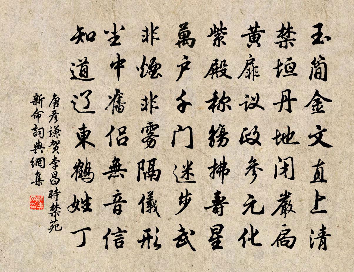 詩詞名句歷史字典書法欣賞書法字典國語詞典說文解字康熙字典古漢語字典標 題 作 者 詩 句 賀李昌時禁苑新命作者:唐彥謙 朝代:唐代賀李昌時禁苑新命原文玉簡金文直上清,禁垣丹地閉嚴扃。黃扉議政參元化,紫殿稱觴拂壽星。萬戶千門迷步武,非煙非霧隔儀形。塵中舊侶無音信,知道遼東鶴姓丁。詩詞問答問:賀李昌時禁苑新命的作者是誰?答:唐彥謙問:賀李昌時禁苑新命寫於哪個朝代?答:唐代唐彥謙賀李昌時禁苑新命書法欣賞賀李昌時禁苑新命書法作品注釋全唐詩:卷672-46詩詞推薦懷瑩上人劉應時〔宋代〕半路梅花作峭寒,懷人無地著愁酸。幽居獨得春風力,補綴林塘漸可觀。和士特栽果十首櫻桃劉子翬〔宋代〕一樹含桃火爍空,而今春獻隔離宮。只應壯士憂時淚,灑向枝頭點點紅。曉色謝宗元〔元代〕遠似煙霽近又空。非明非夜兩朦朧。一天清露洗難退。幾抹曙雲遮不窮。斷角樓台濃淡里。殘燈院落有無中。蒼茫送范漕赴召崔與之〔宋代〕棋於觀局易,藥到處方難。休戚君眉睫,安危我肺肝。別來年事晚,病起面華寒。東望強人意,天風送健翰。天津弊居蒙諸公共為成買作詩以謝邵雍〔宋代〕重謝諸公為買園,買園城裡占林泉。七千來步平流水,二十餘家爭出錢。嘉佑卜居終是僦,熙寧受券遂能專。鳳凰首尾吟邵雍〔宋代〕堯夫非是愛吟詩,詩是堯夫確論時。若以後時為失計,必將先手作知幾。三午賓客成何夢,百二山河付阿誰。弄巧清旦題採藥翁草堂溫庭筠〔唐代〕幽人尋藥徑,來自曉雲邊。衣濕術花雨,語成松嶺煙。解藤開澗戶,踏石過溪泉。林外晨光動,山昏鳥滿天。題外兄毛國器壁林季仲〔宋代〕尊酒相逢海一涯,娟娟妙月照人衣。重來時節君須記,流水桃花魚正肥。眼兒媚(代答)史達祖〔宋代〕兒家七十二鴛鴦。珠佩鎖瑤箱。期花等月,秦台吹玉,賈袖傳香。十年白玉堂前見,直是翦柔腸。將愁去也,不成次韻重九登慈恩雁塔帥漕見邀洪皓〔宋代〕秋高裘馬正輕肥,節制身兼被召時。邂逅貴人爭獻壽,逢迎嘉節競題詩。心危雁塔勞君詠,家近龍沙感我思。泛菊九懷東山高似孫〔宋代〕若有人兮山要,樂莫樂兮在薖。絜余佩兮有蘭,愜余裳兮有蘿。凌八荒兮騁望,悵山河兮悲壯。倒天漢兮濯江淮,赴蘇州酬別樂天劉禹錫〔唐代〕吳郡魚書下紫宸,長安廄吏送朱輪。二南風化承遺愛,八詠聲名躡後塵。梁氏夫妻為寄客,陸家兄弟是州民。江城西還至散關答喬補闕知之陳子昂〔唐代〕葳蕤蒼梧鳳,嘹唳白露蟬。羽翰本非匹,結交何獨全。昔君事胡馬,余得奉戎旃。攜手向沙塞,關河緬幽燕。芳歲次韻酬奚兄方岳〔宋代〕亦笑詩書記姓名,到頭為崇若為情。漢家禮樂今塵土,不欠當時魯兩生。七夕戲成二絕吳芾〔宋代〕時入三秋氣已清,節臨七夕露初零。如何老子臨風坐,也望天河牛女星。頌釋印肅〔宋代〕一心圓持種種心,信心諸境絕追尋。此中無分應難到,便好回光免陸沉。殘臘二首陸游〔宋代〕破臘春先到,微陰日易醺。鳥聲猶寂寂,木意已欣欣。雲起山分疊,風生水蹙紋。斷腸何處笛,偏向醉中聞?晚飯龜山吳則禮〔宋代〕半生藜糝只麽過,鐵作脊樑宜自強。偶煩衲子分齋缽,慚愧龜山春筍長。答崔十八白居易〔唐代〕勞將白叟比黃公,今古由來事不同。我有商山君未見,清泉白石在胸中。紹興釋奠武成王七首佚名〔宋代〕於赫烈武,光昭古今。載嚴祀事,敕畫惟欽。既潔其牲,毀諸其音。神之格思,來顧來歆。名句推薦穿花蛺蝶深深見,點水蜻蜓款款飛杜甫《曲江二首》 善處事者,但就是非可否,審定章程,而不必利於己。王永彬《圍爐夜話·第九則》 車轔轔,馬蕭蕭,行人弓箭各在腰。杜甫《兵車行》 君子不動而敬,不言而信。子思《中庸·第三十三章》 山川蕭條極邊土,胡騎憑陵雜風雨。高適《燕歌行》 白馬黃金塞,雲砂繞夢思。李白《塞下曲六首》 細看來,不是楊花,點點是離人淚。蘇軾《水龍吟·次韻章質夫楊花詞》 多少天涯未歸客,盡借籬落看秋風。唐寅《菊花》 如知其非義,斯速已矣,何待來年。孟子《孟子·滕文公章句下·第八節》 啼鶯舞燕,小橋流水飛紅。白樸《天淨沙·春》