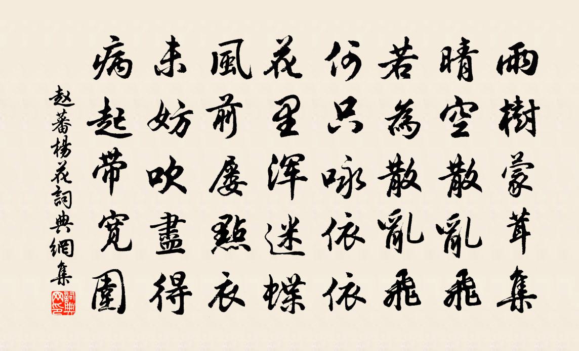 - 落盡梨花春又了。滿地殘陽,翠色和煙老。