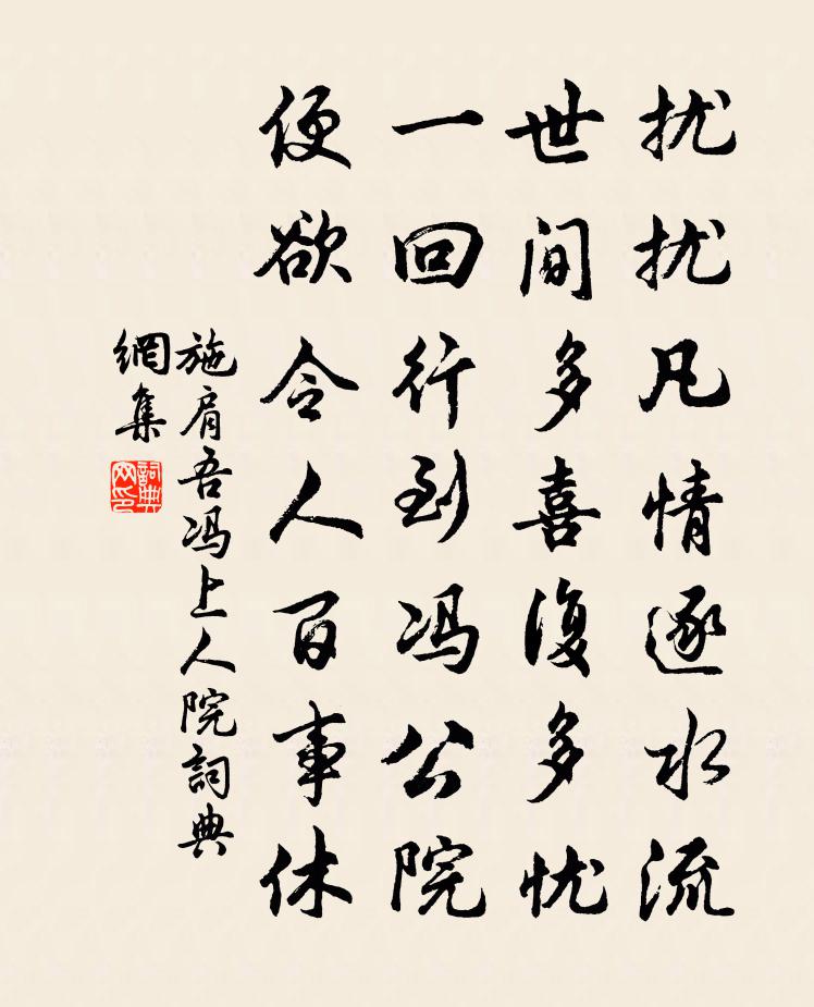 詩詞名句歷史字典書法欣賞書法字典國語詞典說文解字康熙字典古漢語字典標 題 作 者 詩 句 馮上人院作者:施肩吾 朝代:唐代馮上人院原文擾擾凡情逐水流,世間多喜復多憂。一回行到馮公院,便欲令人百事休。詩詞問答問:馮上人院的作者是誰?答:施肩吾問:馮上人院寫於哪個朝代?答:唐代問:馮上人院是什麼體裁?答:七絕施肩吾馮上人院書法欣賞馮上人院書法作品注釋全唐詩:卷494-108詩詞推薦減字木蘭花(厲萬頃生日,時久旱得雨)姚述堯〔宋代〕飛龍利見。前夜君王方錫宴。時天申聖節宴後二日。今日相逢。卻向南陽起臥龍。果為霖雨。洗盡蒼生炎夏苦。喜禮密庵禪師塔釋梵琮〔宋代〕綿里裹刀難近傍,飯中有藥出閩鄉。至今怕飲山中水,我昔曾遭蠱毒傷。近事胡仲弓〔宋代〕近事山中總不知,心清常是太平時。勿於貧後方求藥,才得閒來便賦詩。千裏白雲勞夢想,一天明有負襟期。有書春日王炎〔宋代〕小憑筍輿行稻田,麥芒桑蕾春無邊。勒迴風物未全好,小雨班班天護寒。入門烏鵲枝頭語,鴻雁好音慈母喜。車馬送陽翟張主簿之任獨孤及〔唐代〕舊聞陽翟縣,西接鳳高山。作吏同山隱,知君處劇閒。少年當效用,遠道豈辭艱。遲子揚名後,方期彩服還。浮丘道人招魂歌汪元量〔宋代〕有子有子衣裳單,皮肉凍死傷其寒。蓬空煨燼不得安,叫怒索飯飢無餐。亂離走竄千里山,荊棘蹲坐膚不完。失身村市周弼〔宋代〕細簇人家住,中分破石崖。竹門開店屋,草市夾橋街。水別東流漢,山橫北過淮。並船頻借問,同買出江柴。蝶戀花(已卯菊節得家書,欲歸未得)柴元彪〔宋代〕去年走馬章台路。送酒無人,寂寞黃花雨。又是重陽秋欲暮。西風此恨誰分付。無限歸心歸不去。卻夢佳人,約我故公子家葛秋崖〔宋代〕繡戶朱欄柳樹春,外間不識內間貧。白頭園子無支給,自種盆花賣與人。次酬楊德中劉黻〔宋代〕丹心炯炯老天知,莫問人間識者稀。孤雁過門思古盪,慈鴉滿樹憶重闈。醉因酒賤歌豐歲,寒覺衣單戀晚暉。珍重次韻答頓起二首蘇軾〔宋代〕十二東秦比漢京,去年古寺共題名。早衰怪我遽如許,苦學憐君太瘦生。茅屋擬歸田二頃,金丹終掃雪千莖。何人與洪景伯黃公度〔宋代〕快筆三江倒,宏材太室須,平生閱人久,所識似君無。嶺海非長策,乾坤賴壯圖。殷勤將壽斝,邂逅即亨衢。老驥落花十絕馮時行〔宋代〕幽棲竹路滿蒼苔,花擁柴扉午未開。可是春風料理得,時吹一片過窗來。李衛公贊陳長方〔宋代〕虬須天人世不有,兩河股裂群兇手。健兒誰復知大家,養子朝朝飲牛酒。廟堂坐論贊皇公,三鎮便同牛馬走。濯手紹興十四年奉上徽宗冊實三首真宗〔宋代〕惟精惟一,乃照乃神。鴻我克揚,茂寮新宣。如禹之功,如堯之仁。孝思永慕,用詔無垠。乘公橋作林逋〔宋代〕晚峰橫碧樹梢紅,數榜漁罾水影中。憶得江南曾看著,鉅然名畫在屏風。四字令(訪友不遇)周密〔宋代〕殘月半籬。殘雪半枝。孤吟自款柴扉。聽猿啼鳥啼。人歸未歸。無詩有詩。水邊佇立多時。問梅花便知。與談命鄭柯山汪應辰〔宋代〕柯山落魄一仙翁,二十八宿羅胸中。學術該通明若鑒,襟期豁達氣如虹。醺醺痛飲一樓月,落落高談千古風。一本句蘇紳〔宋代〕一篇此日摛鴻藻,五色它年浴鳳文。呈晦庵二首趙蕃〔宋代〕不上龍門五過秋,袖詩還是覓扁舟。胡然貧病只如昔,聽爾行藏隨所由。未厭室人能我適,故防知己作公羞。孟郊名句推薦雨後輕寒猶未放。春愁酒病成惆悵。歐陽修《蝶戀花·面旋落花風蕩漾》 投宿駸駸征騎,飛雪滿孤村。孔夷《南浦·旅懷》 正身直行,眾邪自息。劉安及其門客《淮南子·繆稱訓》 松月生夜涼,風泉滿清聽。孟浩然《宿業師山房期丁大不至 / 宿業師山房待丁大不至》 吃著碗裡看著鍋里曹雪芹《紅樓夢·第十六回》 坐上別愁君未見,歸來欲斷無腸。蘇軾《臨江仙·送王緘》 春雨樓頭尺八簫,何時歸看浙江潮?蘇曼殊《本事詩十首·選二》 無由持一碗,寄與愛茶人。白居易《山泉煎茶有懷》 與人善言,暖於布帛;傷人之言,深於矛戟。荀子《荀子·榮辱》 記得那年花下,深夜,初識謝娘時。韋莊《荷葉杯·記得那年花下》
