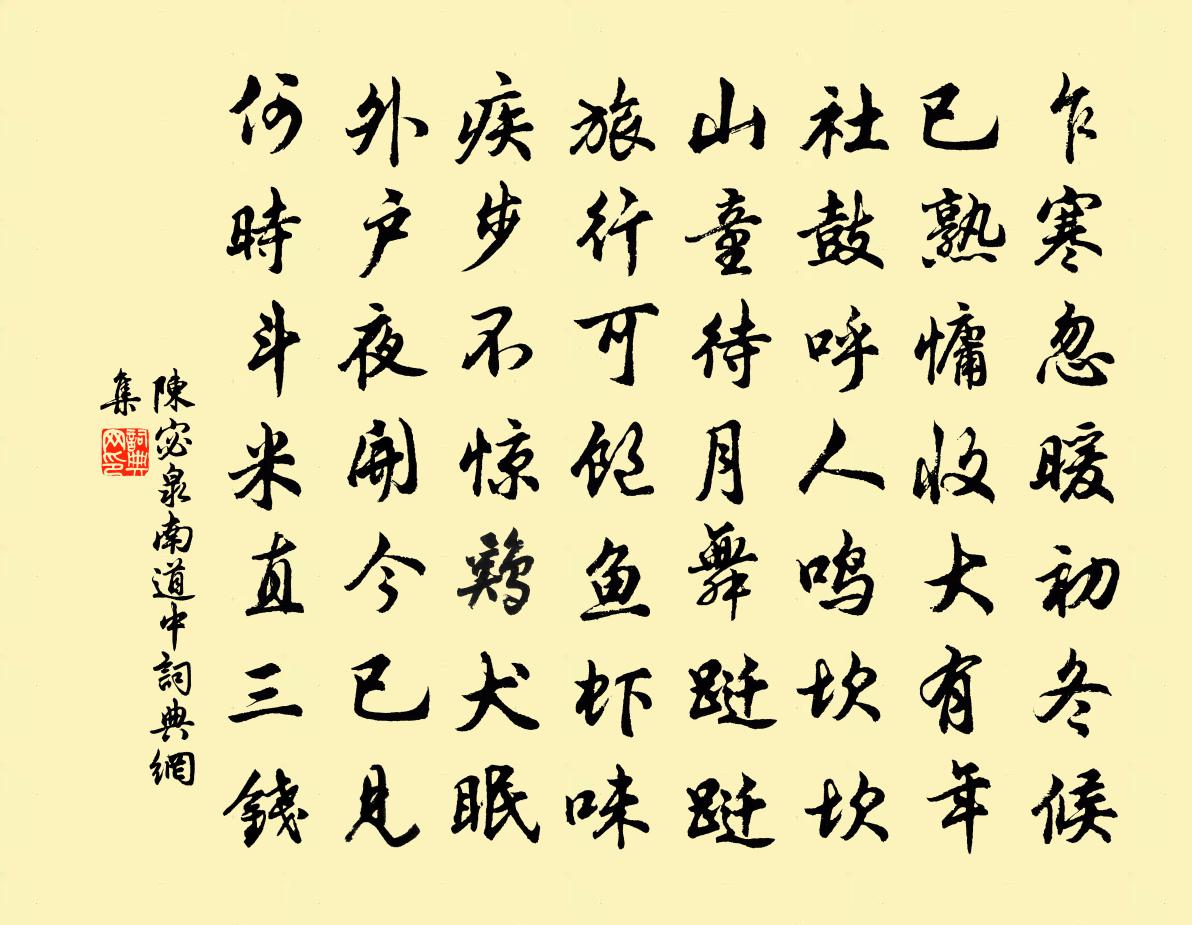 詩詞名句歷史字典書法欣賞書法字典國語詞典說文解字康熙字典古漢語字典標 題 作 者 詩 句 泉南道中作者:陳宓 朝代:宋代泉南道中原文乍寒忽暖初冬候,已熟慵收大有年。社鼓呼人鳴坎坎,山童待月舞躚躚。旅行可飽魚蝦味,疾步不驚雞犬眠。外戶夜開今已見,何時斗米直三錢。詩詞問答問:泉南道中的作者是誰?答:陳宓問:泉南道中寫於哪個朝代?答:宋代陳宓泉南道中書法欣賞泉南道中書法作品詩詞推薦杜無逸留別次韻三首傅察〔宋代〕一官塞北似飄蓬,邂逅威嚴霽弱翁。他日若陪林下客,亦能把釣等秋風。謝汪以南借書惠米方回〔宋代〕政是黃梅欲近時,山城雲滃雨垂垂。斷橋沒碓驚新漲,濕藁泥蔬續晚炊。乞米已慚顏氏帖,賣書還笑杜陵詩。廣文宿高唐州文天祥〔宋代〕早發東阿縣,暮宿高唐州。哲人達幾微,志士懷隱憂。山河已歷歷,天地空悠悠。孤館一夜宿,北風吹白頭。弔古戰場文李華〔唐代〕浩浩乎,平沙無垠,夐不見人。河水縈帶,群山糾紛。黯兮慘悴,風悲日曛。蓬斷草枯,凜若霜晨。鳥飛不下,獸次韻梅山弟惠雞臡陳著〔宋代〕手制雞臡味可知,雨書走餉慰窮飢。可能夜去聞聲舞,卻效早鳴逃難鄧。伴宋讀書知已久,為由為黍愧非宜。從今道上人房老梅翁卷〔宋代〕孤高不受埃,老怪昔誰栽。仙魄乘槎去,龍身帶雪來。數枝寒照水,一點淨沾苔。頭白狂詩客,花時屢往回。顏延年三月三日率爾成詩前詩重韻太率可笑洪咨夔〔宋代〕過盡風波灩澦堆,一閒無夢到宮槐。迎頭寒食清明近,入手櫻桃芍藥來。率爾成詩聊意達,快然自足亦顏開。期君寄空上人曹勛〔宋代〕華頂峰頭空侍者,家在全閩九峰下。後山妙香今始聞,西江一口元非假。可但枯木已陽艷,更喜淮碑仍續雅。天風游南園次傍花隨柳句熊禾〔宋代〕憂世心衰且樂天,不妨飛詠此雲川。天高地下有千載,物換人非無百年。關東獻兵部劉員外吳融〔唐代〕昨夜星辰動,仙郎近漢關。玳筵吟雪罷,錦帳押春還。已到青雲上,應棲絳圃間。臨邛有詞賦,一為奏天顏。雜詩王令〔宋代〕毿毿晚春樹,上下聚百蟲。不有口似躉,則生尾如蜂。設不二者然,亦徒生無庸。清陰不可居,歲晚還秋風。和晏相公湖上遇雨韓維〔宋代〕公堂日多暇,薄暮游清池。孤雲從西來,若與雲蓋期。急雨亂荷芰,紅綠左右披。沙禽帶濕起,簇族守前坻。煙樹句釋惠崇〔宋代〕古路隨崗起,秋帆轉浦斜。寄星婺適莊居士釋智愚〔宋代〕稽首毗耶金粟身,靜中多見鬧中人。卻將不二門頭事,時與虛空細講論。雜詩李復〔宋代〕沙虛路傍泉,江通石上井。泉挹淺沙黃,井汲深江冷。六月火雲生,旱烏炎午影。煩心欲清滌,呼兒問修綆。和趙章泉見寄二首劉宰〔宋代〕平生錯里識曹劉,眼底誰為第一流。錦里正慶推老杜,魯人亦解說東丘。騎驢頗忘推敲否,上馬還能矍鑠不。此去句洪天錫〔宋代〕平生要識瓊崖面,到此當堅鐵石心。次邦憲宣德紅梅詩韻吳頤〔宋代〕留情賦詠盡聞人,似得吳姬為執巾。蝶翅稍應容辨色,桃腮無復敢嬌春。似嫌素艷同姑射,著意新妝學太真。栽近又示徒釋原妙〔宋代〕工夫果的有真疑,動靜寒暄總不知。枕子驀然開口笑,缽盂{左足右孛}跳上須彌。山行陸游〔宋代〕閒人日日得閒行,況值今朝小雨晴。水淺游魚渾可數,山深藥草半無名。臨溪旋喚罾船渡,過寺初聞浴鼓聲。小醉名句推薦天上人間何處去,舊歡新夢覺來時,黃昏微雨畫簾垂。張曙《浣溪沙·枕障薰爐隔繡帷》 凡事皆須務本。國以人為本,人以衣食為本吳兢《貞觀政要·卷八·論務農》 曉雞驚樹雪,寒鶩守冰池。李商隱《幽居冬暮》 尊賢使能,俊傑在位。孟子《孟子·公孫丑章句上·第五節》 至今窺牧馬,不敢過臨洮。西鄙人《哥舒歌》 紅葉晚蕭蕭,長亭酒一瓢。許渾《秋日赴闕題潼關驛樓 / 行次潼關逢魏扶東歸》 風雨滿城,何幸兩重陽之近;文天祥《回董提舉中秋請宴啟》 謫仙何處,無人伴我白螺杯。黃庭堅《水調歌頭·遊覽》 黃鶯不語東風起,深閉朱門伴舞腰。溫庭筠《楊柳八首·其三》 行行重行行,與君生別離。佚名《行行重行行》