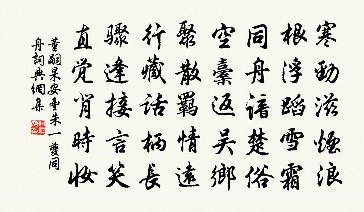 詩詞名句歷史字典書法欣賞書法字典國語詞典說文解字康熙字典古漢語字典標 題 作 者 詩 句 安豐朱一夔同舟作者:董嗣杲 朝代:宋代安豐朱一夔同舟原文寒勁滋煙浪,根浮蹈雪霜。同舟諳楚俗,空橐返吳鄉。聚散羈情遠,行藏話柄長。驟逢接言笑,直覺背時妝。詩詞問答問:安豐朱一夔同舟的作者是誰?答:董嗣杲問:安豐朱一夔同舟寫於哪個朝代?答:宋代董嗣杲安豐朱一夔同舟書法欣賞安豐朱一夔同舟書法作品詩詞推薦清平樂·春歸何處黃庭堅〔宋代〕春歸何處。寂寞無行路。若有人知春去處。喚取歸來同住。春無蹤跡誰知。除非問取黃鸝。百囀無人能解,因風飛山下水周濆〔唐代〕背雲沖石出深山,淺碧冷冷一帶寒。不獨有聲流出此,會歸滄海助波瀾。七夕蒲壽宬〔宋代〕盈盈一水望牽牛,欲渡銀河不自由。月照纖纖織素手,為君裁出翠雲裘。夢玉人引范成大〔宋代〕送行人去,猶追路、再相覓。天末交情,長是合堂同席。從此尊前,便頓然少個,江南羈客。不忍匆匆,少駐船梅送才上人還雪竇寄達觀禪師梅堯臣〔宋代〕春雪滿蓑笠,海邊先燕歸。千林新改葉,百衲舊來衣。溪水從何至,山雲自解飛。報言岩下客,齋缽筍應肥。點絳唇佚名〔宋代〕枕簟冰清,漸覺秋涼也。東皋十首晁補之〔宋代〕郭外朝陽一巷斜,青槐廳事帶丘麻。路逢扶轡雙童問,不是城東太尉家。楊伯子見訪惠示兩詩因次韻並呈誠齋張鎡〔宋代〕自作詩中祖,翁難子更難。波瀾千偈闊,光焰九霄寒。覓著由來遠,成時自好看。頭頭見成字,誰道要吟安。送同幕劉正父召試施樞〔宋代〕合是冰壺實露寒,果然筆札對金鑾。雖雲經世談何易,謾道憂時事轉難。正氣必能回壞證,中流當與障狂瀾。孰知題石上玉簪花袁說友〔宋代〕翠鈿瓊葩別樣芳,涼風微雨淡梳妝。姮娥夜半朝天闕,應有遺簪墜帝旁。句張徽〔宋代〕雲蒸洞穴秋成雨,泉落庭除夏結冰。次胡餘學同年四首曹涇〔宋代〕力田元不怵凶飢,瘠者為誰誰是肥。但得高堂翁媼健,定知奕世子孫宜。追風騏驟仍不蹶,覽德鸞鳳棲或飛。有酒挽故知容州朝請陶公章二首易中行〔宋代〕顧予生最後,相去又臨川。欠識先生面,幸親令子賢。典型端有自,衣缽豈無傳。德以君家好,清修一節堅。東湖湯餅後進翁展墓飲嵩山踏雨泳歸在行相繼張埴〔宋代〕諸老襟期三十年,看花杖屨又棲禪。春風不斷期文意,噓拂衣冠著一邊。浣溪沙姚述堯〔宋代〕與客相從謁謝公。芝田絳節擁仙翁。數枝桃杏斗香紅。醉眼斜拖春水綠,黛眉低拂遠山濃。此情都在酒杯中。洞仙歌(范丞相夫人生日)王之望〔宋代〕玉樓玄圃,舊是神仙伴。鳴佩時朝紫皇殿。種蟠桃成樹,碧柰開花,著子滿,金母盤中屢獻。飄然乘彩鳳,東望蓬紀恩詩姜特立〔宋代〕百首清詩夜上,九重溫詔晨頒。自古封侯賜璧,慷慨只立談間。春夜雪再用韻十首楊公遠〔宋代〕東風怒撼樹梢鳴,凍住頑雲黯不明。兀坐爐邊閒側耳,春蟲撩亂撲窗聲。冬行西圃溪上宋庠〔宋代〕故柳樊官圃,新禾上野場。晚煙林外紫,昏日水中光。菊晚香猶在,橙寒味不長。蕭然成隱趣,況復近山陽。元宵燈謎曹雪芹〔清代〕南面而望,北面而朝。象憂亦憂,象喜亦喜。——打一用物名句推薦常記溪亭日暮,沉醉不知歸路。李清照《如夢令·常記溪亭日暮》 傍鄰聞者多嘆息,遠客思鄉皆淚垂。李頎《聽安萬善吹觱篥歌》 提籠忘采葉,昨夜夢漁陽。張仲素《春閨思》 雨停荷芰逗濃香,岸邊蟬噪垂楊。閻選《臨江仙·雨停荷芰逗濃香》 布被秋宵夢覺,眼前萬里江山。辛棄疾《清平樂·獨宿博山王氏庵》 山色遙連秦樹晚,砧聲近報漢宮秋。韓翃《同題仙遊觀》 怎不思量,除夢裡、有時曾去趙佶《宴山亭·北行見杏花》 故仁莫大於愛人,智莫大於知人。文子《文子·卷七·微明》 蒼蒼竹林寺,杳杳鐘聲晚。劉長卿《送靈澈上人》 置將不善,壹敗塗地司馬遷《史記·高祖本紀》