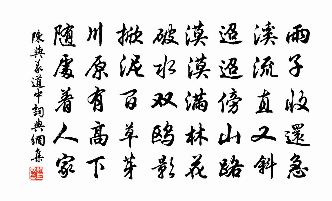 詩詞名句歷史字典書法欣賞書法字典國語詞典說文解字康熙字典古漢語字典標 題 作 者 詩 句 道中作者:陳與義 朝代:宋代道中原文雨子收還急,溪流直又斜。迢迢傍山路,漠漠滿林花。破水雙鷗影,掀泥百草芽。川原有高下,隨處著人家。詩詞問答問:道中的作者是誰?答:陳與義問:道中寫於哪個朝代?答:宋代問:陳與義的名句有哪些?答:陳與義名句大全陳與義道中書法欣賞道中書法作品詩詞推薦奉和月夜觀星應令虞世南〔唐代〕早秋炎景暮,初弦月彩新。清風滌暑氣,零露淨囂塵。薄霧銷輕縠,鮮雲卷夕鱗。休光灼前曜,瑞彩接重輪。緣情獻薛僕射秦系〔唐代〕由來那敢議輕肥,散發行歌自採薇。逋客未能忘野興,辟書翻遣脫荷衣。家中匹婦空相笑,池上群鷗盡欲飛。更乞相和歌辭。苦哉遠征人鮑溶〔唐代〕征人歌古曲,攜手上河梁。李陵死別處,杳杳玄冥鄉。憶昔從此路,連年征鬼方。久行迷漢歷,三洗氈衣裳。百戰縣齋十詠古植槐寧參〔宋代〕誰知深固久,根怪蟄龍形。自著三冬市,空懷八命庭。餘清蟬始噪,茂綠雨初經。未便慚群木,猶憐桂有馨。和持國石蘚梅堯臣〔宋代〕石根雲常蒸,老蘚密於毯。濕翠連澗陰,淨綠繞岩坎。不異泉上芹,丰茸猶可擥。安知山中客,遠寄趣已淡。明上座贊釋心月〔宋代〕大庾嶺頭提不起,本來面目尚埃塵。南枝不放春訊息,也是茫茫漏網人。寄仗錫平老借用其聽琴詩韻陸游〔宋代〕放翁久矣無此客,闖戶兒童皆動色。寒泉不食人喝死,素綆銀瓶我心惻。千金易得一士難,晚途淹泊眼愈寒。豈知亂山曾鞏〔宋代〕亂山深處轉山多,此地棲身奈遠何。莫問吾親在何處,舉頭東岸是新羅。清平樂 發漢兒村題壁納蘭性德〔清代〕參橫月落,客緒從誰托。望里家山雲漠漠,似有紅樓一角。不如意事年年,消磨絕塞風煙。輸與五陵公子,此時夢庚辰歲正月十二日天門冬酒熟予自漉之且漉且蘇軾〔宋代〕自撥床頭一瓮雲,幽人先已醉濃芬。天門冬熟新年喜,曲米春香並舍聞。菜圃漸疏花漠漠,竹扉斜掩雨紛紛。擁裘靈芝寺避暑因攜茶具汎湖共成十絕張鎡〔宋代〕高峰南北兩浮圖,桂隱相看四載余。休怪出關猶從我,有詩處處得儂居。燕子樓文天祥〔宋代〕自別張公子,嬋娟不下樓。遂令樓上燕,百歲稱風流。我游彭城門,來吊楚王闕。問樓在何處,城東草如雪。蛾眉陪劉仲馮登城樓吳則禮〔宋代〕秋老歲忽晚,登臨清興賒。孤鴻鳴宴幾,落日在高牙。木脫戍樓寂,雲低寒水斜。扁舟與倦客,相望各天涯。近乏筆托二張求之於市殊不堪也作長句以資一趙蕃〔宋代〕詩老作詩窮欲死,序詩乃得歐陽氏。序言人窮詩乃工,此語不疑如信史。少陵流落白也竄,郊島摧埋終不起。是知客中春思李中〔唐代〕又聽黃鳥綿蠻,目斷家鄉未還。春水引將客夢,悠悠繞遍關山。瑤台聚八仙/新雁過妝樓張炎〔宋代〕老圃堪嗟。深夜雨、紫英猶傲霜華。暖宿籬根,飛去想怯寒沙。採摘浮杯如戲水,晚香淡似夜來些。背風斜。翠苔題齋壁陸游〔宋代〕稽山千載翠依然,著我山河一釣船。瓜蔓水平芳草岸,魚鱗雲親夕陽天。出從父老觀秧馬,歸伴兒童放紙鳶。君看李仲鎮懶窠韓元吉〔宋代〕我帶天下帶懶,自謂帶世莫雙。朅來官中都,懶極濟以憃。有如千黑魚,東西轉橋矼。又如橐駝臥,厭逐群吠尨。立春七首劉克莊〔宋代〕存五千篇吟筆老,加三百戶贊書新。官分彩勝簪華發,僧送烏薪暖曲身。讀仙書張鎡〔宋代〕飛樓半天真人居,玉幢金蕤龍牙輿。層門十丈擁翠樹,枝磨有聲作靈語。邪劣未除嗟異路,紫雲翻袍兩儀舞,赤巾名句推薦獨有宦遊人,偏驚物候新。杜審言《和晉陵陸丞早春遊望》 故人遠,問誰搖玉佩,檐底鈴聲。蔣捷《聲聲慢·秋聲》 嗜欲不能勞其目,淫邪不能惑其心佚名《黃帝內經·上古天真論》 風回雲斷雨初晴,返照湖邊暖復明。白居易《南湖早春》 五月雖熱麥風清,檐頭索索繰車鳴。王建《田家行》 高岸為谷,深谷為陵。佚名《十月之交》 可惜流年,憂愁風雨,樹猶如此!辛棄疾《水龍吟·登建康賞心亭》 天地玄黃,宇宙洪荒。周興嗣《千字文·全文》 疊嶂西馳,萬馬迴旋,眾山欲東。辛棄疾《沁園春·靈山齋庵賦時築偃湖未成》 適與野情愜,千山高復低梅堯臣《魯山山行》