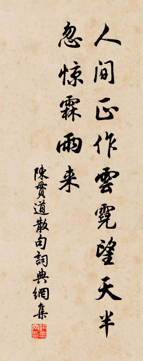 詩詞名句歷史字典書法欣賞書法字典國語詞典說文解字康熙字典古漢語字典標 題 作 者 詩 句 句作者:陳貫道 朝代:宋代句原文人間正作雲霓望,天半忽驚霖雨來。詩詞問答問:句的作者是誰?答:陳貫道問:句寫於哪個朝代?答:宋代陳貫道句書法欣賞句書法作品詩詞推薦試胡夢傳筆二首曾豐〔宋代〕用從書契到於今,萬世功名一洗心。甘與墨卿絕交後,管城蕭散退藏深。相見歡·落花如夢淒迷納蘭性德〔清代〕落花如夢淒迷,麝煙微,又是夕陽潛下小樓西。愁無限,消瘦盡,有誰知?閒教玉籠鸚鵡念郎詩。題李提舉心遠軒方回〔宋代〕心遠淵明擬問之,悠然身世見山時。強名真意元無物,緣底忘言更有詩。宇宙襟懷千斛酒,王侯勳業一枰棋。古來題齊宮王珪〔唐代〕鄰雞未動曉驂催,又向錄台飲福杯。自笑治聾知不足,明年強健更重來。王詵都尉寶繪堂詞蘇轍〔宋代〕侯家玉食繡羅裳,彈絲吹竹喧洞房。哀歌妙舞奉清觴,白日一醉萬事忘。百年將種存慨慷,西取庸蜀踐戎羌。戰袍風雨縱橫至晁說之〔宋代〕風雨縱橫至,此非淵明廬。勉哉風雨操,人品有賢愚。彼方適雲旗,我切畏泥塗。淒淒向深夜,何處識斗樞。再用前韻李彌遜〔宋代〕半生來去隔年巢,垂老朝昏一把茅。白酒黃雞時喚客,碧梧翠竹舊論交。身閒野雁無行跡,妄盡霜林只戰梢,賸欲徐州送丘侍御之越皇甫冉〔唐代〕時鳥催春色,離人惜歲華。遠山隨擁傳,芳草引還家。北固潮當闊,西陵路稍斜。縱令寒食過,猶有鏡中花。閒居秋日書事文同〔宋代〕秋雨晚蕭蕭,端居閒寂寥。雀飢爭配穗,蟬病落寒條。雲過茶煙沒,風歸硯水搖。惟當{言左右尼}圖史,閒日底清明日送鄧芮還鄉(一作戴叔倫詩)方乾〔唐代〕鐘鼓喧離室,車徒促夜裝。曉榆新變火,輕柳暗飛霜。轉鏡看華發,傳杯話故鄉。每嫌兒女淚,今日自沾裳。九月晦日作陸游〔宋代〕錦城誰與寄音塵?望斷秋江六六鱗。正使傾家供麴孽,定知不解醉愁人。次韻子瞻感舊蘇轍〔宋代〕還朝正三伏,一再趨未央。久從江海游,苦此劍佩長。夢中驚和璞,起坐憐老房。為我忝丞轄,置身願並涼。此心湖上筍盛出戲作長句陸游〔宋代〕戢戢穿苔玳瑁簪,按行日夜待成林。養渠百尺乾霄氣,見我平生及物心。剩插藩籬憂玉折,豫期風雨聽龍吟。明年山行入涇州王昌齡〔唐代〕倦此山路長,停驂問賓御。林巒信回惑,白日落何處。徙倚望長風,滔滔引歸慮。微雨隨雲收,蒙蒙傍山去。西臨極目亭陳塏〔宋代〕誰知極目名亭意,不在登臨與品題。天地兩間同汗漫,江淮一水自東西。驚棲何日能歸雁,靈異當年任照犀。萬境次韻孔武仲學士見贈蘇轍〔宋代〕羨君眈讀書,日夜論今古。雖復在家人,不見釋手處。意求五車盡,未惜雙目苦。蓬萊倚宵漢,簡冊充棟宇。學成詠史詩銅雀台胡曾〔唐代〕魏武龍輿逐逝波,高台空按望陵歌。遏雲聲絕悲風起,翻向樽前泣翠娥。題崔駙馬林亭朱慶餘〔唐代〕選居幽近御街東,易得詩人聚會同。白練鳥飛深竹里,朱弦琴在亂書中。亭開山色當高枕,樓靜簫聲落遠風。何事月下觀梅寄蒲大受郭印〔宋代〕東君嚴裝行駕車,天遣此花為前驅。粉苞五出絳蠟趺,犯寒獨逞冰雪膚。幽園邂逅疑仙姝,香飈馥馥浮襟裾。天邊畫工棄市葛洪〔魏晉〕元帝後宮既多,不得常見,乃使畫工圖形,案圖召幸之。諸宮人皆賂畫工,多者十萬,少者亦不減五萬。獨王嬙不名句推薦為善則流芳百世,為惡則遺臭萬年。程登吉《幼學瓊林·卷三·人事》 失天下也,失其民也;失其民者,失其心也。孟子《孟子·離婁章句上·第九節》 況復煩促倦,激烈思時康。杜甫《夏夜嘆》 春風江上路,不覺到君家高啟《尋胡隱君》 獨立小橋風滿袖,平林新月人歸後。馮延巳《鵲踏枝·誰道閒情拋擲久》 若非群玉山頭見,會向瑤台月下逢李白《清平調·其一》 死者不可再生,用法務在寬簡。吳兢《貞觀政要·卷八·論刑法》 出其東門,有女如雲。佚名《出其東門》 治則衍及百姓,亂則不足及王公。荀子《荀子·君道》 黃河水繞漢宮牆,河上秋風雁幾行。李夢陽《秋望》