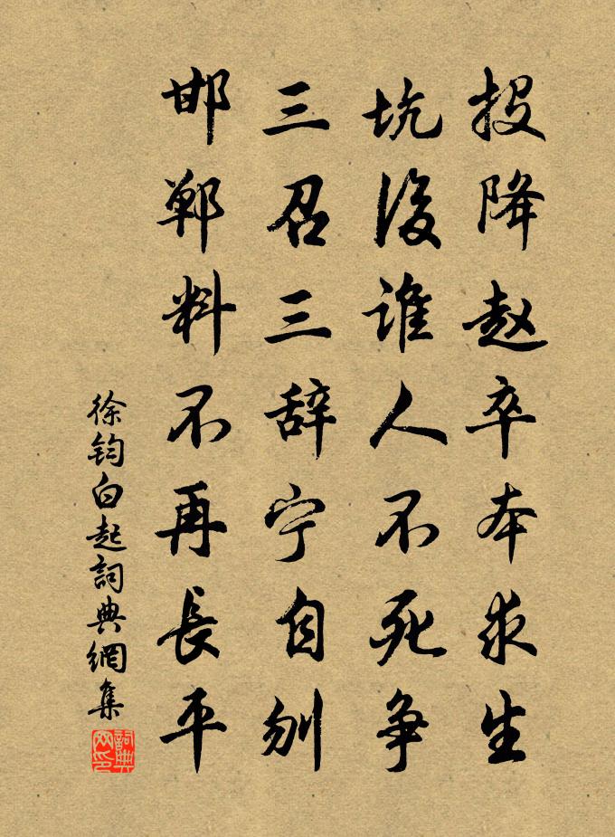 詩詞名句歷史字典書法欣賞書法字典國語詞典說文解字康熙字典古漢語字典標 題 作 者 詩 句 白起作者:徐鈞 朝代:宋代白起原文投降趙卒本求生,坑後誰人不死爭。三召三辭寧自刎,邯鄲料不再長平。詩詞問答問:白起的作者是誰?答:徐鈞問:白起寫於哪個朝代?答:宋代徐鈞白起書法欣賞白起書法作品詩詞推薦送客之潞府韓翃〔唐代〕官柳青青匹馬嘶,迴風暮雨入銅鞮。佳期別在春山里,應是人參五葉齊。農家歌陸游〔宋代〕村東買牛犢,舍北作牛屋。飯牛三更起,夜寐不敢熟。茫茫陂水白,纖纖稻秧綠。二月鳴搏黍,三月號布榖。為農睦州張伯玉〔宋代〕千家樓閣麗朝暉,人到於今說釣磯。雨後數峰驕欲斗,春來兩港活如飛。高吟多謝沈家令,中酒長憐杜紫微。更愛滿江紅(周監務生日,妻善鼓琴)李漳〔宋代〕雨歇前林,薰風度、琴聲清淑。綺窗迥、張眉初掃,弄弦鳴玉。三疊瑤池仙侶宴,九江鶴唳清江曲。政伯鸞、此日暮年即事姜特立〔宋代〕八十衰翁如小兒,愛餐梨栗作兒嬉。有時淡飲三杯酒,無事閒吟兩首詩。還丹卻老吾不知,頭童齒豁一聽之。但願景德以後祀五方帝十六首佚名〔宋代〕象分離位,德配炎精。景風協律,化神含生。百嘉茂育,仍順高明。神無常享,享於克誠。游靈山寺劉孝孫〔唐代〕吾王游勝地,驂駕歷祗園。臨風畫角憤,耀日采旗翻。永懷筌了義,寂念啟玄門。深溪窮地脈,高嶂接雲根。信美採蓮曲·秋江岸邊蓮子多張籍〔唐代〕秋江岸邊蓮子多,採蓮女兒憑船歌。青房圓實齊戢戢,爭前競折蕩漾波。試牽綠莖下尋藕,斷處絲多刺傷手。白練臨江仙張炎〔宋代〕憶得沈香歌斷後,深宮客夢迢遙。研池殘墨濺花妖。青山人獨自,早不侶漁樵。石壁蒼寒巾尚掛,松風頂上飄飄。銷夏灣范成大〔宋代〕蓼磯楓渚故離宮,一曲清漣九里宮。縱有暑光無著處,青山環水水浮空。進德陸游〔宋代〕進德工夫在日新,正如更歷自知津。迷時誤認毒為藥,定後始知天勝人。四壁不妨身落魄,萬夫誰敵膽輪囷?遺經浣溪沙晏幾道〔宋代〕浦口蓮香夜不收,水邊風裡欲生秋。棹歌聲細不驚鷗。涼月送歸思往事,落英飄去起新愁。可堪題葉寄東樓。次韻子瞻贈金山寶覺大師秦觀〔宋代〕雲峰一變隔炎涼,猶喜重來飯積香。宿鳥水乾迎曉鬧,亂帆天際受風忙。青鞋踏雨尋幽徑,朱火籠紗語上方。珍重叔韶弟上連桂堂牌會群從樓鑰〔宋代〕我家簪紱百餘年,書種子今幸有傳。折桂時能取黃牒,肯堂賴子挹青氈,一新扁榜照華屋,共集尊罍招眾賢。須信送費秀才歸衡州錢起〔唐代〕南望瀟湘渚,詞人遠憶家。客心隨楚水,歸棹宿江花。不畏心期阻,惟愁面會賒。雲天有飛翼,方寸佇瑤華。臨江仙(壽六十二)彭子翔〔宋代〕佛說波斯王此歲,衰顏羞見河流此首楞嚴。翁今丹臉發光浮。毗盧金 * ,爛熳菊花秋。七個明朝方九日,年年稅賀新郎(三用韻寄舊宮怨)何夢桂〔宋代〕更靜鍾初定。卷珠簾、人人獨立,怨懷難忍。欲撥金猊添沉水,病力厭厭不任。任蝶粉、蜂黃消盡。亭北海棠還開秋日偶書趙師秀〔宋代〕官事何曾曉,閒名苦要簽。大書公吏恐,直語眾人嫌。俸少貧如故,醫慵病卻添。秋風牆下菊,相對憶陶潛。雲隱李季可輓詩二首曹彥約〔宋代〕當年棋酒漫追攀,幕府承平折書閒。帥事卻來兵革後,官身唯冗簿書間。壯懷日者論交舊,末路天乎與壽慳。風爭梁三朝雅樂歌 介雅 二沈約〔南北朝〕壽隨百禮洽。慶與三朝升。惟皇集繁祉。時福互相仍。申錫永無遺。穰簡必來應。名句推薦聽其言,跡其行,察其所能而慎予官。墨子《墨子·09章 尚賢(中)》 淚滴千千萬萬行,更使人、愁腸斷。樂婉《卜運算元·答施》 萬種思量,多方開解,只恁寂寞厭厭地。柳永《憶帝京·薄衾小枕涼天氣》 林暗草驚風,將軍夜引弓。盧綸《和張僕射塞下曲·其二》 自重者然後人重,人輕者便是自輕。佚名《增廣賢文·下集》 翠葉藏鶯,朱簾隔燕。晏殊《踏莎行·小徑紅稀》 誰知道,斷煙禁夜,滿城似愁風雨劉辰翁《永遇樂·璧月初晴》 還與去年人,共藉西湖草。蘇軾《卜運算元·感舊》 送客自傷身易老,不知何處待先生。劉滄《贈道者》 傍鄰聞者多嘆息,遠客思鄉皆淚垂。李頎《聽安萬善吹觱篥歌》