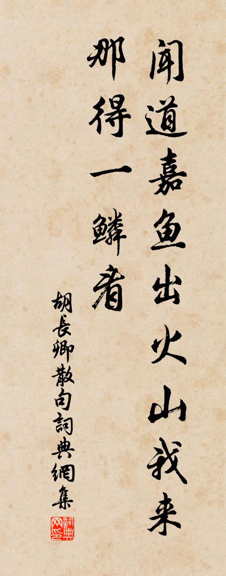 詩詞名句歷史字典書法欣賞書法字典國語詞典說文解字康熙字典古漢語字典標 題 作 者 詩 句 句作者:胡長卿 朝代:宋代句原文聞道嘉魚出火山,我來那得一鱗看。詩詞問答問:句的作者是誰?答:胡長卿問:句寫於哪個朝代?答:宋代胡長卿句書法欣賞句書法作品詩詞推薦歸雲三首楊萬里〔宋代〕三足鴉兒出海東,飛光一朵染天紅。只銷半點皈雲動,立地蒙蒙暗太空。旅懷上石似之郎中虞儔〔宋代〕妄意彈冠不作疎,向來曾是曳長裾。倚門慈母須微祿,當路君公亦薦書。杜曲詩成還蹭蹬,河東賦在有吹噓。上林挽月湖二首危稹〔宋代〕天胡奪我老先生,軒冕叢中玉雪清。英石數拳歸艇重,月湖千頃世緣輕。雲山買得無餘俸,句法流將不盡名。頭白元夕八首陳世崇〔宋代〕風飄蹀躞步搖輕,相喚相呼去看燈。笑整玉梅藏素手,香肩三角卸吳綾。文公書廚於穆元聖陳普〔宋代〕驪龍抱明珠,高臥萬丈下。豈無善水人,誰是得珠者。至人有神手,上智無淺心。直須入無倫,始克開重陰。念奴嬌(寶祐丁已閏四月,偕十友避暑白雲寺)李昴英〔宋代〕麥秋時候,薄陰罩炎日,山行乘興。筇屐追隨多勝侶,青佩黃冠方領。坐石談玄,聽泉濯暑,直上千山頂。倚風長頌石頭和尚草庵歌釋印肅〔宋代〕百年拋卻任縱橫,只履西歸表不生。來往本無常湛寂,心心相印號傳燈。人日六言五首王邁〔宋代〕功名朝三暮四,學問人百已千。古今無限卿相,方冊惟著聖賢。小軒陸游〔宋代〕碪杵聲中去日遒,小軒風露一簾秋。人間走遍心如石,分付寒螿替說愁。登牛溪嶺李新〔宋代〕岷峨潤眼長可人,清江水綠如九親。水光山色不相送,自涯需返情太真。另車驅將向何處,到此已與魑魅鄰。投荒題凝祥觀文天祥〔宋代〕前路風塵走且僵,我來一日此徜徉。歐公自是游嵩觀,迂叟原非過太行。始信神仙還有國,不知蠻觸是何鄉。世間頌證道歌證道歌釋印肅〔宋代〕百年妖怪虛開口,五伯生親狐兔走。百丈峰前一句新,不昧光中猶未了。寄湯司諫趙蕃〔宋代〕自發袁州使,侵尋復暮春。何人話安否,官路政艱辛。章貢未歸客,湘沅薄宦人。何當一傾蓋,肯作白頭新。題浯溪二首蔣孝忠〔宋代〕好山好水占浯溪,中直磨崖一片碑。試問天齊齊幾許,從他元子賸誇毗。照田蠶行范成大〔宋代〕鄉村臘月二十五,長竿然炬照南畝。近似雲開森列星,遠如風起飄流螢。今春雨雹繭絲少,秋日雷鳴稻堆小;儂家啟帳黃滔〔唐代〕得人憎定繡芙蓉,愛鎖嫦娥出月蹤。侍女莫嫌抬素手,撥開珠翠待相逢。用孫仲益尚書韻二首呈孟信安仲並〔宋代〕慷慨安周鼎,從容卻郢兵。馳心子牟闕,袖手闔閭城。前箸陳天陛,先聲震敵營。寰區望彌切,樞莞寄非輕。行有和文與可洋川園池三十首 天漢台蘇軾〔宋代〕漾水東流舊見經,銀潢左界上通靈。此台試向天文覓,閣道中間第幾星。和韻問魏石川疾何夢桂〔宋代〕冰是塵中骨相凡,蓉裳蕙帶芰荷衫。勿疑有疾淫成蟲,須信無心感是鹹。裹藥曾經丹灶火,裁書只欠土區椷。病餘吳季野話撫州潛心閣梅堯臣〔宋代〕高閣潛心所,圖書曝蠹收。青山隨宅轉,遠水向門流。迤邐看無厭,潺湲聽不休。一聞秦洞說,便欲泛漁舟。名句推薦一半黃梅雜雨晴,虛嵐浮翠帶湖明,閒雲高鳥共身輕。鄭文焯《浣溪沙·從石樓石壁往來鄧尉山中》 可有梅花寄一枝?雪來翠羽飛。吳錫麒《長相思·以書寄西泠諸友即題其後》 佇立傷神。無奈輕寒著摸人。朱淑真《減字木蘭花·春怨》 稻根科斗行如塊,田水今年一尺寬。范成大《夏日田園雜興》 不足於行者,說過;不足於信者,誠言。荀子《荀子·大略》 猶憐慣去國,疑是夢還家。盧僎《歲晚還京台望城闕成口號先贈交親》 明朝掛帆席,楓葉落紛紛。李白《夜泊牛渚懷古》 野曠天清無戰聲,四萬義軍同日死。杜甫《悲陳陶》 千里鶯啼綠映紅,水村山郭酒旗風。杜牧《江南春》 曉戰隨金鼓,宵眠抱玉鞍。李白《塞下曲六首·其一》