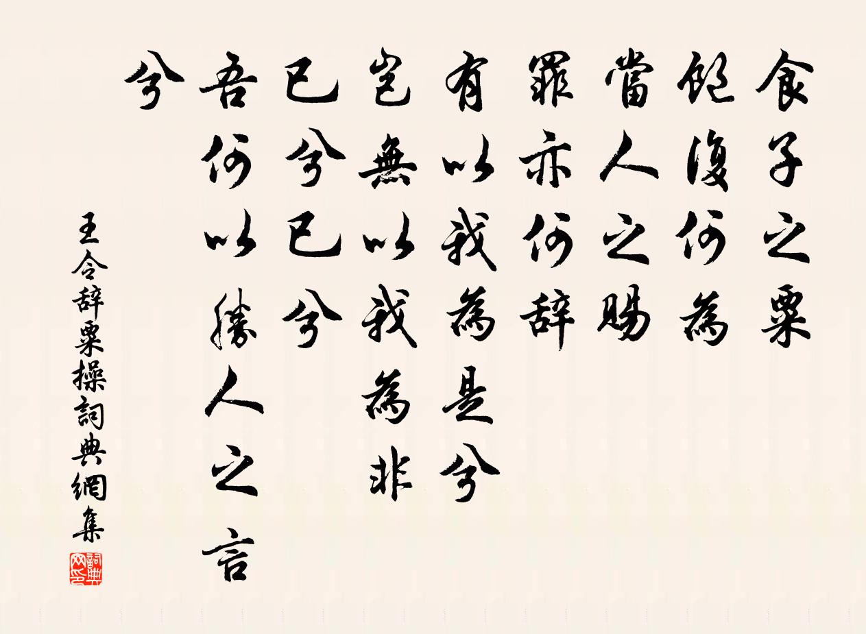 詩詞名句歷史字典書法欣賞書法字典國語詞典說文解字康熙字典古漢語字典標 題 作 者 詩 句 辭粟操作者:王令 朝代:宋代辭粟操原文食子之粟,飽復何為。當人之賜,罪亦何辭。有以我為是兮,豈無以我為非。已兮已兮,吾何以勝人之言兮。詩詞問答問:辭粟操的作者是誰?答:王令問:辭粟操寫於哪個朝代?答:宋代王令辭粟操書法欣賞辭粟操書法作品詩詞推薦呈萬菴十章參同白玉蟾〔宋代〕道人家在海之南,來訪廬山老萬庵。露柱燈籠同請舉,僧堂佛殿總和南。山河大地自群動,蠢動含靈共一龕。虀瓮江州五詠其二浪井蘇轍〔宋代〕江被浮陣雲,岸壁立青鐵。胡為井中泉,涌浪時驚發。水性本無定,得止自澄澈。誰為女媧手,補此天地裂。歲暮雜感十首曾國藩〔清代〕莽莽寒山匝四圍,眼穿望不到庭闈。絮漂江浦無人管,草綠湖南有夢歸。鄉思怕聽殘漏轉,逸 * 逐亂雲飛。敬從長安感事呈盧綸李端〔唐代〕十五事文翰,大兒輕孔融。長裾游邸第,笑傲五侯中。諫獵一朝寢,論邊素未工。蹉跎潘鬢至,蹭蹬阮途窮。貸布晨起陸游〔宋代〕晨起梳頭拂面絲,行年七十豈前期。此生猶著幾兩屐?長日惟消一局棋。空釜生魚忍貧慣,閒門羅雀與秋宜。區區謝兩知縣送鵝酒羊面二首陳造〔宋代〕麥生宜配臥沙羊,鵝炙仍便碧酒香。陡覺今年好冬節,朝來紅日為誰長。曹務拘綴不及赴張持荷賞梅之約因得小詩寄似喻良能〔宋代〕渺渺煙波闊,南湖在帝城。梅將春共早,人與境俱清。筆墨探三昧,樽罍有四並。未能乘興去,遙望目增明。無眠虞儔〔宋代〕蛩吟砌下豈知時,我亦無眠有所思。夜永只憐燈作伴,秋涼最許簟先知。十年擾擾夢中事,一笑悠悠世上兒。數盡送晁補闕歸日本國趙驊〔唐代〕西掖承休浣,東隅返故林。來稱郯子學,歸是越人吟。馬上秋郊遠,舟中曙海陰。知君懷魏闕,萬里獨搖心。第一吳歌曹勛〔宋代〕水滿長洲月滿樓,姑蘇台榭鎖深秋。君王不見春花老,響靸廊中勝游。杜工部蜀中離席李商隱〔唐代〕人生何處不離群?世路干戈惜暫分。雪嶺未歸天外使,松州猶駐殿前軍。座中醉客延醒客,江上晴雲雜雨雲。美酒送霸州司理翟曼蘇轍〔宋代〕大梁能賦客,邊郡繫囚曹。官職不相稱,聲名終自高。試觀為吏苦,應過讀書勞。努力事初宦,尺絲無厭繅。喜趙居父赴班王琮〔宋代〕西台自是舊相知,來了為山一簣虧。入幕雖無多日在,改官已是十年遲。金閨接武人爭羨,玉牒能文世所奇。此去天台邵明府履病況遺牡丹各賦一絕林表民〔宋代〕一春苦雨又憂花,爛盡秧根榖再芽。見說雲頭紅可喜,老宵猶恐是朝霞。禱雨有應寄鶴林白玉蟾〔宋代〕魃燄爇天草木煩,請檄上清火鈴君。為我挽斷黃河源,並與拽翻蒼海根。我亦弗信神龍頑,我亦弗疑神雷蠻。速須句吳光〔宋代〕冰看時俗薄,雨弄客愁多。紹興以後時享二十五首真宗〔宋代〕禮備樂成,物稱誠竭。相維辟公,神人以說。歌雍一章,諸宰斯入。天子萬年,無競維烈。病中散步六絕岳珂〔宋代〕絕憐倦翼晚風高,解枼歸來得故巢。物態隨人也歡喜,遊絲不住舞蠨蛸。銷夏灣范成大〔宋代〕蓼磯楓渚故離宮,一曲清漣九里宮。縱有暑光無著處,青山環水水浮空。端午五言三首劉克莊〔宋代〕士女匆匆散,溪山寂寂然。龍舟閒似我,閣起向沙邊。名句推薦昔日芙蓉花,今成斷根草。李白《妾薄命》 記得武陵相見日,六年往事堪驚周紫芝《臨江仙·送光州曾使君》 紫萸一枝傳賜,夢誰到、漢家陵。姚雲文《紫萸香慢·近重陽》 人者多欲,其性尚私。來俊臣《羅織經·閱人卷第一》 王粲登臨寥落際。雁飛不斷天連水。王庭筠《鳳棲梧·衰柳疏疏苔滿地》 時有滿虛,事有利害,物有生死。韓非及後人《韓非子·觀行》 又似賈客蜀道間,千鐸萬磬鳴空山牛殳《琵琶行》 笙歌散盡遊人去,始覺春空。歐陽修《採桑子·群芳過後西湖好》 穗帷飄井幹,樽酒若平生。謝朓《同謝諮議詠銅雀台》 可憐白骨攢孤冢,盡為將軍覓戰功。張蠙《吊萬人冢》