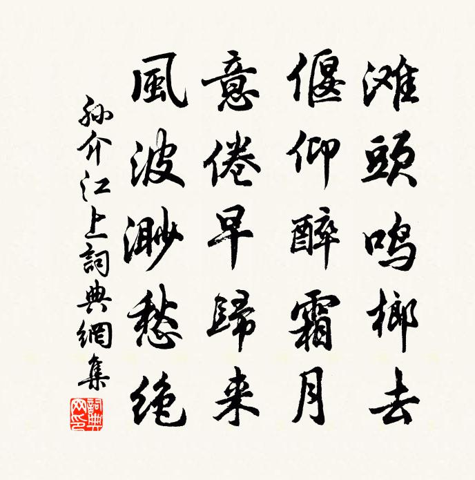 詩詞名句歷史字典書法欣賞書法字典國語詞典說文解字康熙字典古漢語字典標 題 作 者 詩 句 江上作者:孫介 朝代:宋代江上原文灘頭鳴榔去,偃仰醉霜月。意倦早歸來,風波渺愁絕。詩詞問答問:江上的作者是誰?答:孫介問:江上寫於哪個朝代?答:宋代孫介江上書法欣賞江上書法作品詩詞推薦道中積雨姚勉〔宋代〕才起程時雪絮春,雪余又是雨兼旬。肩輿聊復能安穩,步屧其如受苦辛。楮賤米窮嘗世味,風餐露宿鏈官身。一朝題潤州金山寺張祜〔唐代〕一宿金山寺,超然離世群。僧歸夜船月,龍出曉堂雲。樹色中流見,鐘聲兩岸聞。翻思在朝市,終日醉醺醺。鵲橋仙王惲〔元代〕沉酣往古。棲遲衡宇。*有弓招此舉。長林豐草野麋心,是中散、生平自許。日邊草賦。矛頭炊黍。誰道閒雲有雨李右司以詩送梅花至潞公予雖不接右司想見其黃庭堅〔宋代〕凡花俗草敗人意,晚見瓊蕤不恨遲。江左風流尚如此,春功終到歲寒枝。送謝石先輩歸宣州林寬〔唐代〕名隨春色遠,湖外已先知。花盡方辭醉,鶯殘是放時。天寒千尺岳,頷白半聯詩。筍蕨猶堪采,榮歸及養期。送道士歸天台貫休〔唐代〕道高留不住,道去更何雲。舉世皆趨世,如君始愛君。徑侵銀地滑,瀑到石城聞。它日如相憶,金桃一為分。徐道士水墨屏四首白玉蟾〔宋代〕人遠看來短,山遙淡欲無。水邊漁舍密,天際客帆孤。游桃花台寺僧指似葛仙翁煉凡處曾豐〔宋代〕昔為仙翁宅,今作梵氏家。桃花太俗生,釋老安取耶。物原出平等,人自分品差。我來與時違,有桃卻無花。舊來江上易士達〔宋代〕西風捲起五湖秋,萬頃波中幾白鷗。好趁水雲深處隱,短蓬蓑笠一扁舟。品令趙長卿〔宋代〕好事客。宮商內、吟得風清月白。主人幸有豪家意,後堂煞有春色。花壓金翹俏相映,酒滿玉纖無力。你若待我些鍾春伯園林戴復古〔宋代〕西風吹起蓴鱸興,八座歸來有此山。林麓兩峰亭榭外,瀟湘一片水雲間。天生景物四時好,人滿乾坤幾個閒。語喚小山喻良能〔宋代〕峰秀因拳石,溪清見發魚。毫釐辨喬梓,咫尺有匡廬。紫騮馬楊炯〔唐代〕俠客重週遊,金鞭控紫騮。蛇弓白羽箭,鶴轡赤茸鞦。發跡來南海,長鳴向北州。匈奴今未滅,畫地取封侯。送張教授赴廣闕陳杰〔宋代〕遠戍不辭難,書生本色官。炎埃五嶺熱,夜雨一氈寒。鄉信無鴻到,梅花當雪看。風雲忽諧偶,擊海起鵬摶。山居歸來恰一年有感吳芾〔宋代〕去歲茲辰始息肩,俄然日月已周天。經營小隱雖雲畢,栽種清陰苦未圓。湖畔百年多古木,山前一望足平川。從嗟詩經·羔裘佚名〔先秦〕羔裘豹祛,自我人居居。豈無他人?維子之故。羔裘豹褎,自我人究究。豈無他人?維子之好。村景戴復古〔宋代〕簫鼓迎神賽社筵,藤枝搖曳打鞦韆。坐中翁嫗鬢如雪,也把山花插滿顛。士安飲我數杯至觀音院才醒聞灘聲泉響因留短蔡襄〔宋代〕林外灘聲砌下泉,冷冷幽響靜中傳。朝衫卻染京塵去,爭得夫君醒醉眠。永昭陵輓詞三首歐陽修〔宋代〕干戈不用臻無事,朝野多歡樂有年。便坐看揮飛白筆,侍臣新和◇梁篇。衣冠忽見藏原廟,簫鼓愁聞向洛川。寂寞初見梅有作曹勛〔宋代〕至後微和入燒痕,煙稍寄我嶺頭新。尚無紅糝離離意,已覺清姿苒苒春。未暇似為烏有賦,絕勝遂詠墜樓人。夜寒名句推薦嘆鳳嗟身否,傷麟怨道窮。李隆基《經鄒魯祭孔子而嘆之》 後人收得休歡喜, 還有收人在後頭。范仲淹《書扇示門人》 過頭飯好吃,過頭話難聽!佚名《增廣賢文·下集》 西風滿天雪,何處報人恩。齊己《劍客》 情由憶生,不憶故無情。房玄齡《晉書·列傳·第六十四章》 夜寒驚被薄,淚與燈花落納蘭性德《菩薩蠻·蕭蕭幾葉風兼雨》 筆落驚風雨,詩成泣鬼神杜甫《寄李十二白二十韻》 小人不激不勵,不見利不勸。王通《中說·卷一·王道篇》 桃花水到報平渠,喜動新流見躍魚。黃圖安《閒詠二絕》 夕陽無限好,只是近黃昏。李商隱《樂遊原 / 登樂遊原》