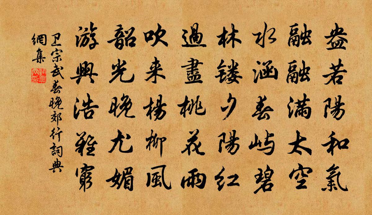 詩詞名句歷史字典書法欣賞書法字典國語詞典說文解字康熙字典古漢語字典標 題 作 者 詩 句 春晚郊行作者:衛宗武 朝代:宋代春晚郊行原文盎若陽和氣,融融滿太空。水涵春嶼碧,林鏤夕陽紅。過盡桃花雨,吹來楊柳風。韶光晚尤媚,遊興浩難窮。詩詞問答問:春晚郊行的作者是誰?答:衛宗武問:春晚郊行寫於哪個朝代?答:宋代衛宗武春晚郊行書法欣賞春晚郊行書法作品詩詞推薦村居遣興陸游〔宋代〕萬里征途興已闌,三間破屋住猶寬。山姜著雨房重歛,南燭先霜實半丹。野市秋陰更蕭瑟,書生老瘦轉酸寒。掩關詠珊瑚韋應物〔唐代〕絳樹無花葉,非石亦非瓊。世人何處得,蓬萊石上生。越中秋懷李白〔唐代〕越水繞碧山,周回數千里。乃是天鏡中,分明畫相似。愛此從冥搜,永懷臨湍游。一為滄波客,十見紅蕖秋。觀濤定海九龍山戴栩〔宋代〕佛燈孤照淨琉璃,吟盡疏星印水湄。更覓九龍飛下處,人言山僻過於詩。偈十三首釋法泰〔宋代〕開口錯,合口喪,明眼衲僧無伎倆。春風吹落桃李花,淡煙疏雨籠青嶂。微雨三首趙蕃〔宋代〕雨絲條脈脈,雨點淚浪浪。無處堪回首,如何不斷腸。日長三十韻寄趙賓暘方回〔宋代〕栗里淵明徑,榿林子美堂。亂離容不死,窮乏果何傷。紅粒炊{左禾右山}飯,青苔煮菜湯。甲兵才偃息,城市轉脩竹宋祁〔宋代〕北戶靜無塵,蕭蕭玩翠筠。此時刀筆手,慚愧殺青人。寄方叔黃草道服姜特立〔宋代〕非蕉非苧復非絺,不是山人木葉衣。寄與詩翁莫嫌陋,看山長帝白雲歸。酬程嘉定楊漢州見和三首洪咨夔〔宋代〕六州鐵鑄錯,四海金為甌。興亡幾變滅,明月長清秋。憶從黨禍起,中原墮旄頭。月行九霄上,安知下民愁。年來避難周姓家席地而眠偶成陳著〔宋代〕夜宿山家謝主翁,安排席藁地爐東。枕頭就借支機石,帕額聊防箭隙風。酒瓮下眠添古話,牛衣中臥有時通。老吾雨游青原山二首趙蕃〔宋代〕要作山中宿,悵無林下期。摩挱魯公字,咀嚼豫章詩。挽崔舍人趙彥中〔宋代〕仙院分宵直,書庭接翼翔。情忘海夫臭,語借令君香。壯發猶藏葆,生芻已奠觴。修文平日事,地下亦為郎。曉行張問陶〔清代〕人語夢頻驚,轅鈴動曉征。飛沙沉露氣,殘月帶雞聲。客路逾千里,歸心折五更。回憐江上宅,星漢 * 明。題龍虎山高士毛和叔愚泉詩稿方回〔宋代〕暫住身如鶴在松,忽然飛去又無蹤。合皂山頭曾不睡,夜寒看月到晨鐘。久雨有感二首梁棟〔宋代〕少年不學稼,老大生理拙。入山采黃精,窮冬一尺雪。虎狼正縱橫,原野有白骨。傷心重傷心,吾飢何足恤。喜晴曹彥約〔宋代〕醉入機緘喜不勝,幾多風雨一番晴。掃除氛祲乾坤大,拂度光輝日月明。萬計官逋紓吏責,十分燈夕看人情。熙熙次韻自詠項安世〔宋代〕雜劇只如此,古人誰不然。渭南尋竹塢,杜曲賣桑田。石裂山銜羽,松明火帶煙。夜深隨射虎,歸路恐迷阡。觀杭州柘枝張祜〔唐代〕舞停歌罷鼓連催,軟骨仙蛾暫起來。紅罨畫衫纏腕出,碧排方胯背腰來。旁收拍拍金鈴擺,卻踏聲聲錦袎摧。看著晚春臥病喜振上人見訪李益〔唐代〕臥床如舊日,窺戶易傷春。靈壽扶衰力,芭蕉對病身。道心空寂寞,時物自芳新。旦夕誰相訪,唯當攝上人。名句推薦樹大招風風撼樹,人為名高名喪人。吳承恩《西遊記·第三十三回》 流光容易把人拋,紅了櫻桃,綠了芭蕉。蔣捷《一剪梅·舟過吳江》 鵲橋波里出,龍車霄外飛。任希古《和長孫秘監七夕》 憐夜冷孀娥,相伴孤照。吳文英《花犯·謝黃復庵除夜寄古梅枝》 兒孫自有兒孫福,莫為兒孫做馬牛。佚名《增廣賢文·上集》 獨夜憶秦關,聽鍾未眠客。韋應物《夕次盱眙縣》 營州少年厭原野,狐裘蒙茸獵城下。高適《營州歌》 父母之年,不可不知也。一則以喜,一則以懼。孔子弟子《論語·里仁篇》 念去來、歲月如流,徘徊久、嘆息愁思盈。周邦彥《綺寮怨·上馬人扶殘醉》 梅定妒,菊應羞。畫闌開處冠中秋。李清照《鷓鴣天·桂花》