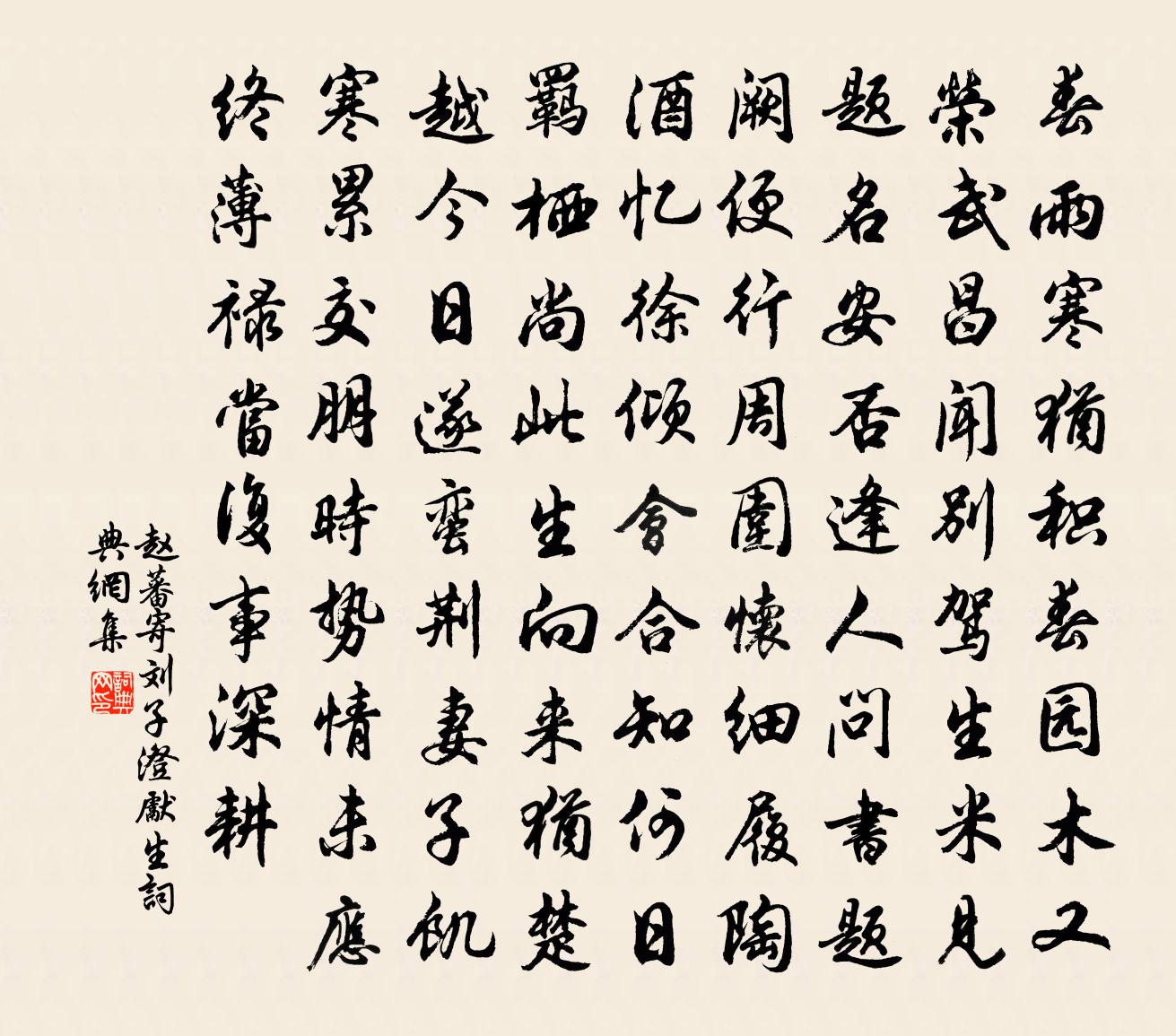 詩詞名句歷史字典書法欣賞書法字典國語詞典說文解字康熙字典古漢語字典標 題 作 者 詩 句 寄劉子澄先生作者:趙蕃 朝代:宋代寄劉子澄先生原文春雨寒猶積,春園木又榮。武昌聞別駕,生米見題名。安否逢人問,書題闕便行。周圍懷細履,陶酒憶徐傾。會合知何日,羈棲尚此生。向來猶楚越,今日遂蠻荊。妻子饑寒累,交朋時勢情。未應終薄祿,當復事深耕。詩詞問答問:寄劉子澄先生的作者是誰?答:趙蕃問:寄劉子澄先生寫於哪個朝代?答:宋代趙蕃寄劉子澄先生書法欣賞寄劉子澄先生書法作品詩詞推薦後樊項安世〔宋代〕後樊百君子,相對兩玉人。酴醾三月暮,篠簜四時春。俱懷冰雪姿,不競桃李辰。何以樹之背,恐受俗子塵。上元過祥符僧可久房蕭然無燈火蘇軾〔宋代〕門前歌鼓斗分朋,一室清風冷欲冰。不把琉璃閒照佛,始知無盡本無燈。代王維謹挽李察院二首黃榦〔宋代〕牛角短歌頭半白,龍門峻級眼常青。一官多是春風力,千里俄驚秋淚零。坐想德容今寂寞,夢回耳語尚丁寧。夜台殢人嬌晏殊〔宋代〕二月春風,正是楊花滿路。那堪更、別離情緒。羅巾掩淚,任粉痕沾污。爭奈向、千留萬留不住。玉酒頻傾,宿眉雜歌謠辭。蘇小小歌張祜〔唐代〕車輪不可遮,馬足不可絆。長怨十字街,使郎心四散。新人千里去,故人千里來。翦刀橫眼底,方覺淚難裁。登山贈仰上人齊己〔唐代〕避地依真境,安閒似舊溪。干戈百里外,泉石亂峰西。草瑞香難歇,松靈蓋盡低。尋應報休馬,瓶錫向南攜。和晉齋兄韻三首袁甫〔宋代〕不愛金章紫綬紆,欣然玉局自安居。近來作計誰雲拙,六六之年創一廬。病中聞伯量相訪寄之二首裘萬頃〔宋代〕高人在城郭,應酬頗紛如。憶我煙霞枉,遺我一紙書。雨余窗戶涼,蛩聲滿階除。相過有成言,何時命巾車。清平樂 祖母夫人壽魏初〔元代〕珠圍翠繞。塵土知音少。一曲清琴松月曉。兒女肝腸容了。歌聲不用琵琶。銀杯細卷流霞。歲歲而今時候,小溪晴武林陸游〔宋代〕皇輿久駐武林宮,汴雒當時未易同。廣陌有風麈不起,長河無凍水常通。樓台飛舞祥煙外,鼓笛喧呼明月中。六十脫京口得船難文天祥〔宋代〕經營十日苦無舟,慘慘椎心淚血流。漁父疑為神物遣,相逢揚子大江頭。辰十月八日同希周掃松靈石晚步松下愴然有懷謝直〔宋代〕長懷邴曼容,遠慕蘧伯玉。養志則安能,寡地變所欲。邈哉誤儒冠,坐使衣食促。籯書不論金,終身未易讀。灑掃偈頌一百零一首釋慧性〔宋代〕一人道有一人無,正令全提肘後符。昨夜虛空開口笑,石人吞卻洞庭湖。親舊書報京師盛聞治聲曾鞏〔宋代〕自知孤宦無材術,誰道京師有政聲。默坐海邊何計是,白頭親在鳳凰城。至日劉克莊〔宋代〕鈞天殘夢忽驚回,金鑰遙知已掣開。不復五更三點入,剛雲七日一陽來。即今空戀唐宮闕,疇昔曾登魯觀台。猶記贈薜道士王遂〔宋代〕覿面逢幽侶,裝懷解吏紛。曾敲筠戶月,屢宿柳塘雲。離索知余恨,來過謝子勤。山中新雨足,幾處未耕耘。入道新昌大石佛黃庚〔宋代〕倚天岩石費雕鐫,佛相分明在眼前。莫與嘉州爭大小,法身充滿本無邊。八聲甘州 憲司循行召試洪希文〔元代〕秋光如此,摧落堪嗟,菊穎正新黃。對遠山如畫,殘霞似縷,淡淡煙光。怪得數聲喜鵲,好語繞山牆。報導黃華使林欽之主簿挽章姜特立〔宋代〕敬讀銘鐫語,遙知磊落胸。主襟如郭震,豪氣似元龍。萬里摧車軸,三春折澗松。天雖不可問,餘慶後人鍾。霜徐璣〔宋代〕詩鬢曉星星,霜天似水清。風當窗眼入,冰向硯池生。已瘦梅枝影,獨乾竹葉聲。夜來天地潔,惟是月華明。名句推薦迢迢新秋夕,亭亭月將圓。陶淵明《戊申歲六月中遇火》 臘盡愁難盡,春歸人未歸。馮夢龍《喻世明言·卷一》 田家占氣候,共說此年豐。孟浩然《田家元日》 雪照山城玉指寒,一聲羌管怨樓間。劉著《鷓鴣天·雪照山城玉指寒》 士雖有學,而行為本焉。墨子《墨子·02章 修身》 開到荼蘼花事了。曹雪芹《紅樓夢·第六十三回》 畫圖省識春風面,環珮空歸夜月魂。杜甫《詠懷古蹟五首·其三》 酒亂性,色迷人。施耐庵《水滸傳·第四十五回》 笑十三楊柳女兒腰,東風舞。岳珂《滿江紅·小院深深》 霜威出塞早,雲色渡河秋。李白《太原早秋》