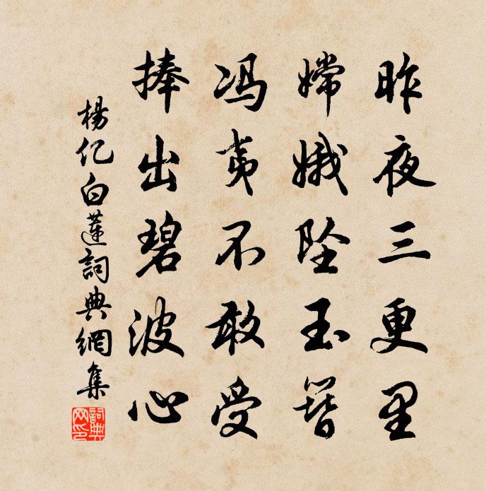 詩詞名句歷史字典書法欣賞書法字典國語詞典說文解字康熙字典古漢語字典標 題 作 者 詩 句 白蓮作者:楊億 朝代:宋代白蓮原文昨夜三更里,嫦娥墜玉簪。馮夷不敢受,捧出碧波心。詩詞問答問:白蓮的作者是誰?答:楊億問:白蓮寫於哪個朝代?答:宋代楊億白蓮書法欣賞白蓮書法作品詩詞推薦惜竹陳亞〔宋代〕出檻亦不翦,從教長舊叢。年年到朱夏,葉葉是清風。自和二首劉克莊〔宋代〕橫身久塞楊朱路,灑泣俄悲墨子岐。陋矣射鉤而中者,壯哉鳴鼓以攻之。侍讀自無遷府分,中丞還有僦船時。八風聞蟬五絕句奉呈諸幕友曾豐〔宋代〕炎帝乘風馭氣行,前驅警蹕羽仙輕。胸中一部鈞天樂,吐作衙字唱道星。木蘭花減字(贈晃無咎舞鬟)陳師道〔宋代〕娉婷娜裊。紅落東風青子小。妙舞逶迤。拍誤周郎卻未知。花前月底。誰喚分司狂御史。欲語還休。喚不回頭莫著會稽王處士草堂壁畫衡霍諸山劉長卿〔唐代〕粉壁衡霍近,群峰如可攀。能令堂上客,見盡湖南山。青翠數千仞,飛來方丈間。歸雲無處滅,去鳥何時還。勝事緣識宋太宗〔宋代〕誰是知非便肯休,空言大道眼前頭。惟思利已浮名重,豈信功高入品流。昝元帥相拉浣花溪泛舟汪元量〔宋代〕行都元帥千蹄馬,腰佩角弓箭盈把。浣花溪頭具小舟,擊鼓 * 行酒斝。舞腰嬝娜錦纏頭,風吹金縷隨東流。公孫夜行自戲六五言晁說之〔宋代〕觸熱褦襶幾許,我生何艱哉。九天星斗初轉,汲井意徘徊。不解鳴珂帝所,踉蹡沒塵埃。為問晚嫁盧姬,一笑為誰岳陽樓雜詠十二絕胡寅〔宋代〕沅澧澬湘此並行,漲流洄薄又東傾。西南或與天為際,禹貢如何不記名。酹江月 登古容城有感,城陰則靜修劉先生故安熙〔元代〕天山巨網,盡牢籠、多少中原人物。趙際燕陲空老卻,千仞岩岩蒼壁。古柏蕭森,高松偃蹇,不管飛冰雪。慕膻群放歌招孫祖訓俞國寶飲章甫〔宋代〕兒時望春春不來,春衣隔年催翦裁。平明出遊薄暮回,惟恐雲氣興風雷。豈知樂極還悲哀,十年黃塵涴青鞋。管領生涯陸游〔宋代〕舊業桑麻在,頹齡耄耄過。虞卿著書晚,伏叟授經訛。井上磨椎斫,村東買釣蓑。傾身營一飽,自笑又蹉砣。酒家黃庚〔宋代〕風颭青簾出杏林,行人未醉翁頭春。安知滌器茅桅者,不是相如行輩人。頌古一百首釋智愚〔宋代〕遼空一箭九重城,雪老門風盡有聲。見說禁班宣號令,那邊渾不許人行。挽吳君謀少卿二首劉克莊〔宋代〕昔為樞掾侍延英,驀聽臚傳第一聲。仙籍香浮廣寒殿,奏篇紙貴洛陽城。親逢明主真千載,曾謂斯人止九卿。惟有張長史秋深帖贊岳珂〔宋代〕煒五帖兮迨今,信第一兮秋深。彼伯高兮書淫,人爭取兮千金。考步武兮可尋,付纖農兮何心。媲關沈兮鳴琴,尚乳峰庵釋鑒〔宋代〕崖竇乳堪啜,凝眸翠作屏。老禪初定起,山鳥中呼名。句晃逈〔宋代〕安得大金柅,制彼日月輪。免同流水車,今人續古人。壽聖觀道士黃至明開小隱軒太守徐公為題曰快黃庭堅〔宋代〕金華牧羊兒,一粒粟中藏世界。使君從南來,清風明月不用一錢買。鸕鶿杯,一杯一杯復一杯,玉山自倒非人推。七夕廖行之〔宋代〕目切雲垂望,心馳枕忘涼。兩年違色養,七夕又他鄉。坐想斑衣戱,胡為捧檄忙。何人翟方進,將母冠岩廊。名句推薦無錢休入眾,遭難莫尋親。佚名《增廣賢文·上集》 征蓬出漢塞,歸雁入胡天。王維《使至塞上》 不義而富且貴,於我如浮雲。孔子弟子《論語·述而篇》 醉翁之意不在酒,在乎山水之間也。歐陽修《醉翁亭記》 崑崙之高有積雪,蓬萊之遠常遺寒。王令《暑旱苦熱》 不凡之子,必異其生;大德之人,必得其壽。程登吉《幼學瓊林·卷二·老幼壽誕》 直須看盡洛城花,始共春風容易別。歐陽修《玉樓春·尊前擬把歸期說》 猶記得、當年深隱,門掩兩三株。張炎《渡江雲·山陰久客一再逢春回憶西杭渺然愁思》 竹色溪下綠,荷花鏡里香。李白《別儲邕之剡中》 撥雲尋古道,倚石聽流泉。李白《尋雍尊師隱居》