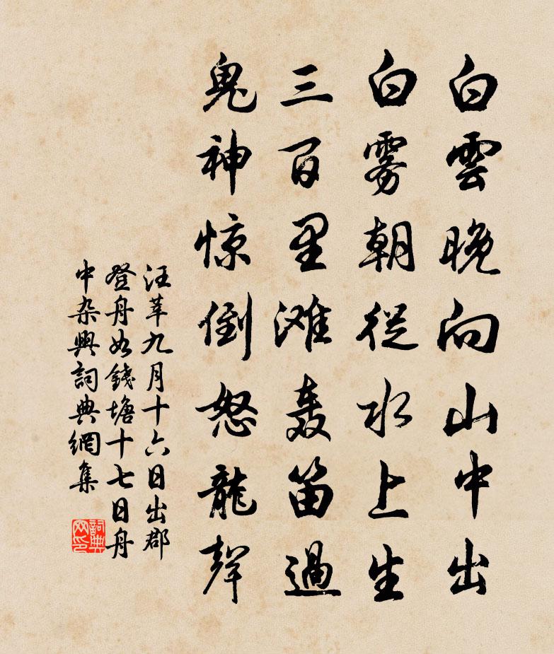 - 朝辭白帝彩雲間,千里江陵一日還。