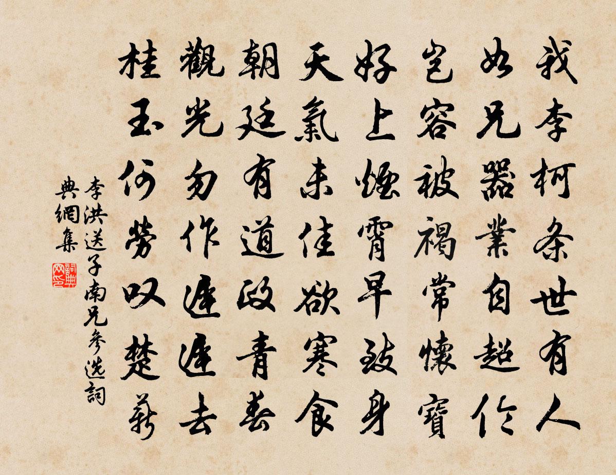 詩詞名句歷史字典書法欣賞書法字典國語詞典說文解字康熙字典古漢語字典標 題 作 者 詩 句 送子南兄參選作者:李洪 朝代:宋代送子南兄參選原文我李柯條世有人,如兄器業自超倫。豈容被褐常懷寶,好上煙霄早致身。天氣未佳欲寒食,朝廷有道政青春。觀光勿作遲遲去,桂玉何勞嘆楚薪。詩詞問答問:送子南兄參選的作者是誰?答:李洪問:送子南兄參選寫於哪個朝代?答:宋代李洪送子南兄參選書法欣賞送子南兄參選書法作品詩詞推薦謝紀倅惠梅劉宰〔宋代〕翠實堆盤對綠樽,清香尚想月黃昏。主人合試調羹手,病叟難忘止渴恩。泛茅山東溪儲光羲〔唐代〕清晨登仙峰,峰遠行未極。江海霽初景,草木含新色。而我任天和,此時聊動息。望鄉白雲里,發棹清溪側。松柏楊花張祜〔唐代〕散亂隨風處處勻,庭前幾日雪花新。無端惹著潘郎鬢,驚殺綠窗紅粉人。海棠方岳〔宋代〕半吐柔芳暖正妍,趁晴何不試籠鞭。玉環醉矣春無賴,金屋貯之人孰賢。花比紅兒誰作譜,詩傳嬌客已成編。湘簾招山乃詩人劉叔擬故居朱清之得其地清之赴南戴復古〔宋代〕半路袖回攀佳手,一生才遂買山心。要知此老風流處,來向劉郎吟處吟。瑞鷓鴣王哲〔元代〕黃麥秀變隨秋。內燒身日日憂。被兒孫長與便,遭妻女每添愁。中戚戚多般屬。內孜孜少得休。棄金花如覺悟,今挽吳門昌母夫人二首李曾伯〔宋代〕慶事一門盛,修齡七袠強。綸封四大國,采侍兩文昌。夢幻存真覺,動庸看顯揚。家山空睇望,惜此令儀亡。樞密新府樓鑰〔宋代〕門號簽書府,心存攻愧齋。倚欄臨曲沼,扶杖看懸崖。槁葉鳴輕雨,殘山擁半階。退公成吏隱,足以暢幽懷。秋夜寄進士顧榮羅隱〔唐代〕秋河耿耿夜沈沈,往事三更盡到心。多病謾勞窺新地,薄才終是費知音。家山夢後帆千尺,塵土搔來發一簪。空羨杭州雜詩和林石田汪元量〔宋代〕躡足封韓信,剖心嗔比干。河山千古淚,風雨一番寒。世指鹿為馬,人呼鳥作鸞。江頭潮洶洶,城腳水漫漫。偈頌一百一十七首釋紹曇〔宋代〕二月十五,瞿曇滅度。山鳥悲春,山花泣雨。盡大地人,有屈無伸處。獨有瑞嚴拄杖子,鐵作心腸渾不顧。唱玉平水仙圖王冕〔元代〕寒風蕭蕭夜入戶,渺渺雲飛水仙府。仙人一去不知所,池館荒涼似無主。江城歲晚路途阻,邂逅相看顏色古。環佩送韋處士歸省朔方趙嘏〔唐代〕映柳見行色,故山當落暉。青雲知已歿,白首一身歸。滿袖蕭關雨,連沙塞雁飛。到家翻有喜,借取老萊衣。買舟浦城華岳〔宋代〕畏路逢危路,尋舟得小舟。始云為得計,終乃復添憂。艙狹難伸足,篷低怎舉頭。十圍無處著跼促向中流。和顏長官百詠山居朱繼芳〔宋代〕白雲縹緲野人家,丹事年來漸有涯。不與世人爭歲月,卻將椿菌勘南華。贈喬侍郎陳子昂〔唐代〕漢廷榮巧宦,雲閣薄邊巧。可憐驄馬使,白首為誰雄?次韻周敏卿秋興三首喻良能〔宋代〕悠悠草根蟲,鳴聲近我床。皎皎林間月,亦已照我牆。感此動萬慮,聊復舉一觴。何以侑我酒,清嘯聞疏篁。移疾陸游〔宋代〕朝來移疾臥虛堂,暫屏文書日更長。鷗鷺近人情漸熟,簾櫳欲雨意先涼。沙巾自照清池影,蕊笈閒銷古篆香。莫恨再次羊羔酒韻三首陳造〔宋代〕萊子杯盤別樣香,春浮親面日相羊。老夫底幸沾餘瀝,卻笑無魚客孟嘗。楚觀歌趙汝鐩〔宋代〕吾聞楚鄉江山多勝處,今之楚觀尤得江山趣。萬象排拶索應酬,丹青閣筆無所措。大則湘水小臨蒸,眾流合派銀河名句推薦我有一罇酒,欲以贈遠人。佚名《舊題蘇武詩 / 別詩四首·其一》 君在陰兮影不見,君依光兮妾所願。傅玄《車遙遙篇》 君自故鄉來,應知故鄉事。王維《雜詩三首·其二》 辛苦遭逢起一經,干戈寥落四周星。文天祥《過零丁洋》 唯通乎性命之情,而仁義之術自行矣。呂不韋《呂氏春秋·論·似順論》 聽其言,跡其行,察其所能而慎予官。墨子《墨子·09章 尚賢(中)》 正護月雲輕,嫩冰猶薄。辛棄疾《瑞鶴仙·賦梅》 置酒望白雲,商飆起寒梧。李白《登單父陶少府半月台》 巴子城頭青草暮,巴山重疊相逢處張先《漁家傲·和程公辟贈》 為惜故人去,復憐嘶馬愁。高適《送魏八》
