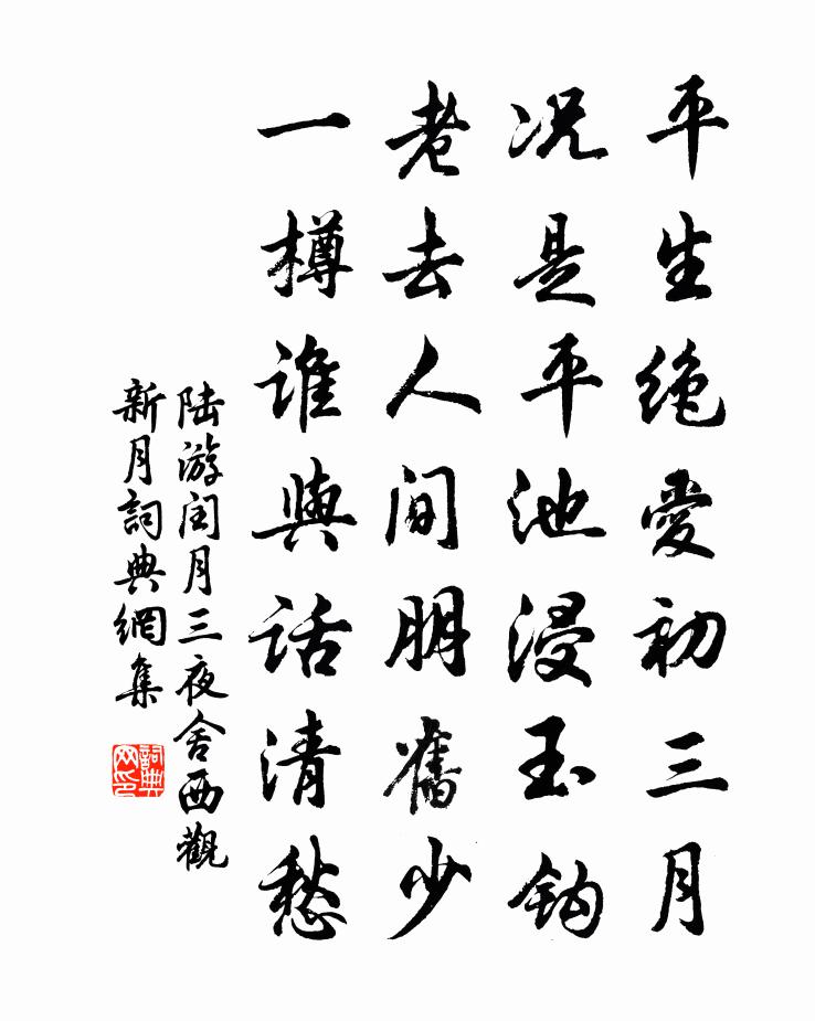 平生絕愛初三月,況是平池浸玉鉤。老去人間朋舊少,一樽誰與話清愁?