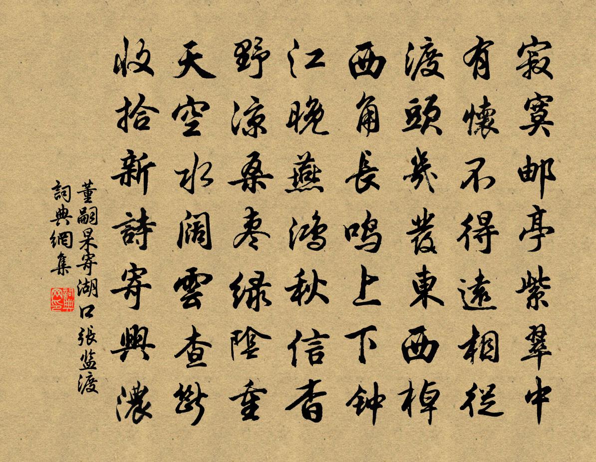 詩詞名句歷史字典書法欣賞書法字典國語詞典說文解字康熙字典古漢語字典標 題 作 者 詩 句 寄湖口張監渡作者:董嗣杲 朝代:宋代寄湖口張監渡原文寂寞郵亭紫翠中,有懷不得遠相從。渡頭幾發東西棹,西角長鳴上下鍾。江晚燕鴻秋信杳,野涼桑棗綠陰重。天空水闊雲查斷,收拾新詩寄興濃。詩詞問答問:寄湖口張監渡的作者是誰?答:董嗣杲問:寄湖口張監渡寫於哪個朝代?答:宋代董嗣杲寄湖口張監渡書法欣賞寄湖口張監渡書法作品詩詞推薦江梅引 贈劉會首劉志淵〔元代〕粒食衣*苦貪求。鎖眉頭。利名搜。酷戀埏埴,為器弄風流。謾到寶山甘空手,只坐守,這輪迴,未肯休。不如返圓相觀音菩薩瑞像頌釋彥泯〔宋代〕妙覺慈生主,身雲瑩碧霞。光輪停夜月,瓔珞綴千花。無車臉心普,分形應類差。圓通斯第一,名號遍恆沙。處處頌古十六首釋心月〔宋代〕不是風兮不是幡,堂堂擺手出重關。可憐守待雞鳴者,猶在昏昏醉夢間。芰荷香(席上用韻送程德遠罷金溪)趙彥端〔宋代〕燕初歸。正春陰暗淡,客意淒迷。玉觴無味,晚花雨退凝脂。多情細柳,對沈腰、渾不勝垂。別袖忍見離披。江南雜曲歌辭。太和第四佚名〔唐代〕塞北江南共一家,何須淚落怨黃沙。春酒半酣千日醉,庭前還有落梅花。過九成宮舊址二首游師雄〔宋代〕今古市朝已變,隋唐樓殿成空。惟有山頭明月,夜來猶照荒宮。同韓員外宿雲門寺嚴維〔唐代〕小嶺路難近,仙郎此夕過。潭空觀月定,澗靜見雲多。竹翠煙深鎖,松聲雨點和。萬緣俱不有,對境自垂蘿。乘月入城項安世〔宋代〕水落千原淨,天高七澤空。征人秋色里,騎馬月明中。故國山川在,承平氣象雄。西風多感慨,敲損玉玲瓏。失調名佚名〔宋代〕入到春來轉見愁。天啟惠酥周邦彥〔宋代〕淺黃拂拂小鵝雛,色好從來說雍酥。花草偏宜女兒手,緘封枉八野人廚。細塗麥餅珍無敵,雜煉豬肪術最迂。臠肉寄大府兄侍史(見《雲煙過眼錄》)沈傳師〔唐代〕積雪山陰馬過難,殘更深夜鐵衣寒。將軍破了單于陣,更把兵書仔細看。席上代人贈別三首蘇軾〔宋代〕淒音怨亂不成歌,縱使重來奈老何。淚眼無窮似梅雨,一番勻了一番多。天上麒麟豈混塵,籠中翡翠不由身。那知悼劉仲遠趙蕃〔宋代〕平生遠齋老,為說惠連賢。制行有成德,工詩稱舊聯。幾年徒慕想,十載獲周旋。別去吳中遠,書無雁足傳。普向山門王月窗〔宋代〕來訪山中景,亭闌鼠甘陰。客投孤寺宿,蟬趁夕陽晴。滿樹青苔濕,一村黃葉深。納涼歸去晚,湖月掛遙林。題城南書院三十四詠張栻〔宋代〕今年少雨菊花遲,青蕊方開三兩枝。但是悠然真意在,青山何處不相宜。試院求李唐臣畫晁補之〔宋代〕有客攜來白團扇,看君畫出翠微峰。忽然陂水變陰霧,便有松林吹晚風。松林陂水靜何極,何處歸舟天際識。韋侯頌古一○一首釋子淳〔宋代〕蚌含明月珠生腹,龍擁深雲雨灑空。莫向平田翻巨浪,直須點點盡朝東。贈上人周南〔宋代〕上人夢裡營詩思,比似看經僧更忙。包山寺里秋晴後,霜未濃時橘正香。擬行路難鮑照〔南北朝〕今年陽初花滿林。明年冬末雪盈岑。推移代謝紛交轉。我君邊戍獨稽沉。執袂分別已三載。邇來寂淹無分音。朝悲梅花喜神譜大蕊八枝宋伯仁〔宋代〕曳頸吟松梢,何異揚州鶴。胡為鶴未成,苦被玄裳錯。名句推薦梅以曲為美,直則無姿;龔自珍《病梅館記》 大凡物不得其平則鳴韓愈《送孟東野序》 冥冥寒食雨,客意向誰親?劉一止《冥冥寒食雨》 本理則國固,本亂則國危。管仲《管子·霸言》 九日明朝酒香,一年好景橙黃。張可久《滿庭芳·客中九日》 東風有恨致玄都,吹破枝頭玉,夜月梨花也相妒。周文質《小桃紅·詠桃》 宮中彩女顏如花,飄然揮手凌紫霞,從風縱體登鸞車。李白《飛龍引二首·其一》 側見雙翠鳥,巢在三珠樹張九齡《感遇十二首·其四》 昔嘆當年無李牧,今知江左有夷吾陳亮《送文子轉漕江東二首》 小憐初上琵琶,曉來思繞天涯。王安國《清平樂·春晚》