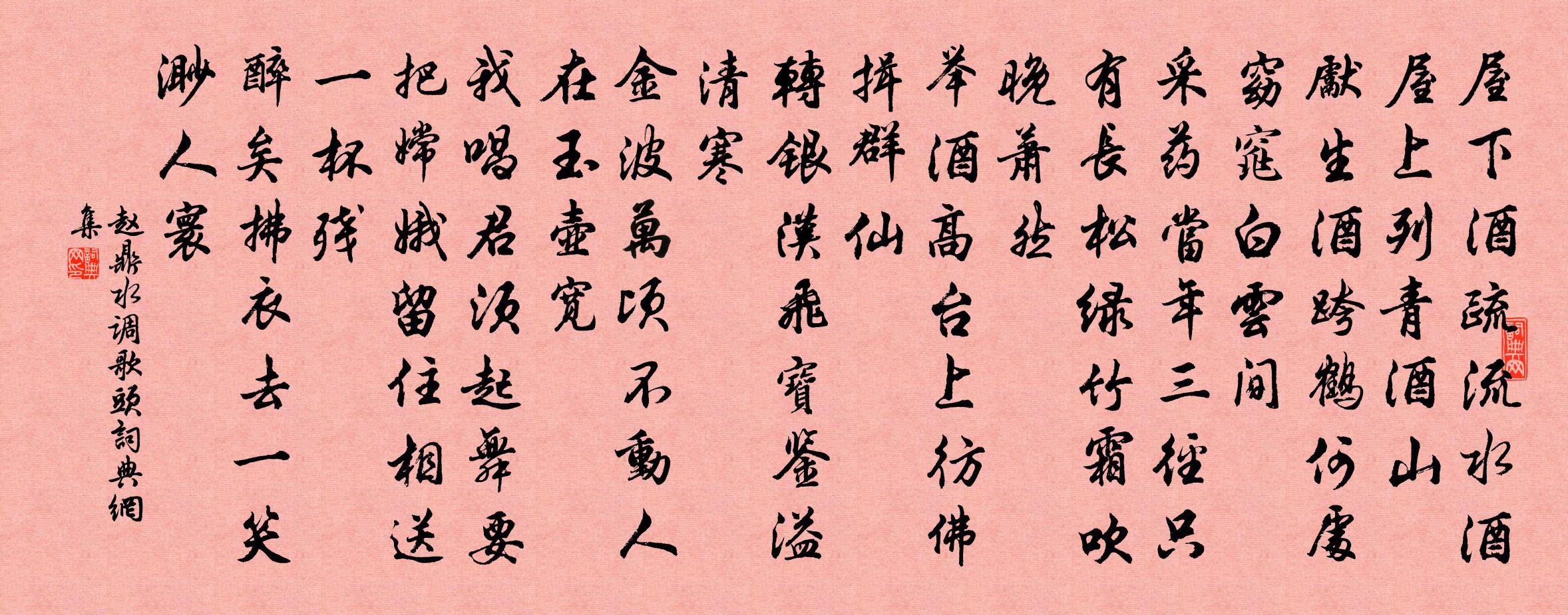 屋下酒疏流水,酒屋上列青酒山。先生酒跨鶴何處,窈窕白雲間。