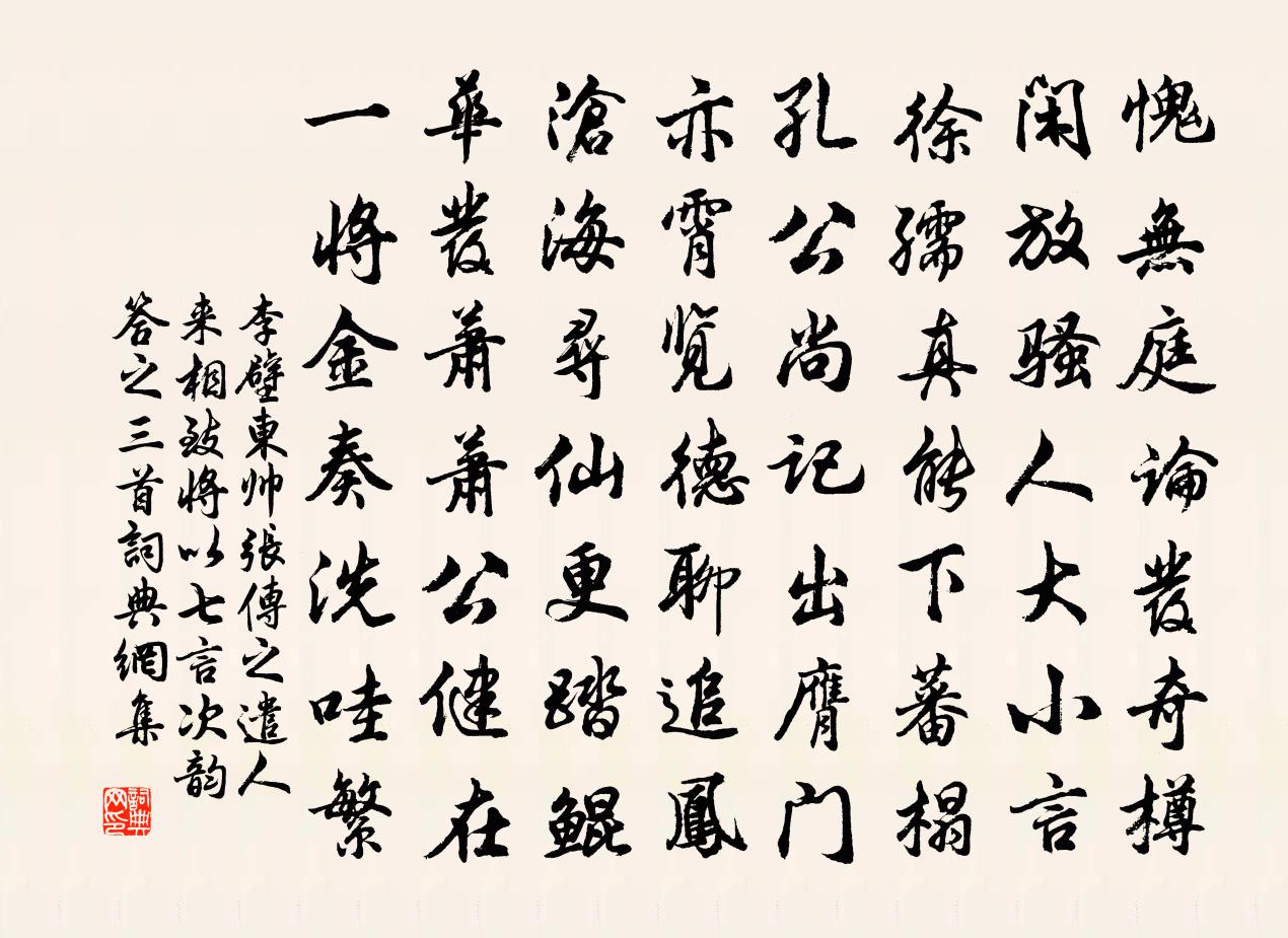 詩詞名句歷史字典書法欣賞書法字典國語詞典說文解字康熙字典古漢語字典標 題 作 者 詩 句 東帥張傳之遣人來相致將以七言次韻答之三首作者:李壁 朝代:宋代原文愧無庭論發奇樽,閒放騷人大小言。徐孺真能下蕃榻,孔公尚記出膺門。亦霄覽德聊追鳳,滄海尋仙更踏鯤。華發蕭蕭公健在,一將金奏洗哇繁。詩詞問答問:《東帥張傳之遣人來相致將以七言次韻答之三首》的作者是誰?答:李壁問:該詩寫於哪個朝代?答:宋代書法欣賞東帥張傳之遣人來相致將以七言次韻答之三首書法作品詩詞推薦偈二十二首釋子淳〔宋代〕驪珠未剖價難酬,灼爍寒光映碧流。罔象未能知去處,更憑子細說端由。雜興十首劉克莊〔宋代〕曾忝開元供奉班,君恩全護放還山。諸公縱慾俎豆汝,老子安能筆硯間。試拂毛錐嗟已禿,便扶靈壽亦何顏。回頭跋尤延之左司所藏光堯御書歌楊萬里〔宋代〕鸞台長史老野僧,月前病鶴霜後蠅。文書海里袞不了,黑花亂髮雙眼晴。故人同舍尤太史,敲門未揖心先喜。袖中予往來秦熙汧隴間不啻十數年時聞下里之歌遠李復〔宋代〕白羌紛紛急攻城,羌酋卻走殺漢民。漢民當前死不惜,甌脫更有殺有人。對客暮坐劉詵〔元代〕危坐高齋夕,東來喜友生。空庭疏雨後,四壁亂蛩鳴。燭至瓶花落,秋涼架藥輕。西頭動刀尺,淡月上檐楹。定庵遠山主薛嵎〔宋代〕修持功行滿,不墮動中塵。龍象西天邃,杉松卵塔新。臘高同輩盡,斂薄小師分。生滅理無二,交深獨愴神。送杜少柳起萃知遂寧府以高名千古重如山為韻韓元吉〔宋代〕男兒生世間,身名要俱高。苟不得其所,富貴輕鴻毛。古來獻言士,忠嘉極夔皋。尚友千載余,斯心豈徒勞。春從天上來姬翼〔元代〕冪冪塵埃。嘆自古悠悠,不省沉埋。利名場上,人我叢中,單認這個形骸。念本來一點,誰無分、都是仙材。謾疑秋雨感懷趙蕃〔宋代〕紅葉連峰雨,黃花獨徑秋。一杯聊復酒,萬斛不堪愁。短髮驚時晚,修名怯歲遒。山中隱玄豹,江上失輕鷗。周禮讚宋度宗〔宋代〕肇建六典,條章煥明。萬世之則,太平之基。少年游晏幾道〔宋代〕綠勾闌畔,黃昏淡月,攜手對殘紅。紗窗影里,朦騰春睡,繁杏小屏風。須愁別後,天高海闊,何處更相逢。幸有立夏奉祀太一宮五言十韻劉筠〔宋代〕朱駕開炎序,瓊科舉舊儀。恭承宣室詔,肅奉列真祠。地接蘢蔥氣,人多綽約姿。珍叢羅寶槭,嘉樹蔭文榱。仙饌和韓欽聖學士襄陽聞喜亭梅堯臣〔宋代〕亭欄下望漢江水,浮綠無風寫鏡明。日腳穿雲射洲影,槎頭擺子出潭聲。檣帆落處遠鄉思,砧處動時歸客情。使者秋日紀感釋行海〔宋代〕聞雞擊楫舊英雄,何處山河是洛中。龜土坼煙秋望雨,兔輪生暈夜占風。醾蕪只為王孫綠,菡萏難勝越女紅。今日和康節三詩晨起劉黻〔宋代〕一日事在寅,晨興宜自今。天澄萬古氣,人醒半生心。殘月留僧閣,寒煙度石林。營營何所得,白髮易相尋。謝侃老惠乳糕袁說友〔宋代〕多病柘漿酒,閒愁梅雨天。婆娑清夢斷,剝啄好音傳。憐我虀鹽薄,從渠乳酪鮮。莫嗟聞道晚,著意問師禪。楊武恭王輓詞樓鑰〔宋代〕勇氣真虓虎,仁心劇放麑。推鋒多折馘,解縛屢招攜。細柳門堅閉,長楊馬不嘶。夜深星忽墮,何處問撐犁。七言嚵語聯句顏真卿〔唐代〕拈?舐指不知休, ——李崿欲炙侍立涎交流。 ——顏真卿過屠大嚼肯知羞, ——皎然食店門外強淹留。 —端午貼子詞皇后閣五首周麟之〔宋代〕甘霔令年慶禱祈,屏除葷茹與君齊。化行自是恩波遠,何止春郊雨一犁。秀實行邑回寄示佳章次韻王洋〔宋代〕皇皇於宙間,快意本何限。有如抱畦畛,相對不見面。汝南箕潁士,白首仕州縣。偶來江西遊,溪山副良願。口誦名句推薦本理則國固,本亂則國危。管仲《管子·霸言》 況故人新擁,漢壇旌節。辛棄疾《滿江紅·漢水東流》 只知逐勝忽忘寒,小立春風夕照間。楊萬里《最愛東山晴後雪》 刑賞之本,在乎勸善而懲惡吳兢《貞觀政要·卷八·論刑法》 主人有酒歡今夕,請奏鳴琴廣陵客。李頎《琴歌》 若非群玉山頭見,會向瑤台月下逢李白《清平調·其一》 貧居鬧市無人問,富在深山有遠親。佚名《增廣賢文·上集》 行人夜宿金陵渚,試聽沙邊有雁聲。李頎《送劉昱》 美成在久,惡成不及改莊子《莊子·內篇·人間世》 青海陣雲匝,黑山兵氣沖。高適《塞下曲》