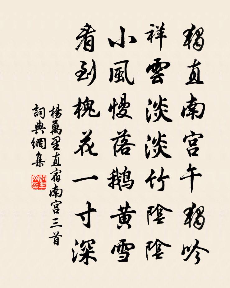 獨直南宮午獨吟,祥雲淡淡竹陰陰。小風慢落鵝黃雪,看到槐花一寸深。