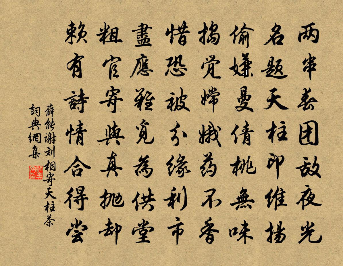 詩詞名句歷史字典書法欣賞書法字典國語詞典說文解字康熙字典古漢語字典標 題 作 者 詩 句 謝劉相寄天柱茶作者:薛能 朝代:唐代謝劉相寄天柱茶原文兩串春團敵夜光,名題天柱印維揚。偷嫌曼倩桃無味,搗覺嫦娥藥不香。惜恐被分緣利市,盡應難覓為供堂。粗官寄與真拋卻,賴有詩情合得嘗。詩詞問答問:謝劉相寄天柱茶的作者是誰?答:薛能問:謝劉相寄天柱茶寫於哪個朝代?答:唐代問:謝劉相寄天柱茶是什麼體裁?答:七律薛能謝劉相寄天柱茶書法欣賞謝劉相寄天柱茶書法作品注釋全唐詩:卷560-63詩詞推薦題著作魏仲先隱墅宋祁〔宋代〕隱路高高入翠微,人亡宅在有餘悲。自圓溪月知吟處,不散岩雲憶臥時。素壁塵昏三紀貌,白楊風老幾尋枝。草堂寄題周元吉左司山居三詠可止亭楊萬里〔宋代〕金印龍章屬市朝,清風明月屬漁樵。世皆蠻觸君知止,渠自王公我豈驕。真箇歸田何必賦,自家甘隱不緣招。老夫塞上贈王太尉釋惠崇〔宋代〕飛將是嫖姚,行營已近遼。河冰堅度馬,塞雪密藏雕。敗虜殘旗在,全軍列帳遙。傳呼更號令,今夜取天驕。踏藕蘇轍〔宋代〕春湖柳色黃,宿藕凍猶僵。翻沼龍蛇動,撐船牙角長。清泉浴泥滓,粲齒碎冰霜。莫使新梢盡,炎風翠蓋涼。新春感事八首終篇因以自解陸游〔宋代〕烏藤即是碧油幢,百萬天魔指顧降。酣枕不知霜縞瓦,下床已見日烘窗。次韻蘇公獨酌試藥玉滑盞陳師道〔宋代〕僊人棄餘糧,玉色已可欺。小試換骨方,價重十冰磁。灌以長白虹,渺若江海彌。浮之端不惡,舉者亦何辭。但愧滿江紅(壽東人)范飛〔宋代〕律轉黃鐘,堯蓂尚、零星一葉。人盡道、當年此日,誕生豪傑。我是君家門下士,三年屢獻陽春雪。更此行、騎鶴游龍門分題十五首上山歐陽修〔宋代〕躡蹻上高山,探險慕幽賞。初驚澗芳早,忽望岩扉敞。林窮路已迷,但逐樵歌響。郡王閣端午帖子夏竦〔宋代〕五色彩絲頒禁殿,千齡嘉慶集藩房。玉堂弦誦依真館,日日靈心降美祥。宮詞王仲修〔宋代〕日斜未掩苑東門,池面風煙向晚昏。誰道荷花嬌欲語,夜來露冷卻無言。舟溪吟徐僑〔宋代〕舟溪群山俱有情,禺昂環列如逢迎。東出雙秀高沖天,推先兩峰當我前。二水南來炯相顧,合流於西疑欲住。成此贈黃友把酒東臯三首葛紹體〔宋代〕東風鷺影幾橫斜,晚日飛來漾雪華。好伴閒身春雨里,一川煙雨落梨花。和成都俞公達運使見寄邵雍〔宋代〕前年車從過天津,花底當時把酒頻。此日錦城花爛漫,何嘗更憶洛城春。與葉晦叔同考校諸生渙宿貢院作洪邁〔宋代〕沈沈廣廈清如水,市聲人聲不到耳。一閒十日豈天賜,慚愧紛紛白袍子。相逢更得金玉人,久矣眼中無此士。連床花月吟效連珠體十一首 2唐寅〔明代〕月轉東牆花影重, 花迎月魄若為容。 多情月照花間露, 解語花搖月下風。 雲破月窺花好處, 夜深花睡月祈雨而應范簿有詩次韻四首陳造〔宋代〕山城粗滿望霓心,老去私憂念自深。更祝今宵繼疇昔,並煩魯史紀為霖。偈頌九十三首釋梵琮〔宋代〕袈裟拈得喜輕便,一片閒雲擁半肩。莫怪逢人頻抖擻,借婆裙子拜婆年。賚佚名〔先秦〕文王既勤止,我應受之。敷時繹思,我徂維求定。時周之命,於繹思。贊三寶釋印肅〔宋代〕圓光應現無心物,大地山河恰似無。驪珠一顆非非相,信者權將作畫圖。山居詩釋延壽〔宋代〕達來何處更追尋,放曠誰論古與今。風帶泉聲流谷口,雲和山影落潭心。資身自有衣中寶,濟世誰藏室內金。策杖名句推薦士雖有學,而行為本焉。墨子《墨子·02章 修身》 迴廊四合掩寂寞,碧鸚鵡對紅薔薇。李商隱《日射》 侯門一入深如海,從此蕭郎是路人。崔郊《贈去婢》 勿言草卉賤,幸宅天池中沈約《詠新荷應詔》 政者正也。君為正,則百姓從政矣。戴聖《禮記·哀公問》 寒沙四面平,飛雪千里驚。范雲《效古詩》 紅旗捲起農奴戟,黑手高懸霸主鞭。 * 《七律·到韶山》 心事孤山春夢在,到思量、猶斷詩魂吳文英《極相思·題陳藏一水月梅扇》 夜來能有幾多寒,已瘦了、梨花一半。黃升《鵲橋仙·春情》 昔孟母,擇鄰處。子不學,斷機杼。王應麟《三字經·全文》