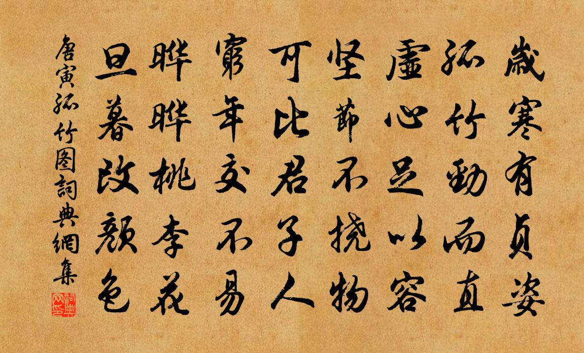 詩詞名句歷史字典書法欣賞書法字典國語詞典說文解字康熙字典古漢語字典標 題 作 者 詩 句 孤竹圖作者:唐寅 朝代:明代孤竹圖原文歲寒有貞姿,孤竹勁而直。虛心足以容,堅節不撓物。可比君子人,窮年交不易。曄曄桃李花,旦暮改顏色。詩詞問答問:孤竹圖的作者是誰?答:唐寅問:孤竹圖寫於哪個朝代?答:明代問:唐寅的名句有哪些?答:唐寅名句大全唐寅孤竹圖書法欣賞孤竹圖書法作品詩詞推薦朝日蓮張詠〔宋代〕少得方為貴,根莖豈異蓮。高低全賴水,舒捲自知天。已任群芳妒,難妨後笑偏。向明終有待,呈艷不爭先。愛重邠州詞獻高尚書三首李涉〔唐代〕單于都護再分疆,西引雙旌出帝鄉。朝日詔書添戰馬,即聞千騎取河湟。將家難立是威聲,不見多傳衛霍名。一自詩九首托南劍劉教尋亦周墓焚之趙文〔宋代〕妻子相寬亦偶然,老人何用許悲煎。沉憂若解令人死,何至相疏十八年。立秋日登樂遊園白居易〔唐代〕獨行獨語曲江頭,回馬遲遲上樂游。蕭颯涼風與衰鬢,誰教計會一時秋?題信天巢集高翥〔宋代〕信天巢小僅容身,中有圖書障俗塵。不與世爭閒意氣,且隨時養老精神。破鐺安穩齊鐘鼎,短褐參差比縉紳。渴飲落棗洪咨夔〔宋代〕楊柳天機淺,櫻桃世態深。空山鳩問答,肥水鶩浮沉。格物知窮理,觀時會省心。最憐誰氏女,沙裹日淘金。擊壤吟邵雍〔宋代〕人言別有洞中仙,洞裡神仙恐妄傳。若俟靈丹須九轉,必求朱項更千年。長年國里花千樹,安樂窩中樂滿懸。有樂春日雜言十一首趙蕃〔宋代〕落葉疏疏似雨鳴,莫疑春晚有秋聲。抽條易葉年年事,看取一翻新綠成。玉樓春(丙子十月生)王炎〔宋代〕往年餬口謀升斗。朱墨塵埃沾兩袖。黃粱夢斷始歸來,依舊琴書當左右。而今藏取持螯手。林下獨居閒散又。問之沂溪懷正之王安石〔宋代〕故人何處所,天角浪漫漫。寂寞斷音驛,徘徊愁肺肝。世情紛可怪,旅況浩難安。願化東南鵠,高飛托羽翰。題明遠軒李新〔宋代〕聊能半日止游韁,拂拂塵裾未滌黃。山掩豀光龍脊斷,谷傳天籟虎風涼。亂雲過眼不妨好,細逕入村何限長。獨酌永安寺照上人房歐陽詹〔唐代〕草蓆 * 不掃塵,松閒石上似無人。群陰欲午鐘聲動,自煮溪蔬養幻身。贈術者趙孟堅〔宋代〕紛紛塵土簿書堆,職在其間怎可辭。不向先生問榮達,但言何日是閒時。偈頌一百三十六首釋惟一〔宋代〕摩訶衍法,離四句絕百非。香飯普熏。遍十方窮三際。我此一眾,總是諸方羅籠不住底。高端叔輓詞樓鑰〔宋代〕滿卷變離騷,歐公一素袍。豈惟將厚意,要使丐殘膏。宿草成千古,生芻為一號。雖無韓子誄,貞曜本來高。秋日過吳侃幽居趙湘〔唐代〕掩門多徑草,涼氣動疏林。細雨經煙盡,微陽到菊深。話詩無鳥過,試茗有僧尋。欲去還留宿,窗邊月照琴。玉虹泉何錫汝〔宋代〕百尺雲岩佛閣前,晚鐘疏葉思悠然。岸邊酌酒和清露,石上題詩染翠煙。半嶺泉鳴通古澗,數峰秋盡隔寒川。西風偈頌十四首釋宗杲〔宋代〕莫戀淨潔處,淨處使人困。莫戀快活處,快活使人狂。如水這窄器,隨方圓短長。放下不放下,更請細思量。三界秦少游夢發殯而葬之者雲是劉發之柩是歲發首蘇軾〔宋代〕君看三代士執雉,本以殺身為小補。居官死職戰死綏,夢屍得官真古語。五行勝己斯為官,官如草木吾如土。仕而送游員外赴淮西獨孤及〔唐代〕多君有奇略,投筆佐元戎。已佩郎官印,兼乘御史驄。使星隨驛騎,歸路有秋風。莫道無書札,他年懷袖空。名句推薦一手獨拍,雖疾無聲。韓非及後人《韓非子·功名》 凡戰,所謂攻者,知彼者也。佚名《百戰奇略·第四卷·攻戰》 又有牆頭千葉桃,風動落花紅蔌蔌。元稹《連昌宮詞》 燕子斜陽來又去,如此江山。朱彝尊《賣花聲·雨花台》 雨中黃葉樹,燈下白頭人。司空曙《喜外弟盧綸見宿》 鵬北海,鳳朝陽。辛棄疾《鷓鴣天·送廓之秋試》 忽然更作漁陽摻,黃雲蕭條白日暗。李頎《聽安萬善吹觱篥歌》 山迴路轉不見君,雪上空留馬行處。岑參《白雪歌送武判官歸京》 此生誰料,心在天山,身老滄洲。陸游《訴衷情·當年萬里覓封侯》 今日雲景好,水綠秋山明。李白《九日》
