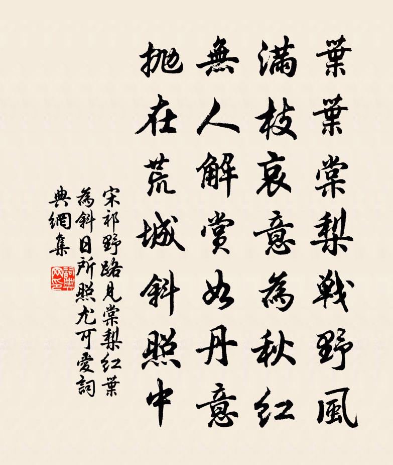 葉葉棠梨戰野風,滿枝哀意為秋紅。無人解賞如丹意,拋在荒城斜照中。