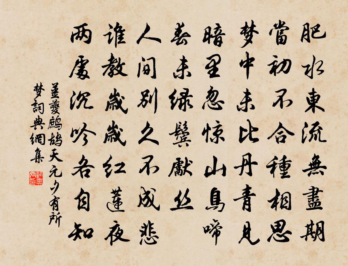肥水東流無盡期。當初不合種相思。夢中未比丹青見,暗裡忽驚山鳥啼。