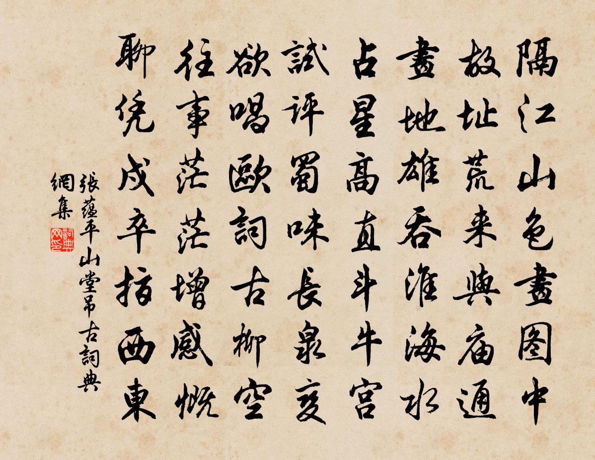 詩詞名句歷史字典書法欣賞書法字典國語詞典說文解字康熙字典古漢語字典標 題 作 者 詩 句 平山堂弔古作者:張蘊 朝代:宋代平山堂弔古原文隔江山色畫圖中,故址荒來與廟通。畫地雄吞淮海水,占星高直鬥牛宮。試評蜀味長泉變,欲唱歐詞古柳空。往事茫茫增感慨,聊憑戍卒指西東。詩詞問答問:平山堂弔古的作者是誰?答:張蘊問:平山堂弔古寫於哪個朝代?答:宋代張蘊平山堂弔古書法欣賞平山堂弔古書法作品詩詞推薦南鄉子姚燧〔元代〕日覺鬢霜加。欲對清尊戀物華。離別紛紛長眩眼,生花。易散難摶掌上沙。蓬意不依麻。未必移居漢水涯。前日曾憶故鄉淳于震先〔宋代〕蔚陽山下祖塋居,巍嶺崇高畫不如。離亂不堪回首顧,春秋誰為掃墳廬。青溪 / 過青溪水作王維〔唐代〕言入黃花川,每逐清溪水。隨山將萬轉,趣途無百里。 聲喧亂石中,色靜深松里。漾漾泛菱荇,澄澄映葭葦。 雪梅楊公遠〔宋代〕凍合頑雲四幕垂,須臾六出攬空飛。梅花自稟清臞相,底事添渠十倍肥。兵後經永安法空寺寄悟禪師(其寺賊所焚)皎然〔唐代〕常說人間法自空,何言出世法還同。微蹤舊是香林下,餘燼今成火宅中。後夜池心生素月,春天樹色起悲風。吾知書卻暑圖後吳可〔宋代〕冰柱雪車誰復作,礬頭凌面未能摹。北窗揮汗渾無奈,漫借君家卻暑圖。望江南 四時四首 鳴鶴餘音卷之二丘處機〔元代〕山中好,最好是春時。紅白野花千種樣,間關幽鳥百般啼。空翠濕人衣。茶自采,筍蕨更同薇。百結布衫忘世慮,張中允先生換詩三首文同〔宋代〕善頌堂中客,華嚴會裡人。生為天所佑,沒與佛相親。祖送逾千兩,哀號動四鄰。宜祠瑞筠社,永配蜀江神。題城南書院三十四詠張栻〔宋代〕山色頓清秋欲半,湖光更淨日平西。涼風獵獵低荷蓋,歸翼翩翩度柳堤。次韻子由召伯埭見別三首秦觀〔宋代〕青熒燈火照深更,逐客舟航冷似冰。到處故應山作主,隨方還有月為朋。鳳簫曲(一作古意)沈佺期〔唐代〕八月涼風動高閣,千金麗人卷綃幕。已憐池上歇芳菲,不念君恩坐搖落。世上榮華如轉蓬,朝隨阡陌暮雲中。飛燕贈丁子植撫乾高翥〔宋代〕巚府歸來赴調時,清聲籍籍滿京師。真如白璧藏奇石,判得黃金博斷碑。借宅先尋籠鶴地,買盆權作養魚池。客中遇雪姜特立〔宋代〕艱難要經歷,勿為居所移。方北冒雪行,有愧在家時。杯酒全無力,春寒易著肌。誰能念此老,團坐有痴兒。雪孟郊〔唐代〕忽然太行雪,昨夜飛入來。崚嶒墮庭中,嚴白何皚皚。奴婢曉開戶,四肢凍徘徊。咽言詞不成,告訴情狀摧。官給送湯仲能國正以直言去國杜范〔宋代〕朔風剪木末,碩果懸孤危。邈矣冥飛鴻,異哉聞鳴鴟。暮雲結愁陰,送君江之湄。去者挽莫留,留者良自悲。何當送王觀吳可〔宋代〕文正活國手,頗恨見不及。宦遊識其孫,想像高寇岌。豈但為交承,自是賢友執。尤思談性命,微到鬼神泣。吾曹次韻程帥游習池三首陳造〔宋代〕青編勳業笑談追,千載生賢瑞聖時。竹帛會書河似帶,封疆不止漢為池。玄譚日屬王平子,妙語心輕謝客兒。來歲偈頌三十四首釋如淨〔宋代〕活劃群牛腦後毛,風吹日炙轉腥臊。不堪狼藉薰天地,罪惡重將業火熱。切忌死灰尋舍利,臭煙蓬{左火右孛}燄庚申正月游齊安有詩云水南水北重重柳壬戌正王安石〔宋代〕招提詩壁漫黃埃,忽忽籠紗兩過梅。老值白雞能不死,復隨春色破寒來。臘月二十二夜漏下數刻小飲徑醉坐小合睡傍無劉克莊〔宋代〕不為卿面作計,轉令汝貌不揚。鬢畔有千莖白,眉間無一點黃。名句推薦為有書來與我期,便從蘭杜惹相思。莊棫《定風波·為有書來與我期》 燕子歸來,雕梁何處,底事呢喃語。王瀾《念奴嬌·避地溢江書於新亭》 南國辛居士,言歸舊竹林孟浩然《都下送辛大之鄂》 當知器滿則傾,須知物極必反。程登吉《幼學瓊林·卷三·人事》 送數聲驚雁,下離煙水,嘹唳度寒雲。孔夷《南浦·旅懷》 花明月暗籠輕霧,今宵好向郎邊去。李煜《菩薩蠻·花明月暗籠輕霧》 故人應念,杜鵑枝上殘月。文天祥《酹江月·和友驛中言別》 歲月匆匆留不住,鬢已星星堪鑷。吳淵《念奴嬌·我來牛渚》 目妄視則淫,耳妄聽則惑,口妄言則亂。劉安及其門客《淮南子·主術訓》 照花前後鏡,花面交相映。溫庭筠《菩薩蠻·小山重疊金明滅》