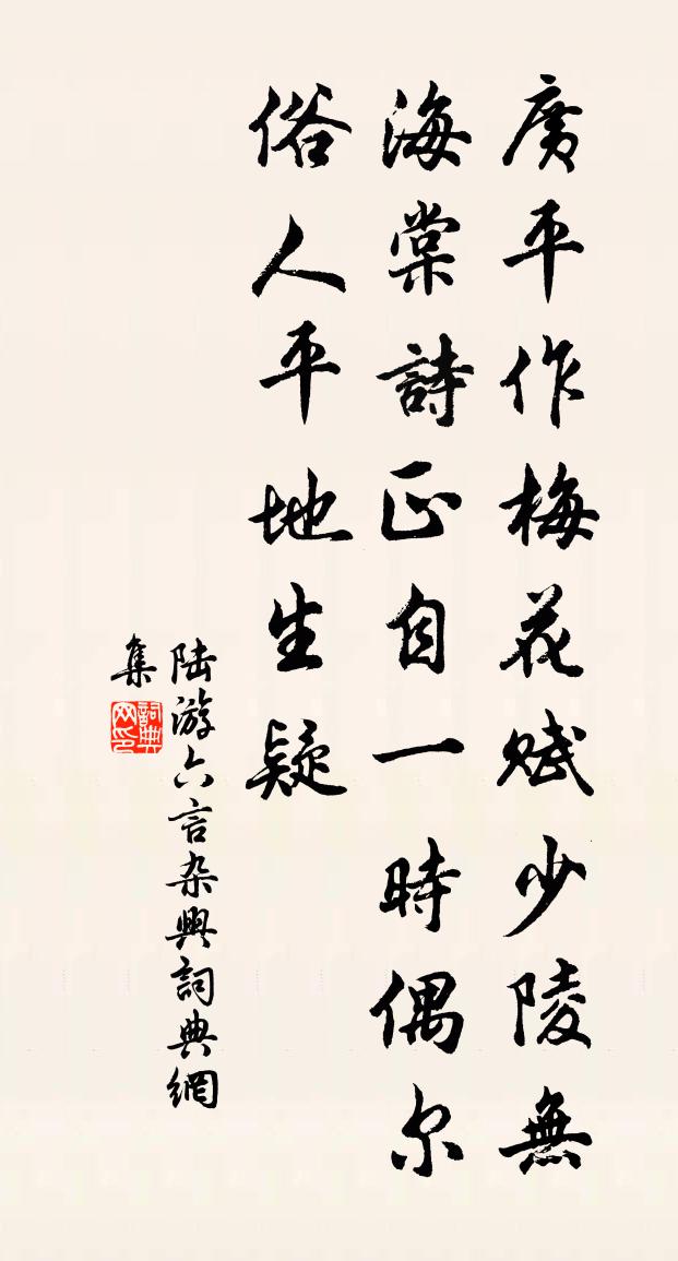 廣平作梅花賦,少陵無海棠詩。正自一時偶爾,俗人平地生疑。