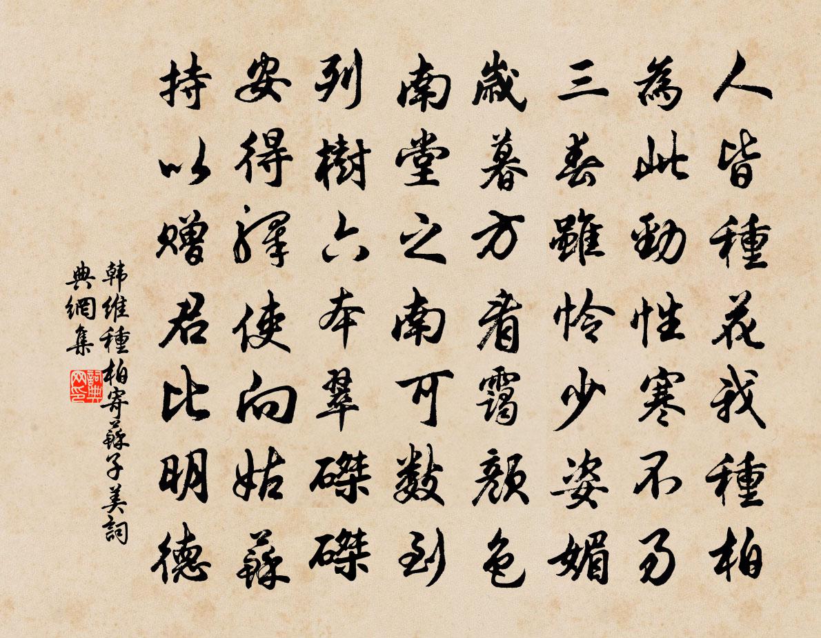 詩詞名句歷史字典書法欣賞書法字典國語詞典說文解字康熙字典古漢語字典標 題 作 者 詩 句 種柏寄蘇子美作者:韓維 朝代:宋代種柏寄蘇子美原文人皆種花我種柏,為此勁性寒不易。三春雖憐少姿媚,歲暮方看靄顏色。南堂之南可數到,列樹六本翠磔磔。安得驛使向姑蘇,持以贈君比明德。詩詞問答問:種柏寄蘇子美的作者是誰?答:韓維問:種柏寄蘇子美寫於哪個朝代?答:宋代韓維種柏寄蘇子美書法欣賞種柏寄蘇子美書法作品詩詞推薦集賢賓 鳴鶴餘音卷一王哲〔元代〕仔細曾窮究。想六地眾生,強攬閒愁。恰才得食飽,又思量、駿馬輕裘。有駿馬,有輕裘。又思量、建節封侯。假頌古四十四首釋師範〔宋代〕夢裹思歸問故鄉,明明說與尚徉狂。白雲盡處重回首,無限青山對夕陽。清平樂(即席和李參政壁白笑花)魏了翁〔宋代〕藍田玉種。為我酬清供。香壓冰肌猶怕重。更倩留仙群捧。看花美倩偏工。舉花訊息方濃。此笑知誰領解,無言獨題君山雍陶〔唐代〕風波不動影沈沈,翠色全微碧色深。應是水仙梳洗處,一螺青黛鏡中心。江邊柳李郢〔唐代〕東風晴色掛闌乾,眉葉初晴畏曉寒。江上別筵終日有,綠條春在長應難。送江水曹還遠館謝朓〔南北朝〕高館臨荒途,清川帶長陌。上有流思人,懷舊望歸客。塘邊草雜紅,樹際花猶白。日暮有重城,何由盡離席!紫黃賈似道〔宋代〕頭似櫻珠項似金,肉腳如同金裹成。牙鉗不問何顏色,諸蟲咬著便昏沉。尚長道十年離索杯酒話舊,憮然若隔世,醉筆楊萬里〔宋代〕麥黃秧碧百家衣,已熱猶寒四月時。雨復覓春無一寸,野薔薇發釅燕臘。雜詩四首曾鞏〔宋代〕揮袂謝幽側,騰身集崔嵬。心胎太極氣,手揚斗間魁。荒荊忽成桂,蟄鱗冬有雷。君看九州寶,自入朱門來。次韻趙領元先世石刻十四韻項安世〔宋代〕天葩富奇分,龍種多異姿。歆向妙經太,白賀工文詞。飄飄翰墨間,耿耿名字垂。哀哉趙延康,忠義反見疵。文工摸魚兒·正莓牆張榘〔宋代〕正莓牆、柳綿低度,枝頭紅紫飛盡。穠陰漲綠冰鈿碎,浥浥麝蘭成陣。仙骨嫩。悅姑射瑤姬,青幰游瓊苑。風前有追感三朝遭遇今如一夢姜特立〔宋代〕本是蓬篳姿,偶作帝王客。日日上金門,時時分玉食。自忘身世賤,不覺仙凡隔。幾多賢達人,饑寒臥空澤。荒口范成大〔宋代〕十步九吃蹶,百夫半蹣跚。豁然鳥道窮,努力造其巔。謂是嶺頭了,一峰復當前。既無反顧法,仰望心茫然甲子初冬宿直玉堂淒風小雨次日即承先帝晏駕馬廷鸞〔宋代〕雲黯天低結暝陰,孤燈對影夜沉沉。可憐一曲村田樂,猶是堯民擊壤音。晚春田園雜興十二絕范成大〔宋代〕菽粟瓶罌貯滿家,天教將醉作生涯。不知新滴堪篘未?細搗棖虀買鱠魚,樓居狂吟吳龍翰〔宋代〕覓得樓中一覺眠,將身化蝶入壺天。平生睡債何時足,春在梅花紙帳邊。種瓜篇曹叡〔魏晉〕種瓜東井上。冉冉自踰垣。與君新為婚。瓜葛相結連。寄託不肖軀。有如倚太山。兔絲無根株。蔓延自登緣。萍藻自嘆三首文天祥〔宋代〕北轍更寒暑,南冠幾晦冥。家山時入夢,妻子亦關情。惆悵心如失,崎嶇命復輕。遭時命如此,薄分笑三生。題淡山岩二首黃庭堅〔宋代〕去城二十五里近,天與隔盡俗子塵。春蛙秋蠅不到耳,夏涼冬暖總宜人。岩中清磬僧定起,洞口綠樹仙家春。惜哉文帝陳造〔宋代〕君王儉德本天然,蕭相鳩營已造天。不見千門並萬戶,露台雖罷未為賢。名句推薦金吾不禁夜,玉漏莫相催。蘇味道《正月十五夜》 勿恃勢力而凌逼孤寡,毋貪口腹而恣殺生禽。朱柏廬《朱子家訓·全文》 柔條紛冉冉,葉落何翩翩。曹植《美女篇》 無言獨上西樓,月如鉤。李煜《相見歡·無言獨上西樓》 草木有本心,何求美人折!張九齡《感遇十二首·其一》 黃昏院落,淒悽惶惶,酒醒時往事愁腸。李清照《行香子·天與秋光》 鬧里掙錢,靜處安身。佚名《增廣賢文·上集》 上林訊息好,鴻雁已歸來。張元乾《臨江仙·送宇文德和被召赴行在所》 晴雲滿戶團傾蓋,秋水浮階溜決渠。杜甫《柏學士茅屋》 離情被橫笛,吹過亂山東。王安石《江上》