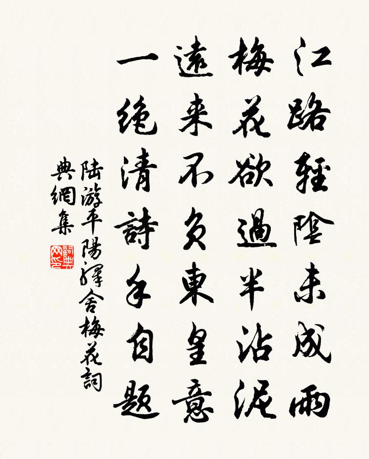 江路輕陰未成雨,梅花欲過半沾泥。遠來不負東皇意,一絕清詩手自題。