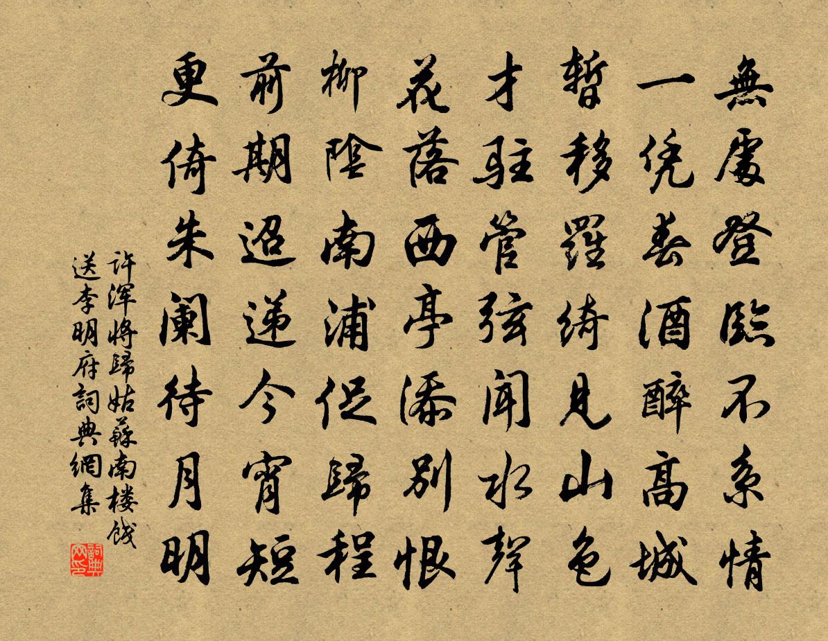 許渾將歸姑蘇南樓餞送李明府書法欣賞